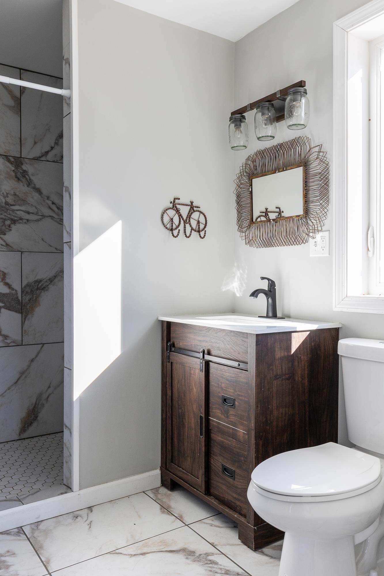 Tucked on nearly 2 acres, at the end of a quiet road, this 2023 "tiny" home offers modern comfort and a true sense of privacy. The open concept main level connects the living room and kitchen, where vaulted ceilings and large windows fill the space with natural sunlight, creating a seamless flow thoughout the house. The kitchen features an island with a farmhouse sink, contemporary cabinetry, wood countertops, and stainless steel appliances. A convenient half bath completes the main level. Upstairs, the primary suite spans the width of the home, offering generous closet storage and an attached 3/4 bath. The suite also includes a private balcony, an unexpected bonus and quiet outdoor retreat. With 900 square feet of thoughtfully designed space, the home offers efficient, low-maintenance living without sacrificing style or comfort. Heat Pumps offer heat in the winter and a/c in the summer. Enjoy a sense of retreat while still being minutes from Johnson Village amenities, including dining, shopping, and Vermont State University. You will appreciate nearby skiing, hiking, biking, and river access. Approx. 30 min from Stowe, Jay Peak, and Smugglers’ Notch ski resorts. Current septic and well permitted for a 3 bedroom house if expansion is desired. Sold fully furnished with an estimated gross income of $60, 200 as an short term rental and an 82% occupancy rate. Estimated CAP rate of 10.6%.