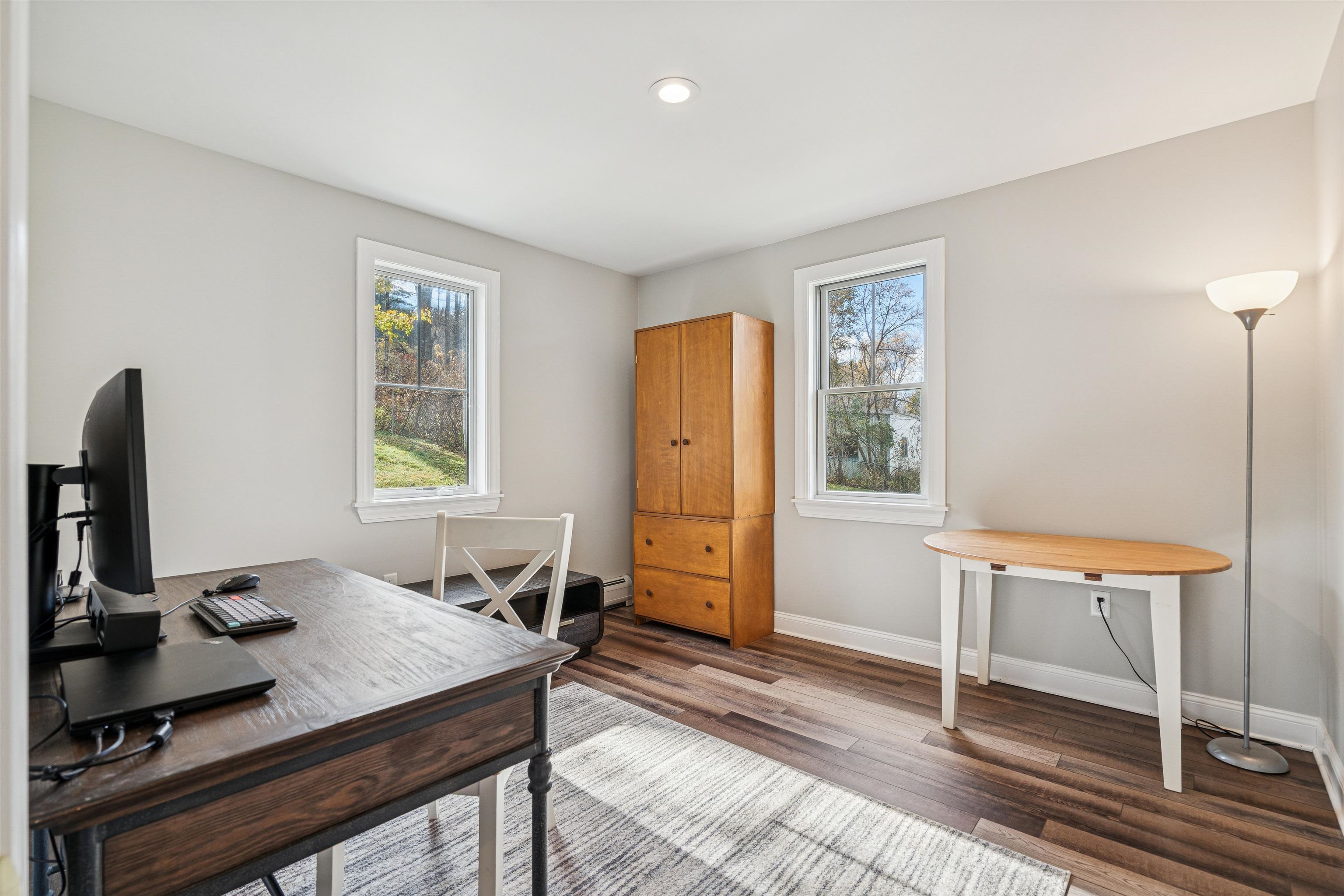 Situated on a lovely .4 acre parcel in the heart of Woodstock Village, this newer construction open-concept home offers modern conveniences combined with superb access to all that Woodstock has to offer. The main floor opens to a vaulted-ceiling living room, dining area, and well-appointed kitchen. Down the hall are two nicely sized bedrooms, and a full bath and laundry/utility room. A 3rd bedroom upstairs rounds out the beautifully functional floor plan. Adding to the comfort of this home is an efficient, on-demand hot water heating system, plus air conditioning via mini-splits in every room. There is ample storage throughout the main home and an easily accessible crawl space. Enjoy a cup of coffee in the backyard while listening to the stream that runs along the edge of the property, or take a short stroll and enjoy a meal at one of the many restaurants just minutes away. Walking and biking trails are right out the door, and skiing at Killington is less than 25 minutes away. Don't miss out on this incredible opportunity. Open House Saturday, November 1 from 2 - 4 PM.