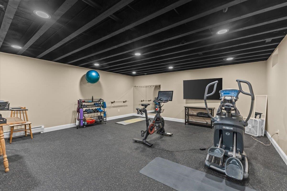 A truly unique, custom-built 4 bedroom home located on the sought after Old Stage Rd in Essex Town. The first floor has 9 foot ceilings and crown molding. The primary suite features a tray ceiling and sliding door to a spacious primary bathroom. The primary bath offers an oversized walk-in shower, custom tile, riverstone floor, and a large soaking tub. In 2024, a 4 season room was added with large french doors, three walls of windows, tile floor, a mini-split and a wood stove. The mudroom suite provides double-sided locker-style cubbies, shelves, benches, a coat closet, extra pantry storage, and a separate laundry room. The kitchen boasts custom natural cherry cabinetry, a butcher block island, quartz countertops, and stainless steel appliances, including a gas range, range hood, refrigerator, dishwasher, and microwave, and the butlers pantry leads to a formal dining room. The 2nd floor has 3 bedrooms, a large bathroom with a walk-in shower and a double vanity. Other interior features include, gas fireplace, 3 mini-splits, hardwood & tile floors and arched doorways. The finished basement has a 24x25 family room and a newly built 19x20 workout room. The 3-car attached garage with a 4th utility bay and an EV charger. The property is professionally landscaped, featuring 2 patios, fire pit, large deck, raised vegetable beds, mini orchard with various fruit trees, grape arbor and a shed/wood storage building new in 2024. Solar panels and 2 tesla power walls.
