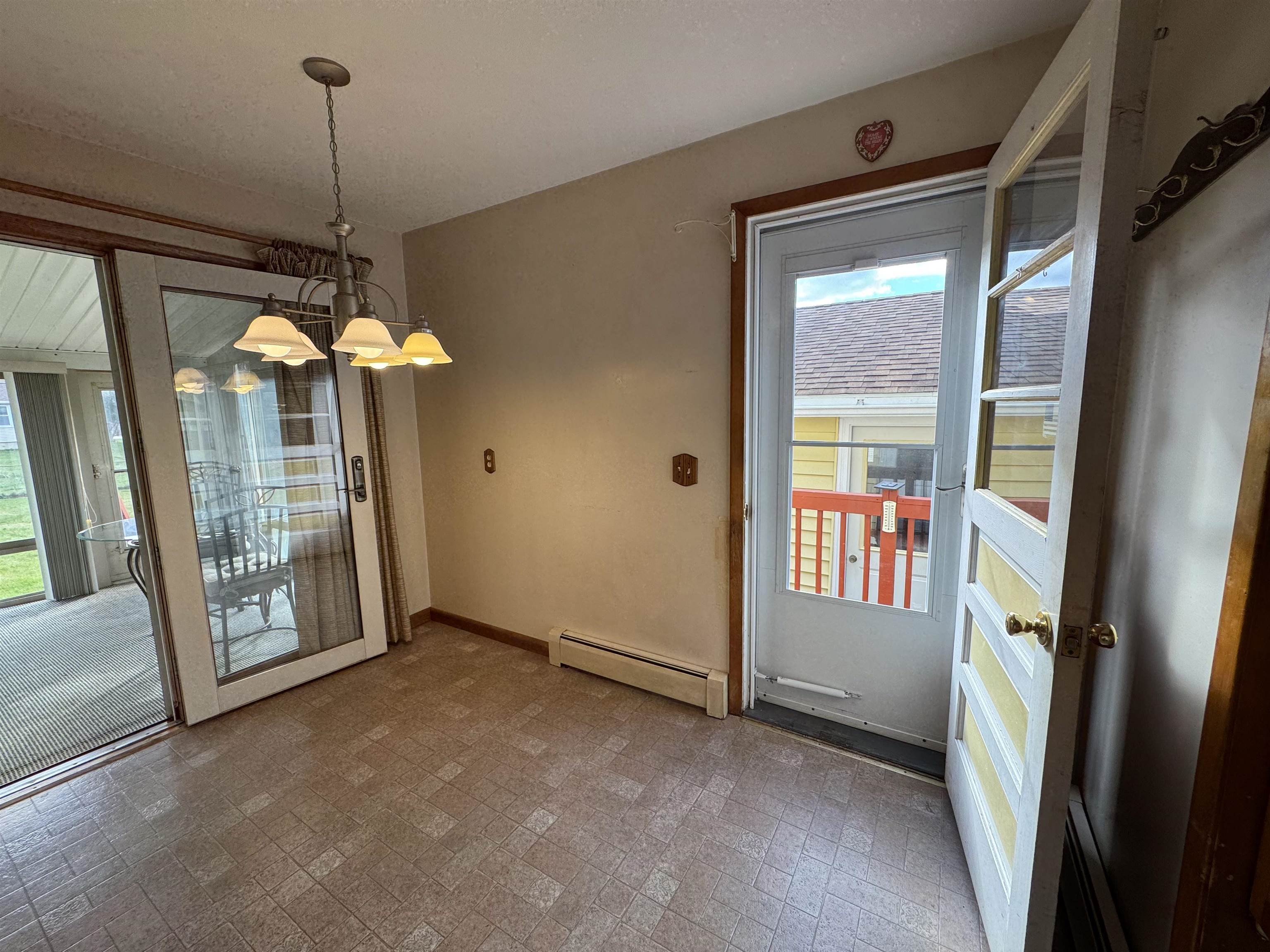 Welcome home to this charming single level ranch in a peaceful, friendly neighborhood where neighbors still wave hello and lend a cup of sugar. This home offers easy single-level living with three bedrooms, one full bath, and first floor laundry. Step inside to discover beautiful hardwood floors throughout most of the home, currently covered with carpeting that can easily be removed no nails or tack strips to worry about. The layout provides a warm, inviting flow from room to room, perfect for everyday living or entertaining. You'll love cozying up by the working wood stove on a chilly Vermont evenings, and the best part the wood for this winter is already stacked and ready to go! Enjoy mountain views from the property, giving you a daily reminder of Vermont’s natural beauty. Relax on the enclosed porch or the covered front porch, both ideal spots to unwind and take in the scenery. Outside, the fully fenced-in yard, detached two-car garage, and additional shed offer space for storage, projects, or play. Nestled in a desirable, well-kept neighborhood, this home combines comfort, convenience, and that true Vermont charm everyone is looking for.