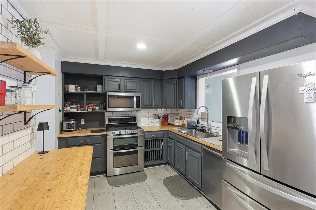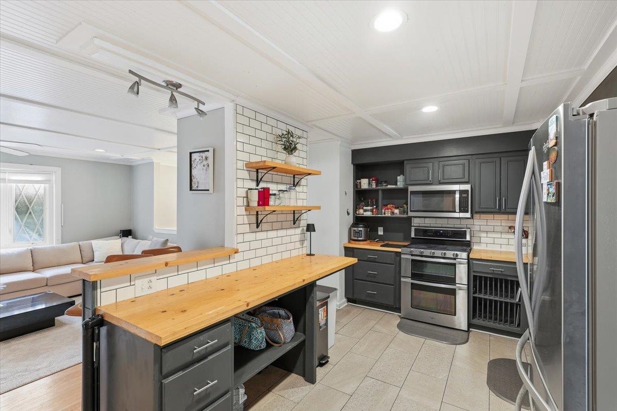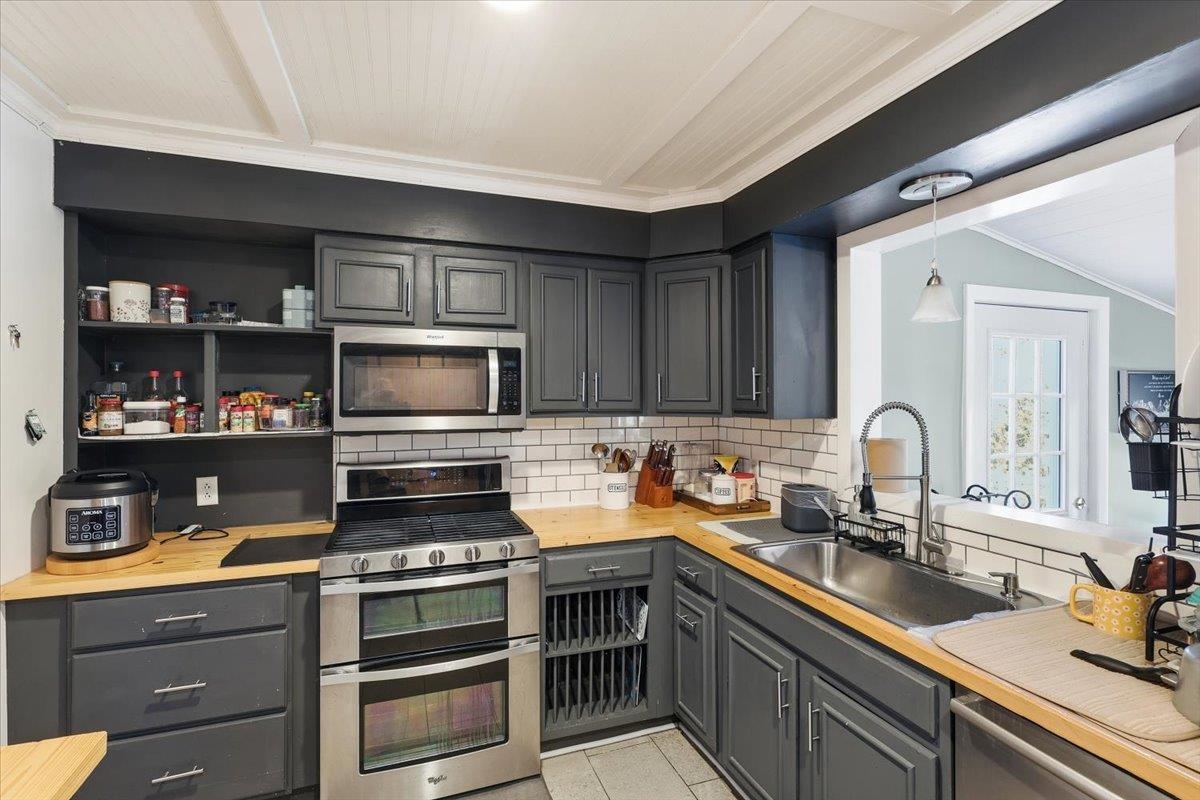 - Dishwasher, Disposal, Dryer, Microwave, Double Oven, Gas Range, Refrigerator, Washer, Natural Gas Water Heater, Water Heater off Boiler, Owned Water Heater, Tank Water Heater