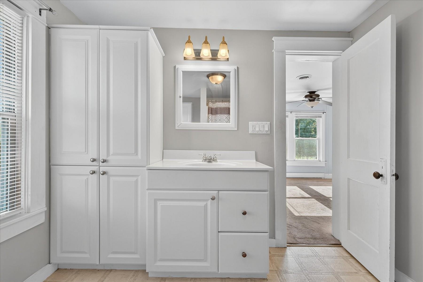 - Blinds, Ceiling Fan, Dining Area, 1 Fireplace, Hearth, Primary BR w/ BA, Natural Light, Walk-in Pantry, Programmable Thermostat, 1st Floor Laundry
