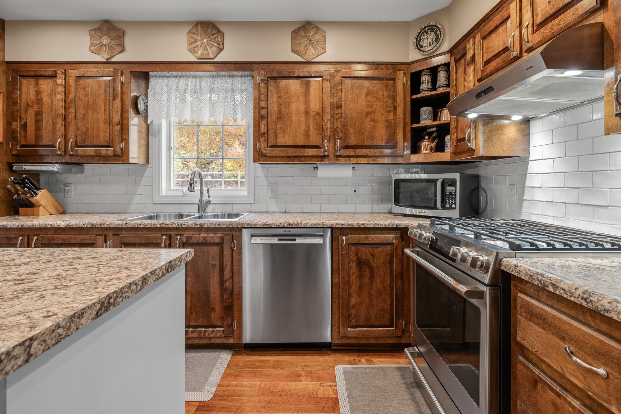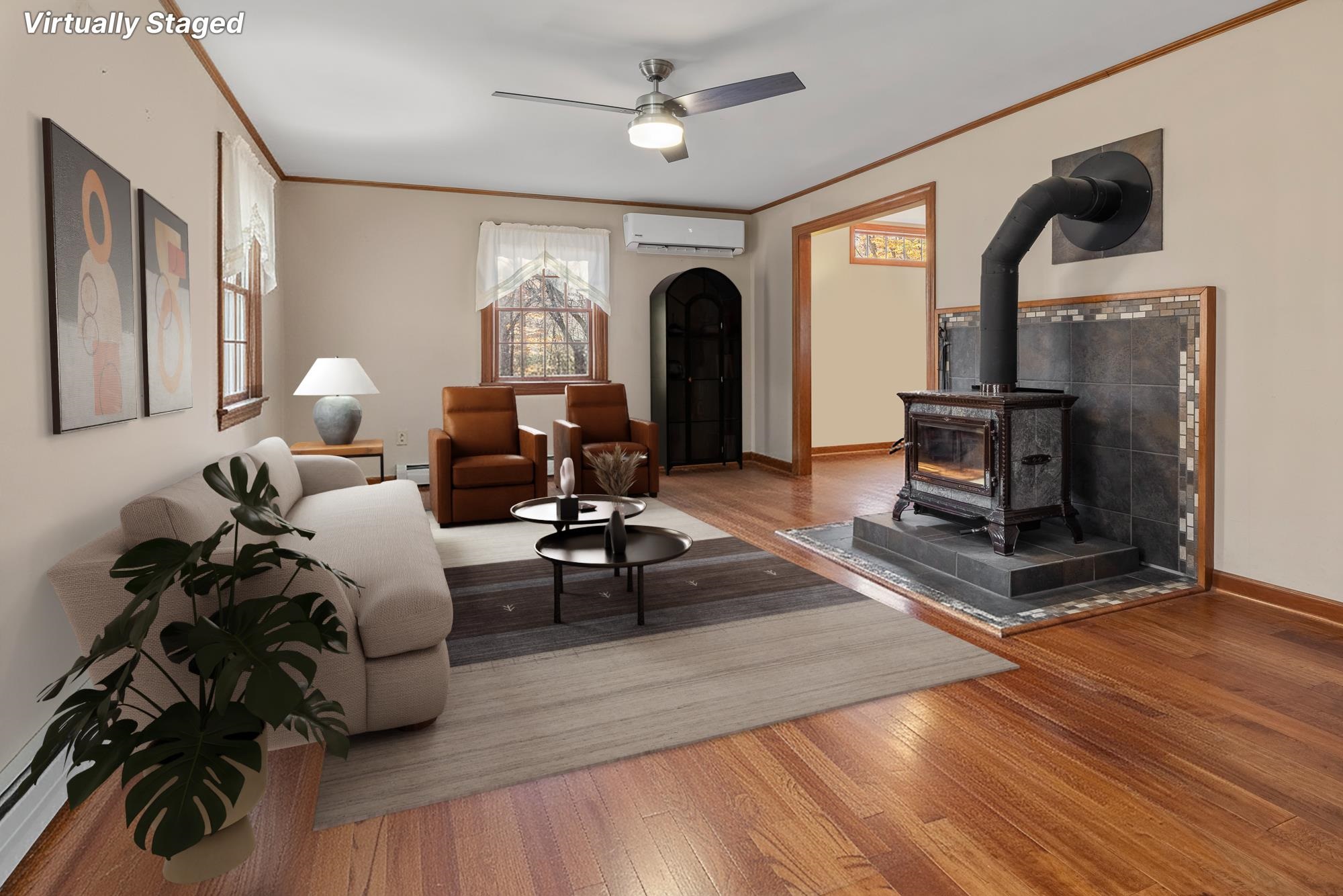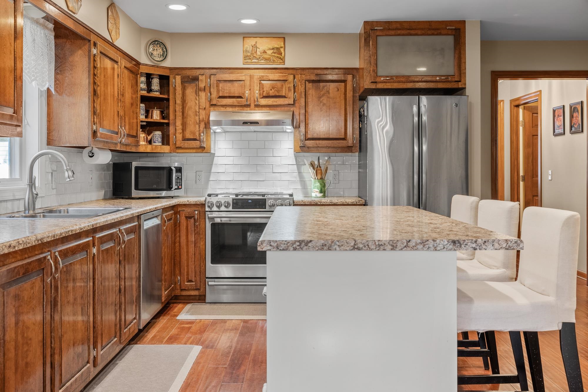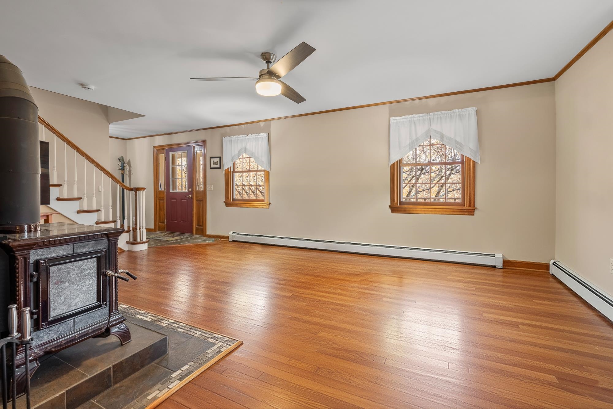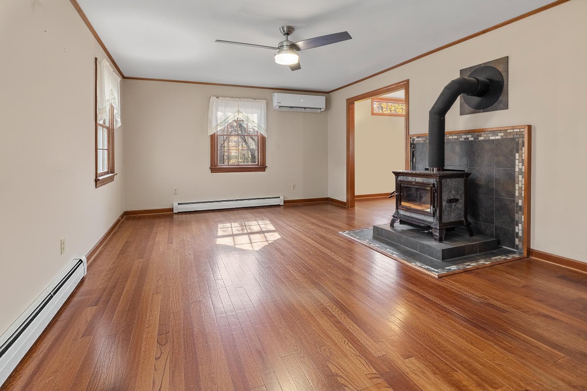 - Central Vacuum, Dining Area, Wood Fireplace, Hearth, Kitchen Island, Natural Light, Wood Stove Hook-up, 1st Floor Laundry