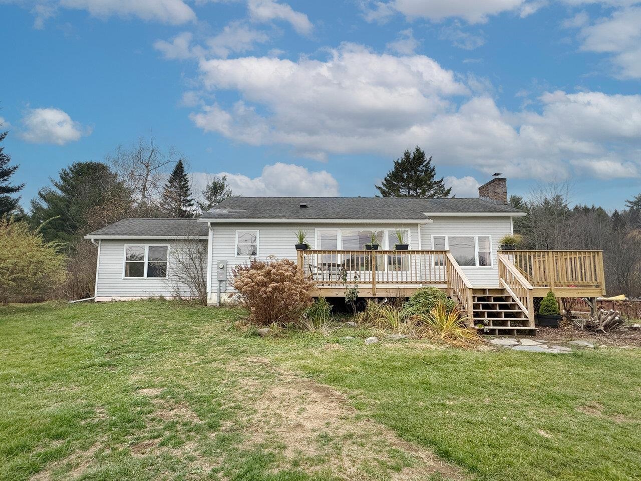Soak in breathtaking Mount Mansfield views from this rare Jericho opportunity - a single-level home full of potential and ready for your finishing touches. Offering 3 bedrooms and 1 bath, the well-designed layout features a tiled entry and dining room, plus kitchen equipped with stainless steel appliances and convenient first-floor laundry. The sunken family room offers a vaulted, beamed ceiling with a sliding glass door to the back deck, while the bright living room features a fireplace and big picture windows perfectly frame the mountain scenery. A newer front deck provides the perfect vantage point to unwind and enjoy the panoramic views. Nestled on 2.2 acres with mature landscaping, this property also offers a full basement for storage and a one-car garage. Located minutes from Jericho’s quaint amenities and just 30 minutes to Burlington or Smugglers’ Notch for year-round mountain recreation, this home presents a wonderful opportunity for investors or handy buyers to transform a diamond in the rough into something truly special. Sold as-is.