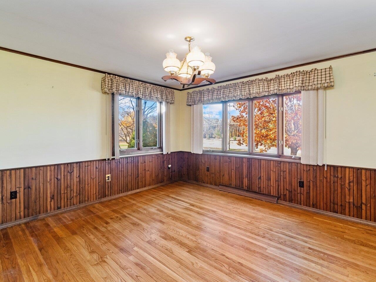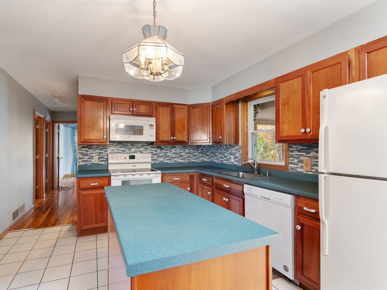 This spacious one-level ranch is set back from the road at the end of a long paved drive, perched on a large private lot shaded by mature Maples. The 3-bedroom, 1-bath home offers over 1, 600 sq. ft. of living space and features hardwood floors, wainscoting, a lovely sunroom, large sunken living room with two picture windows, and screened porch with adjoining wood deck. It's the perfect place to spend a summer afternoon, looking out at the backyard and the natural woodland! At the center of the home is the inviting kitchen with plenty of wood cabinets, a center island, and breakfast nook with pass-through to the formal dining room. French doors lead from the kitchen to the comfy sunroom with parquet floors and a second front entrance with a covered porch. The sunken living room is warmed by an efficient wood-burning stove and lots of natural light streaming through the large south-facing picture windows. At the other end of the home is a full bathroom & 3 comfortable bedrooms. One bedroom is currently being used as a laundry room but hookups are also available in the full unfinished basement. There's room for your vehicles, sports equipment & storage in an oversized 2-car detached garage too. Located just over the Swanton line, this home is close to village shops & services, just a few miles from St. Albans, 40 minutes to Burlington, and easy access as well to New York and Montreal! This is a great opportunity to enjoy homeownership and make this home your own! Don't miss it!