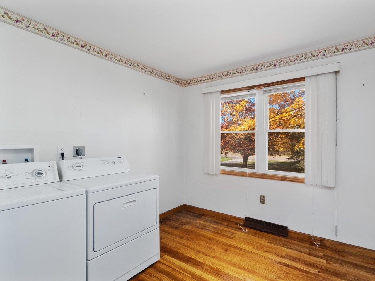 - Blinds, Dining Area, Draperies, Kitchen Island, Laundry Hook-ups, 1st Floor Laundry, Basement Laundry