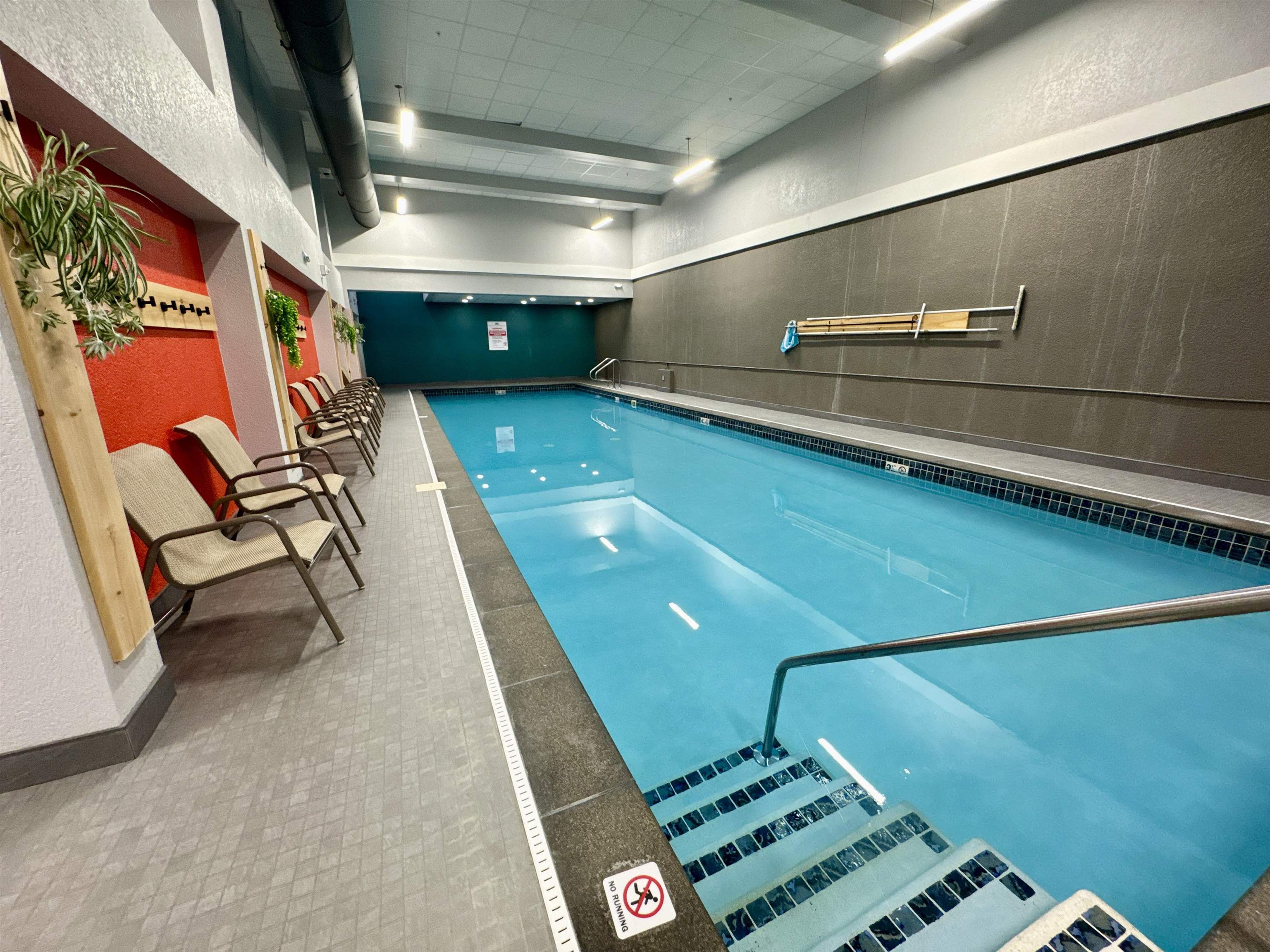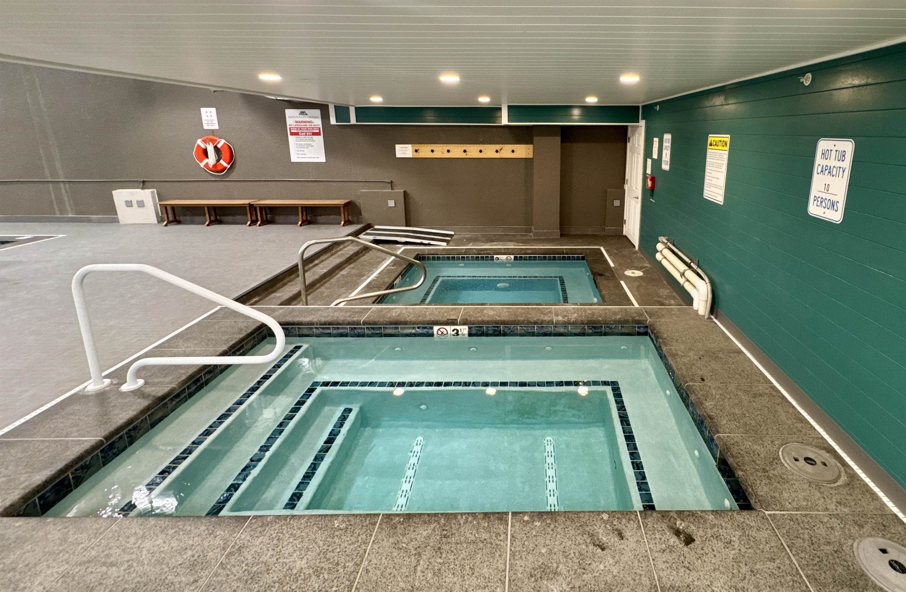 - Coin Laundry, Blinds, Ceiling Fan, Elevator, Hearth, Kitchen Island, Natural Light, Natural Woodwork, Indoor Pool, Programmable Thermostat, 1st Floor Laundry