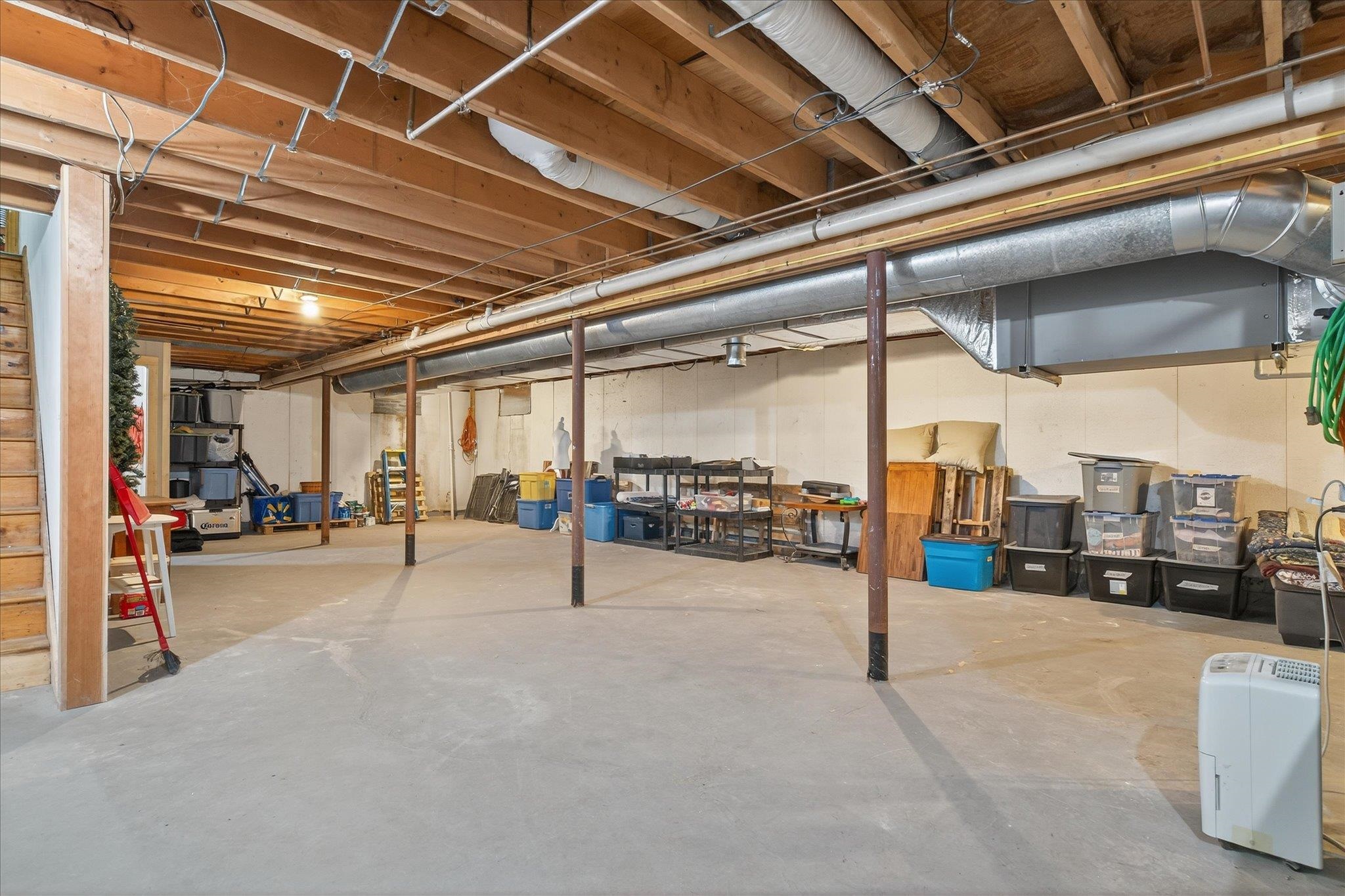 - Concrete Floor, Full, Interior Stairs, Sump Pump