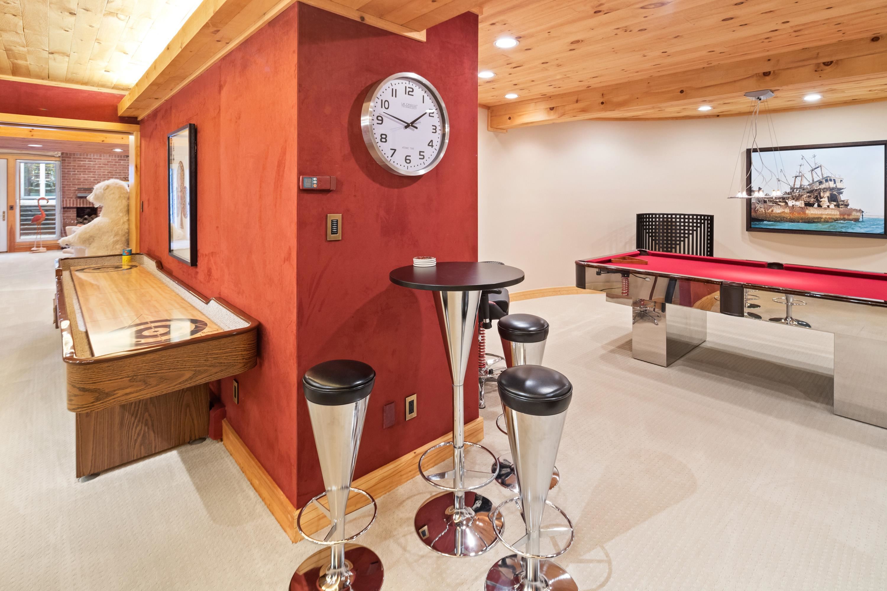 - Blinds, Cathedral Ceiling, Cedar Closet, Ceiling Fan, Elevator, Gas Fireplace, 3+ Fireplaces, Home Theater Wiring, Hot Tub, In-Law/Accessory Dwelling, Primary BR w/ BA, Natural Woodwork, Security, Skylight, Soaking Tub, Indoor Storage, Surround Sound Wiring, Vaulted Ceiling, Walk-in Closet
