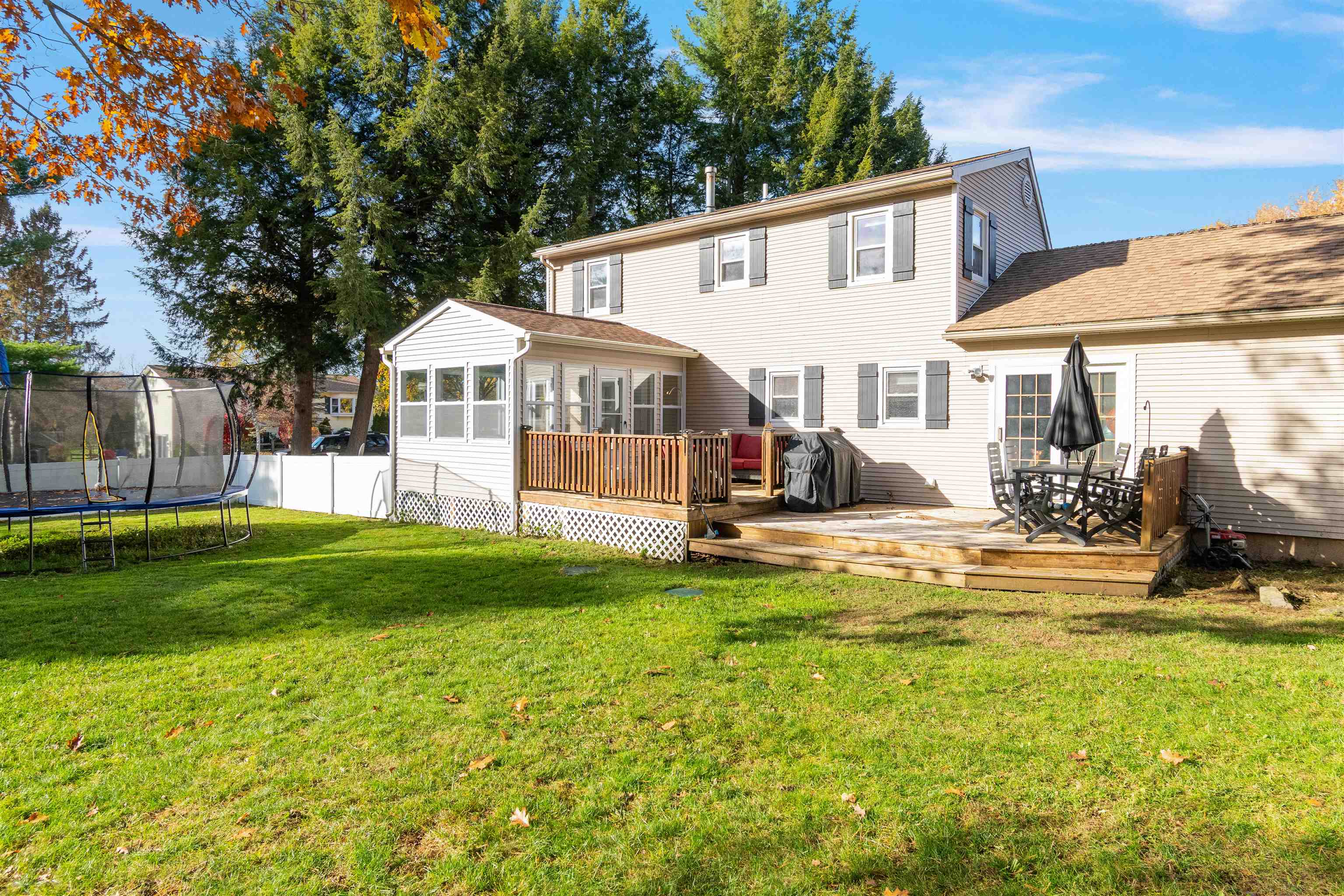 Charming 3-bedroom, 2-bathroom Cape in a desirable Colchester neighborhood! Adorable curb appeal and a spacious corner lot welcome you home. Step inside to a cozy living room with hardwood floors and abundant natural light, opening to a versatile dining area—perfect for entertaining. The kitchen offers excellent flow to the living and dining spaces, featuring ample cabinet and countertop space, a pantry, and a window overlooking the backyard. A formal dining room sits just off the kitchen, while a convenient ¾ bath with a beautiful clawfoot tub and a massive tiled mudroom with access to the back deck, driveway, and attached two-car garage add wonderful functionality. Enjoy the stunning three-season enclosed porch with walls of windows- an ideal spot to relax and take in Vermont’s beauty year-round. Upstairs, you’ll find a spacious primary bedroom, two additional bedrooms, and a full bathroom. The partially finished basement provides a great recreation area, plus laundry and storage space. Outside, the fully fenced backyard offers a huge deck, mature trees, and a storage shed. Located in a lovely neighborhood with sidewalks, an association pool, and tennis courts, and just minutes from local favorites like The Village Scoop, The Spanked Puppy, and Burnham Memorial Library. Less than 10 minutes to I-89 for easy commuting- this Colchester gem truly has it all!