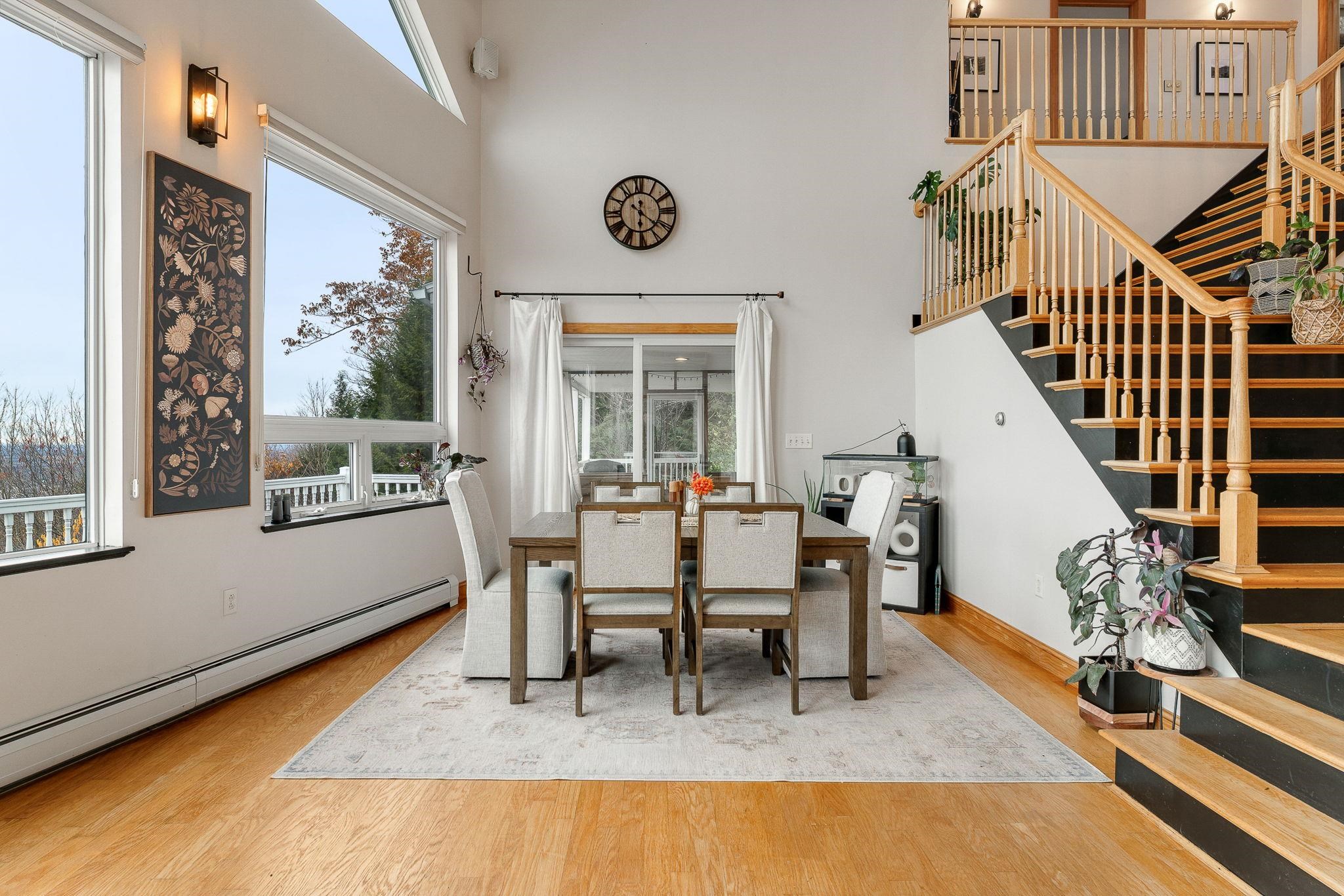Perched in one of St. Albans most scenic locations, this exceptional home offers sweeping views of Lake Champlain and the Adirondack Mountains, including Whiteface, as well as the distant skyline of Montreal, where multiple fireworks displays illuminate the horizon each 4th of July. A spacious, partially screened-in deck invites you to relax and take in the breathtaking sunsets, while inside, a bright open layout captures the views from nearly every room. The kitchen combines beauty and function with two sinks and generous prep space, perfect for cooking and entertaining alike. The finished walkout basement adds versatile living space, ideal for a family room, home gym, or guest suite. Thoughtfully designed for both comfort and practicality, the property includes a heated attached garage plus a second detached garage with heat and water, perfect for a workshop, studio, or potential guest space. Outdoors, a private pond and waterfall feature create a tranquil natural retreat just steps from home. All of this is just minutes from downtown St. Albans, I-89, and local recreation, offering the perfect blend of luxury, privacy, and quintessential Vermont beauty.