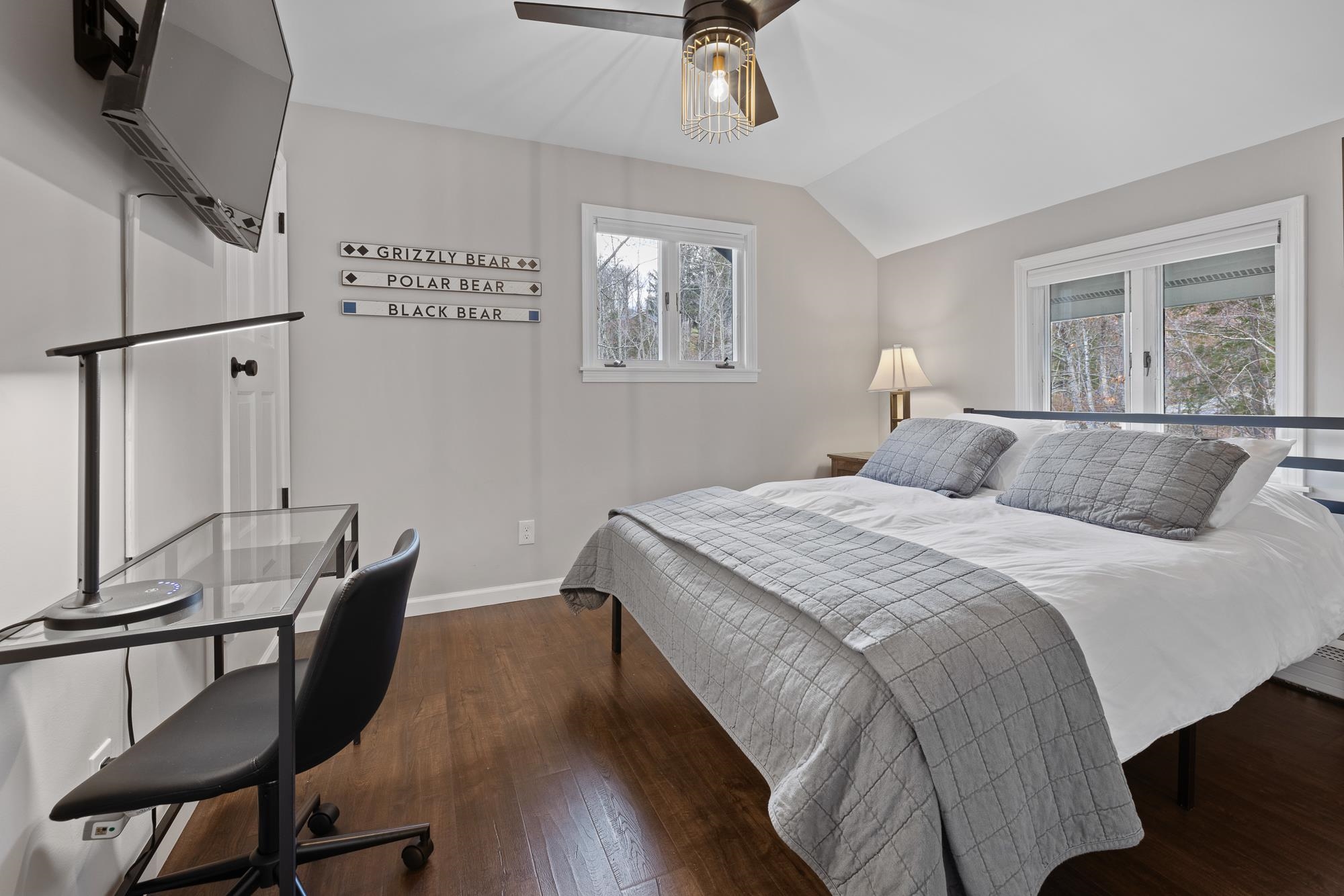 Exceptional Renovation of a Stratton Resort Residence in the Stratton Quarter Mile neighborhood on Shuttle, just a short walk home from the Village. Beautiful upscale baths with tile work and craftsmanship of the highest caliber. Wood floors throughout. Open gourmet kitchen makes for premier apres ski gatherings. With 5 bedrooms/4 baths and multiple ensuite- this mountain chalet has been updated with all the comforts you expect in a luxury getaway. Two wood burning fireplaces , tasteful ambiance with warm wood ceiling and accents. A second family room is designed as a T.V. Room/den with kitchenette/bar for movie night snacks and football game halftime spreads.The floor plan offers bedrooms on each of three levels- ideal for inviting friends and multiple families.Equipped with a well designed mudroom entrance Shuttle picks you up at your driveway and an easy walk home for those who want to close down Grizzlies apres ski and bands.Roads and security fees apply. Stratton Sports Center Bond eligible and property is served by community water and sewer. What are you waiting for? This is beautifully redone and turn key. No need for a project. This mountain residence is ready to go and prime for the winter enthusiast! Stratton Mountain is calling you!