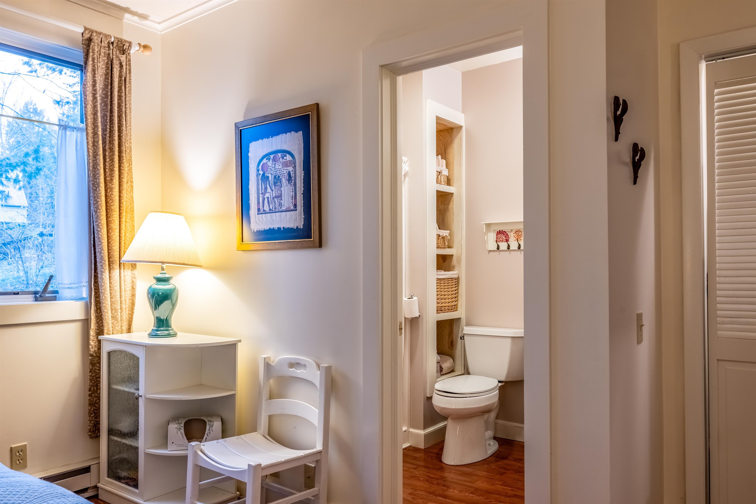 - Cathedral Ceiling, Ceiling Fan, Draperies, Gas Fireplace, Furnished, Kitchen/Dining, Primary BR w/ BA, Natural Light, Natural Woodwork, Skylight, Indoor Storage, Window Treatment