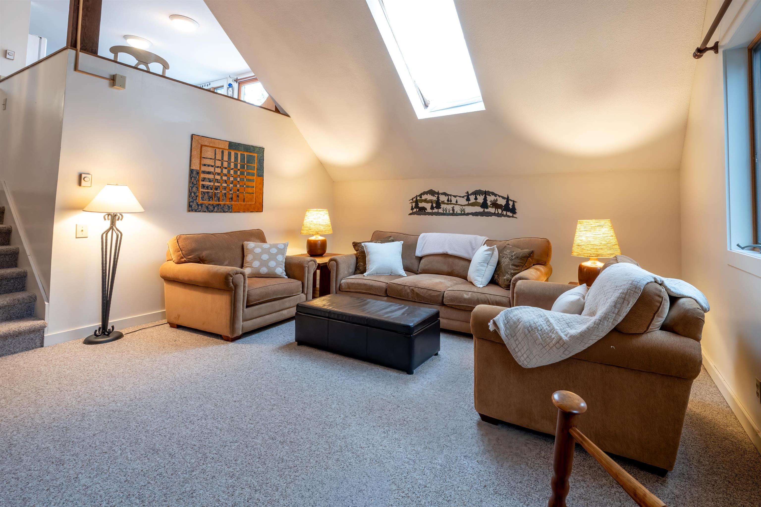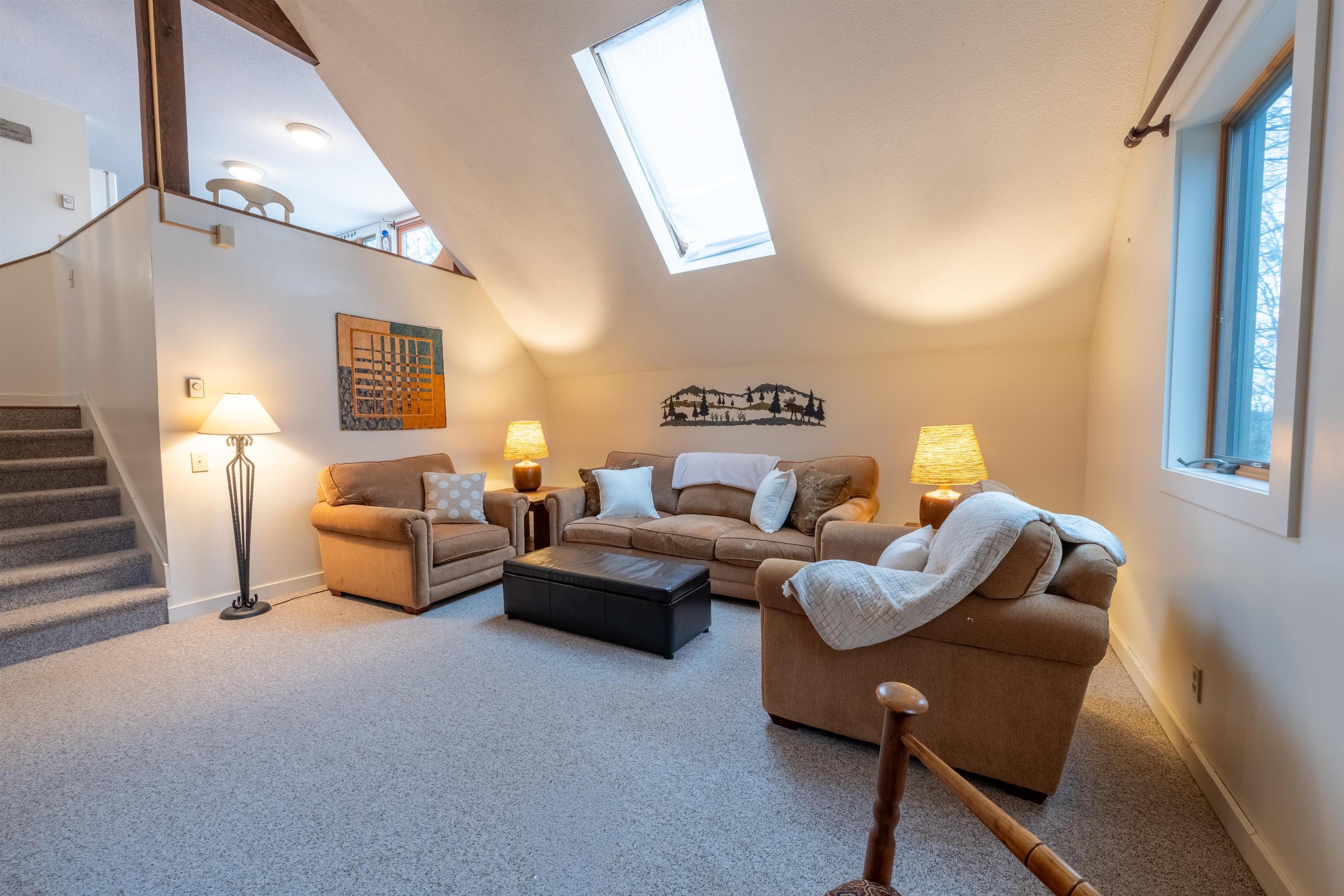 A terrific condo just a short walk to the ski trails! With a very generous, recently redone deck, AND lovely views, it is excellent for entertaining or relaxing. The condo association has completely renovated decks, walkways, siding and the roof, with the special assessment completely paid off. All ready for your enjoyment at no extra fee. Windows and sliders have been upgraded as well. The primary suite is situated on it's own level for complete privacy. 2 other bedrooms and full bath share another level. The living room has soaring ceilings with a cozy gas fireplace and the upper area features a sunny kitchen and slider to the phenomenal deck. Come and discover the unparalleled recreation at Quechee Lakes. Enjoy downhill, cross-country skiing, skating, pickleball, paddle tennis, indoor and outdoor pools, 2 fabulous golf courses, tennis, hiking trails etc. Kingswood 1 assoc. has a one-time buy-in fee of 3 month condo fees.