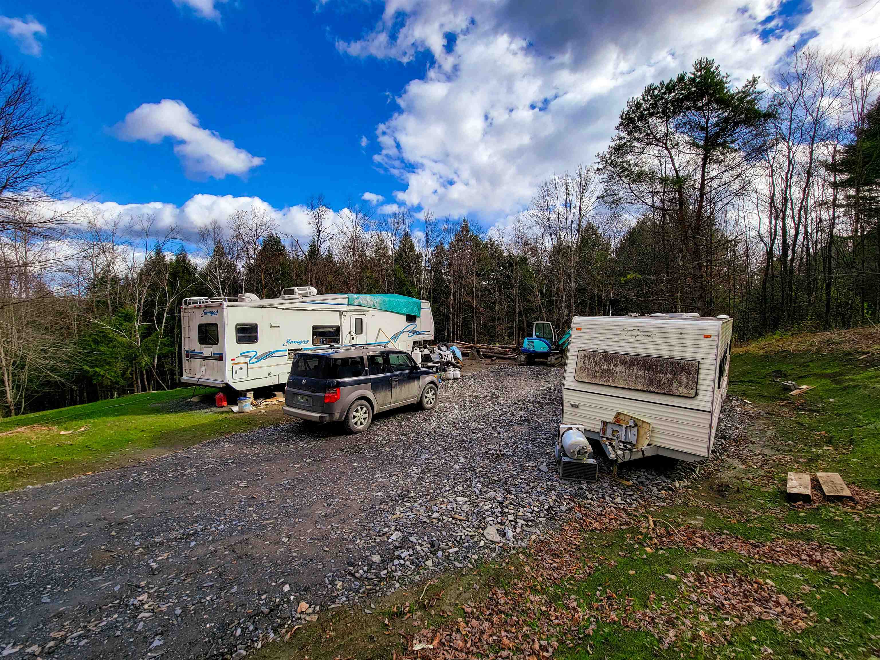 Investors, homesteaders, tiny home enthusiasts, get ready to experience this unique 94.3+/- acre property in beautiful Randolph VT. Two legal parcels, 6.6+/- acres and 87.7+/- acres. The property includes a log cabin park model home, a custom tiny home, a new full homesite currently rented by a 5th wheeler and two tent platforms. A drilled well provides water to all of the structures. Power and DSL are connected to the tiny homes with Fiber available and conduit installed. Seller rents the log cabin, tiny home and 5th wheeler site on a m-to-m basis. Tent platforms were not rented this year. There are (2) three-bedroom septic systems connected to the log cabin & 5th wheeler site. 4 bedrooms of extra capacity remain. Custom tiny home uses a composting toilet. Income approximately $3110 p/m with room for expansion. All of the 87.7+/- acres are in the Vermont Current Use tax reduction program for forestry. 87.7+/- acre lot is wooded with 22.4 acres of this being conserved for recreational/forestry use only. The remaining may be subdivided developed, etc. The 6.6+/- Acres is where all of the structures were built. The property is accessed by a beautiful private road (ROW) called Community Drive. Maintenance will be shared with two private homes and an Airbnb community. Very nice views from the log cabin area. Great opportunity to build your dream home and have rental opportunities on your property. Also for sale is a 5 lot Airbnb tiny home community see MLS#5057088.