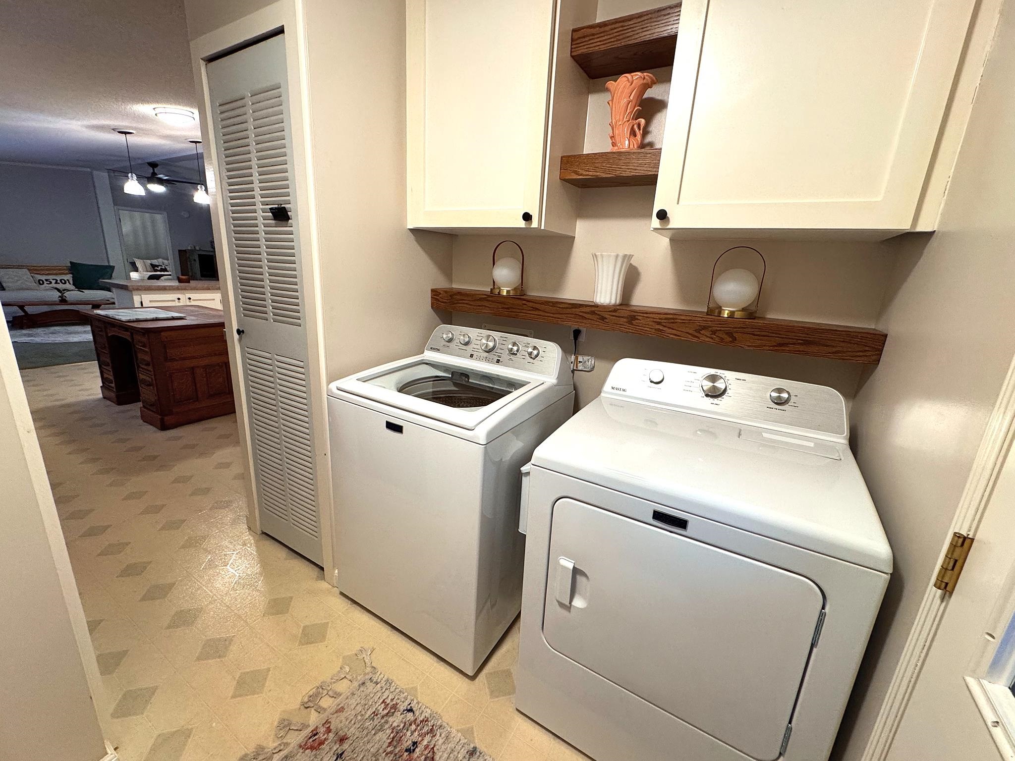 - Cedar Closet, Ceiling Fan, Dining Area, Gas Fireplace, 1 Fireplace, Hearth, Laundry Hook-ups, Living/Dining, Primary BR w/ BA, Natural Light, Whirlpool Tub, 1st Floor Laundry