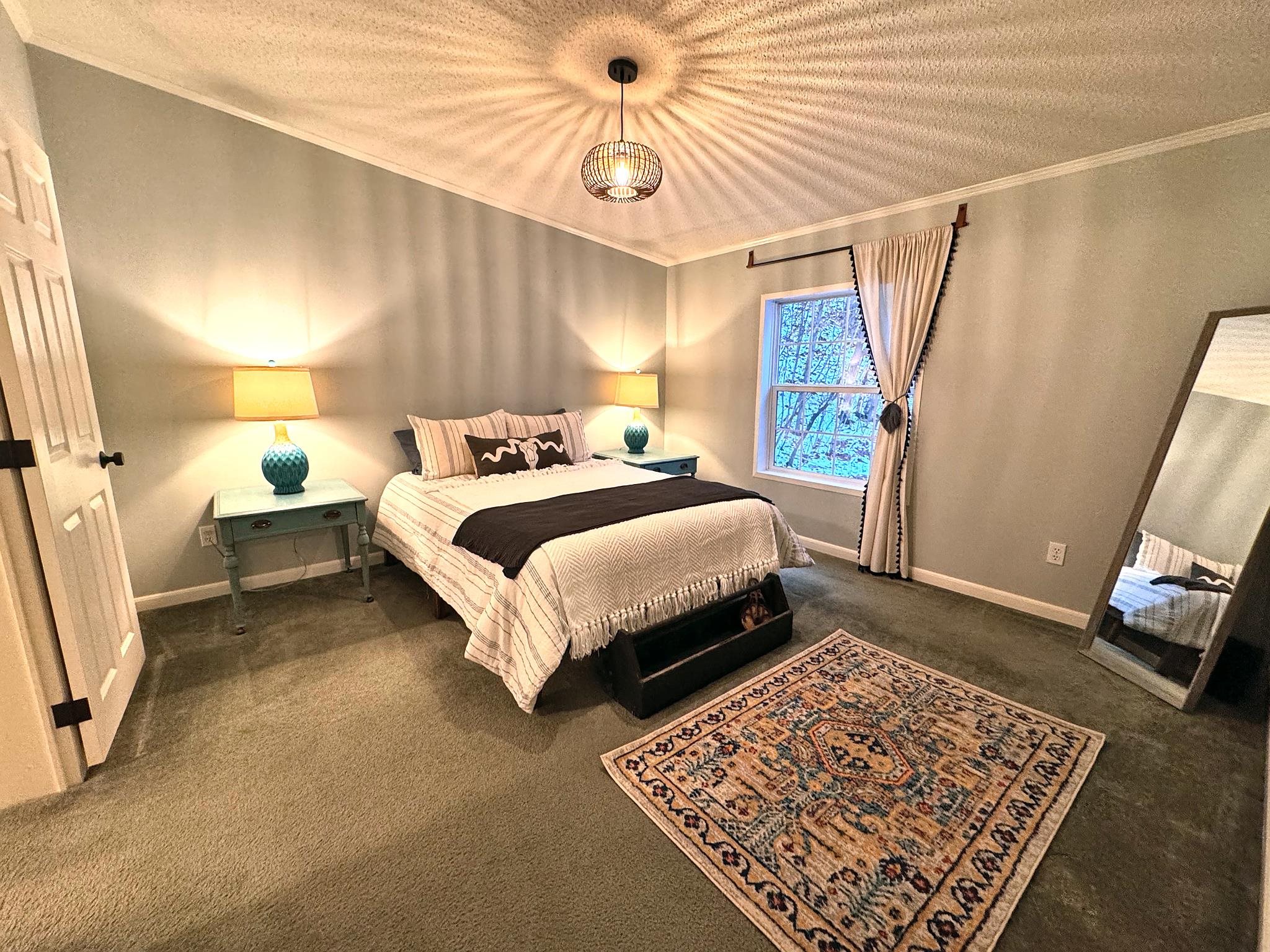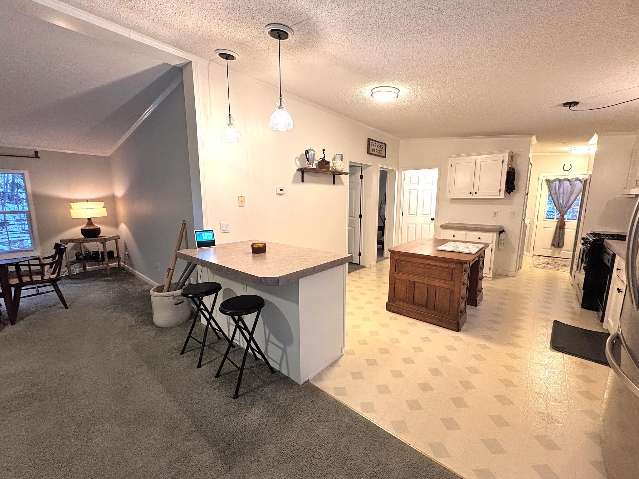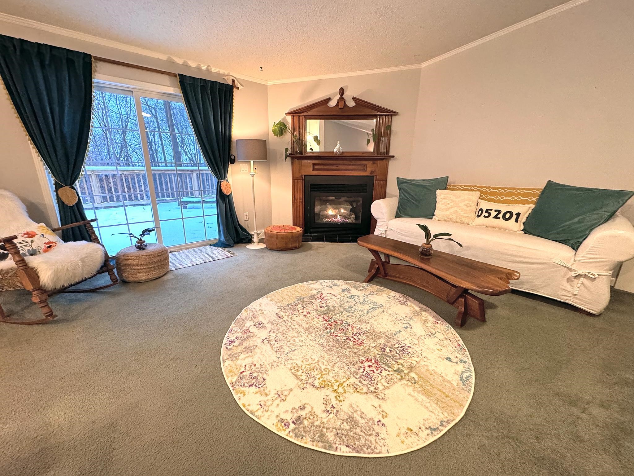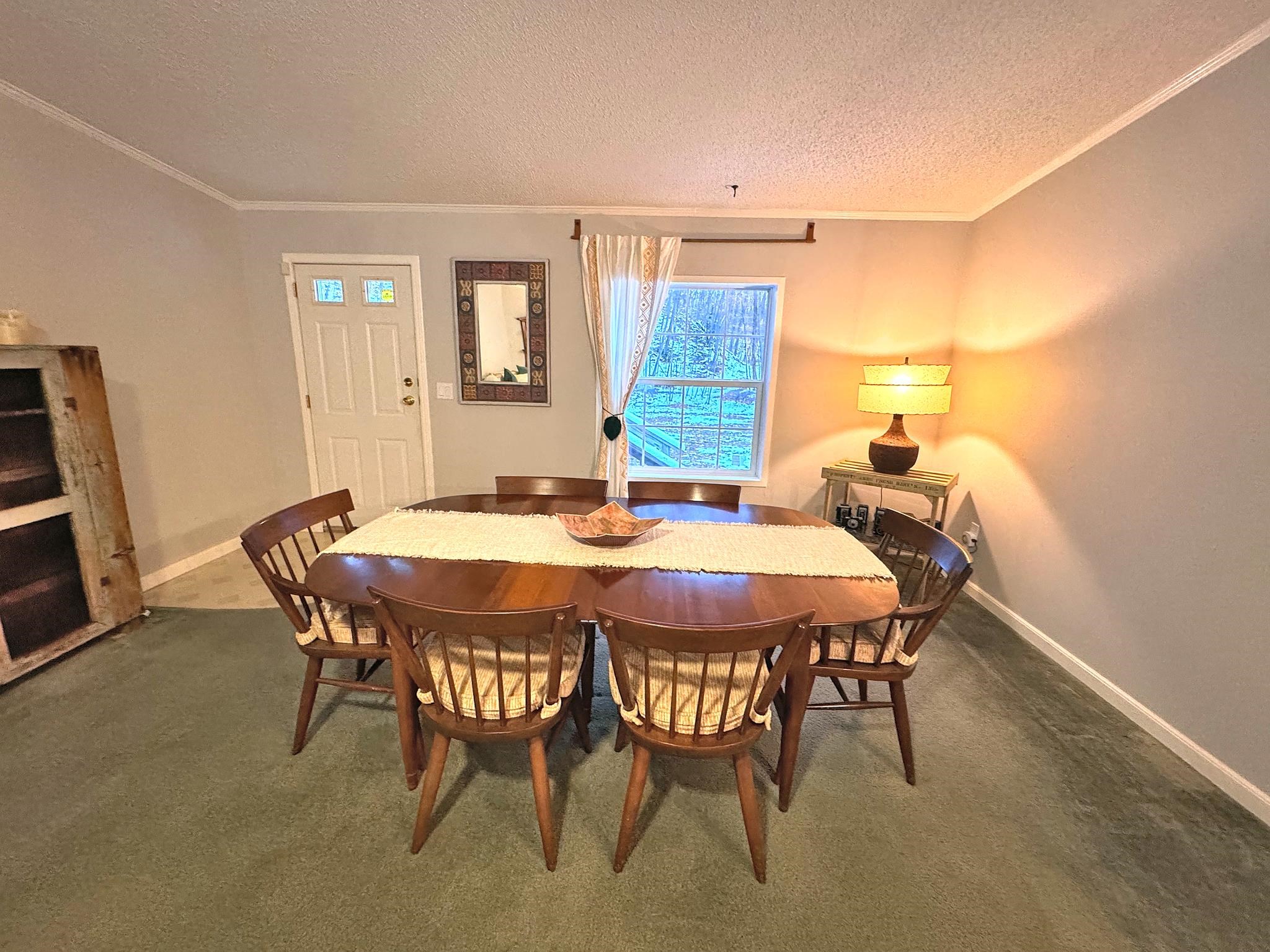 Location, location, location! Own your own private oasis on a dead-end road with nearly 7 acres - only minutes from downtown shopping and dining. Enjoy seasonal mountain views from the deck with sliding doors to the open concept living/dining room with vaulted ceiling. The propane fireplace with gorgeous wood mantle keeps things toasty while providing cozy ambiance. The spacious kitchen has plenty of room and bar seating to visit with your family or guests as you cook. This one-level home has three generously sized bedrooms and two full baths with updated vanities. The primary includes a large ensuite bathroom with two cedar closets, double sink, jet tub, and separate shower. Central AC, a laundry area in the cute mudroom, plenty of storage, and easy maintenance are just some of the reasons that this home is a winner. Rounding out the property is an oversized garage with electric door openers perfect for multiple vehicles without sacrificing storage space. Peace and quiet awaits!