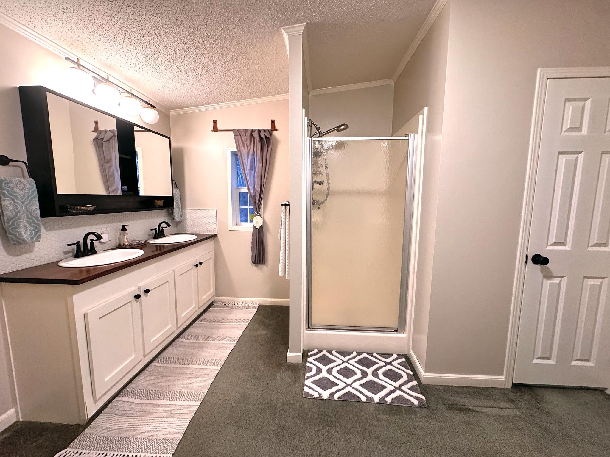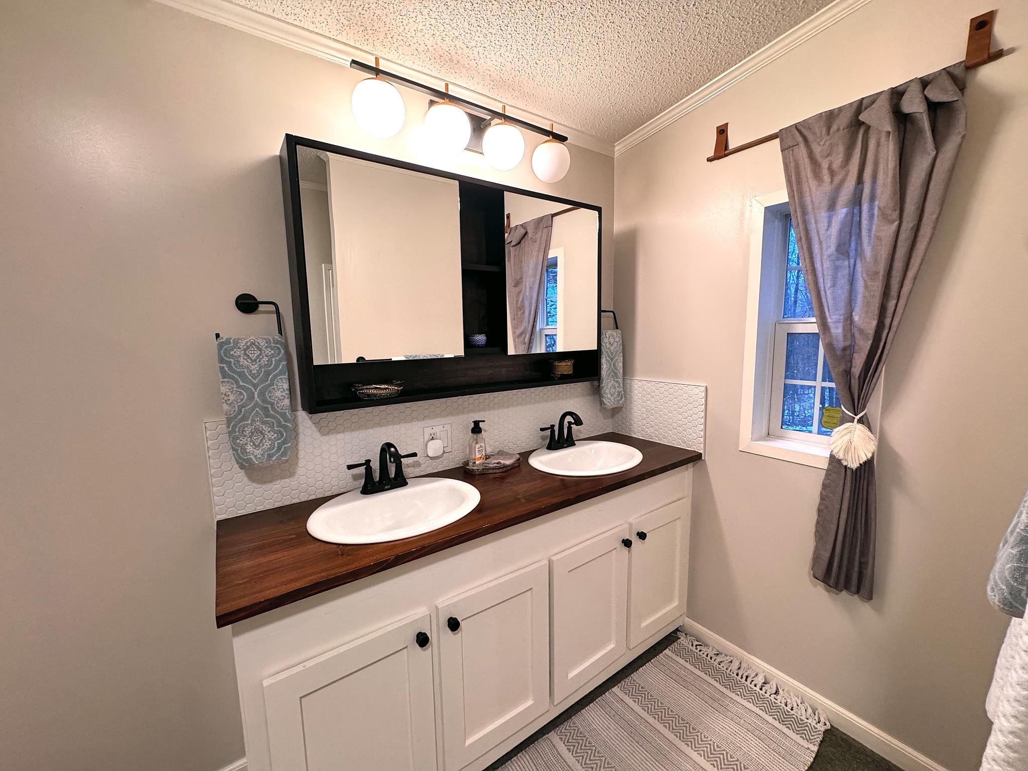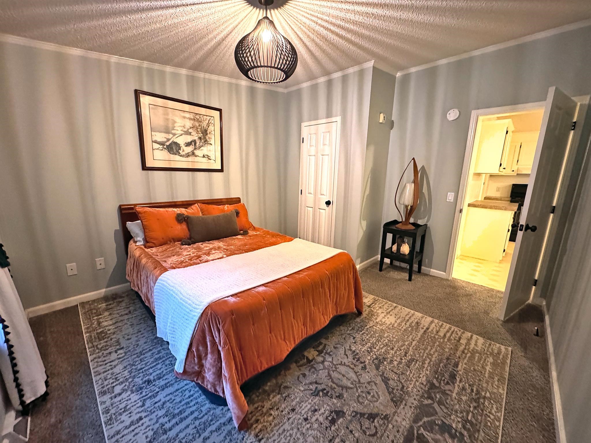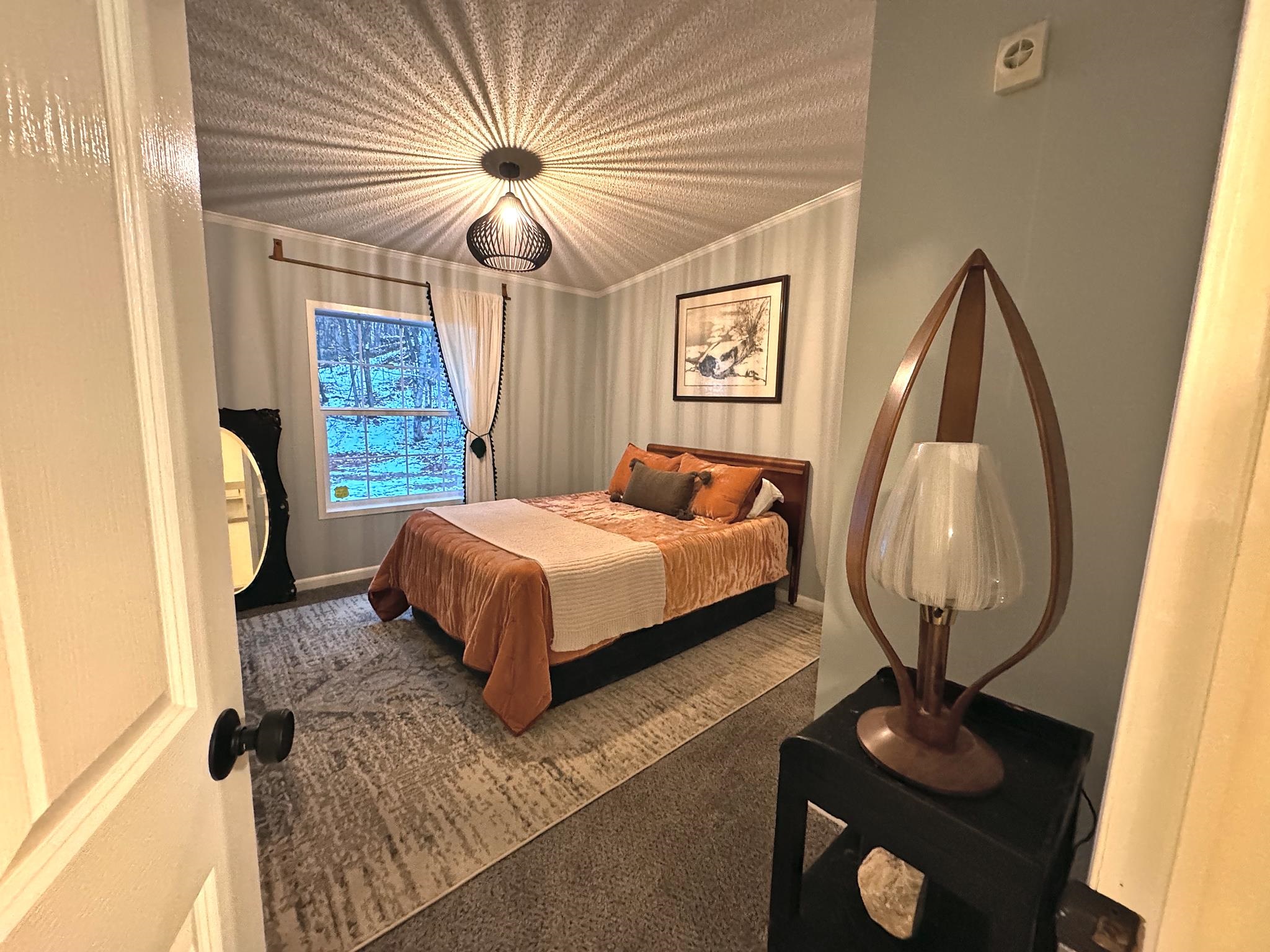 Location, location, location! Own your own private oasis on a dead-end road with nearly 7 acres - only minutes from downtown shopping and dining. Enjoy seasonal mountain views from the deck with sliding doors to the open concept living/dining room with vaulted ceiling. The propane fireplace with gorgeous wood mantle keeps things toasty while providing cozy ambiance. The spacious kitchen has plenty of room and bar seating to visit with your family or guests as you cook. This one-level home has three generously sized bedrooms and two full baths with updated vanities. The primary includes a large ensuite bathroom with two cedar closets, double sink, jet tub, and separate shower. Central AC, a laundry area in the cute mudroom, plenty of storage, and easy maintenance are just some of the reasons that this home is a winner. Rounding out the property is an oversized garage with electric door openers perfect for multiple vehicles without sacrificing storage space. Peace and quiet awaits!