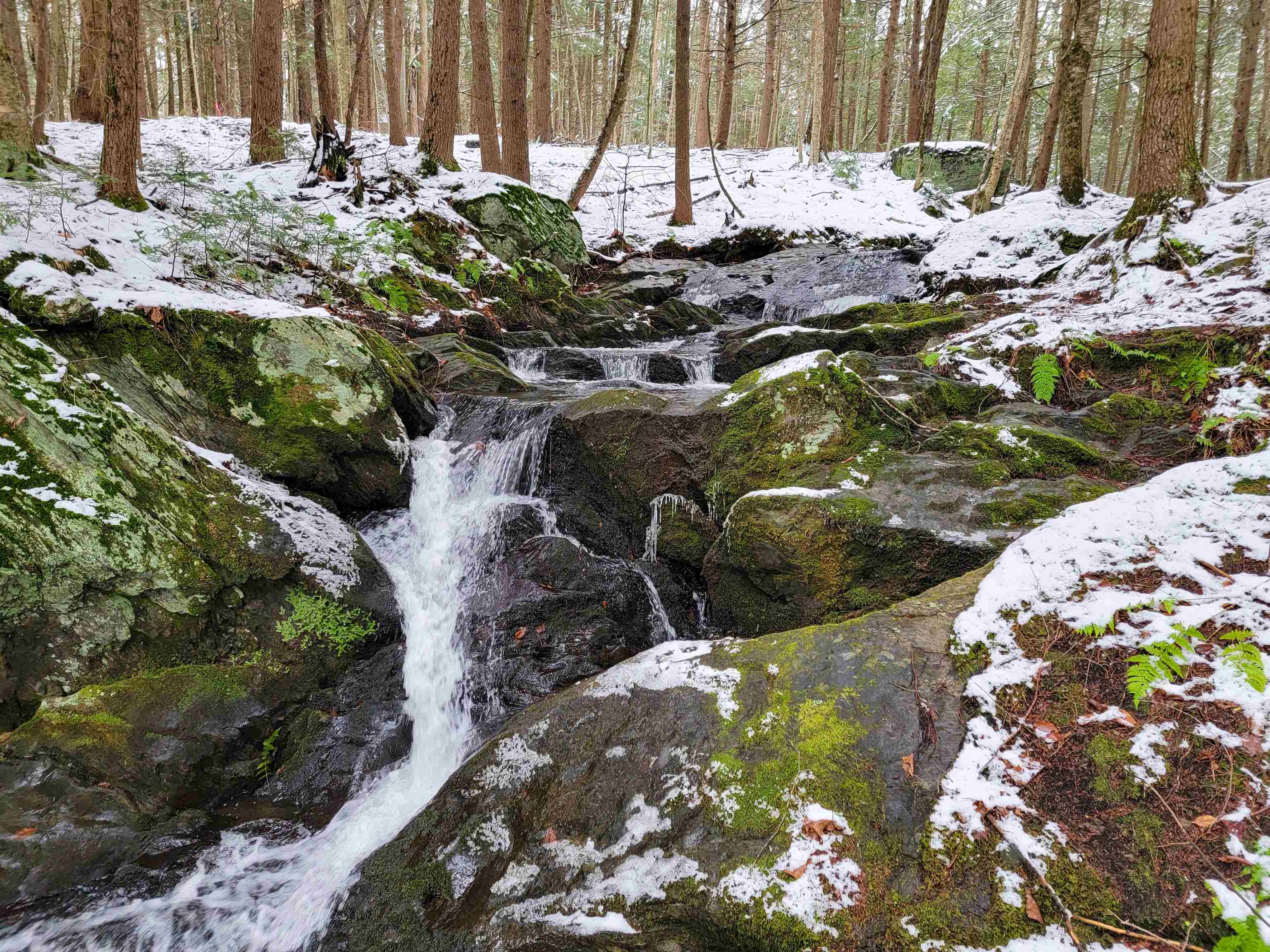 For the first time since 1984 the beautiful Majestic Falls Forest, located in the famous ski town of Stowe Vermont, is finally for sale. This expansive 19.47+/- acre woodland property sits above the VT-100 corridor with views of the valley farms to the north and Mt. Mansfield to the northwest. A very mature woodland is made up primarily of hemlock intermixed with maples and birch. Enjoy the wildlife as the deer move steadily through the property to feed in the abundant fields below. Two tributaries of the Moss Glen Brook flow gently through the property. The property is named for the incredible falls on the eastern tributary, 150+/- feet of beauty, rolling over large rock slabs and boulders. The driveway is a ROW that has been well marked and roughed in up to one of the potential home sites. Two stream crossings will be required and there is a small pond at the entrance to the property. Conveniently, a residential power line runs on the west edge of the property greatly simplifying utility access. The ROW is accessed from the end of a very nice residential neighborhood whose roads are plowed and maintained by the town. The land is gently rolling with many potential areas for a home or homes. The seller does have a preliminary 5 lot subdivision plan from the 80’s that can be provided along with soil test pit results. Stowe is well known for its year-round recreation, shopping, events and the Stowe Ski Resort. An amazing opportunity to create your private estate.