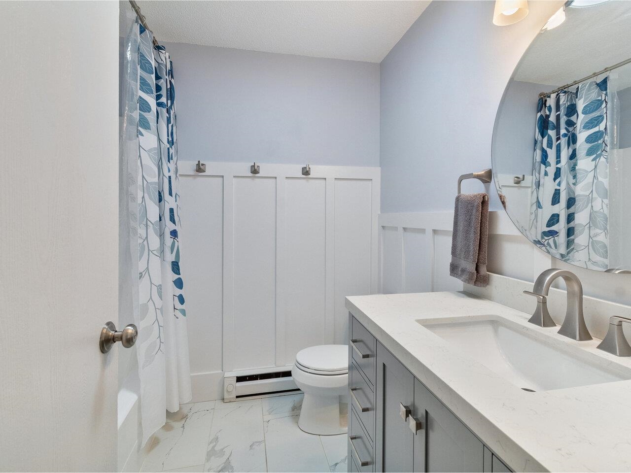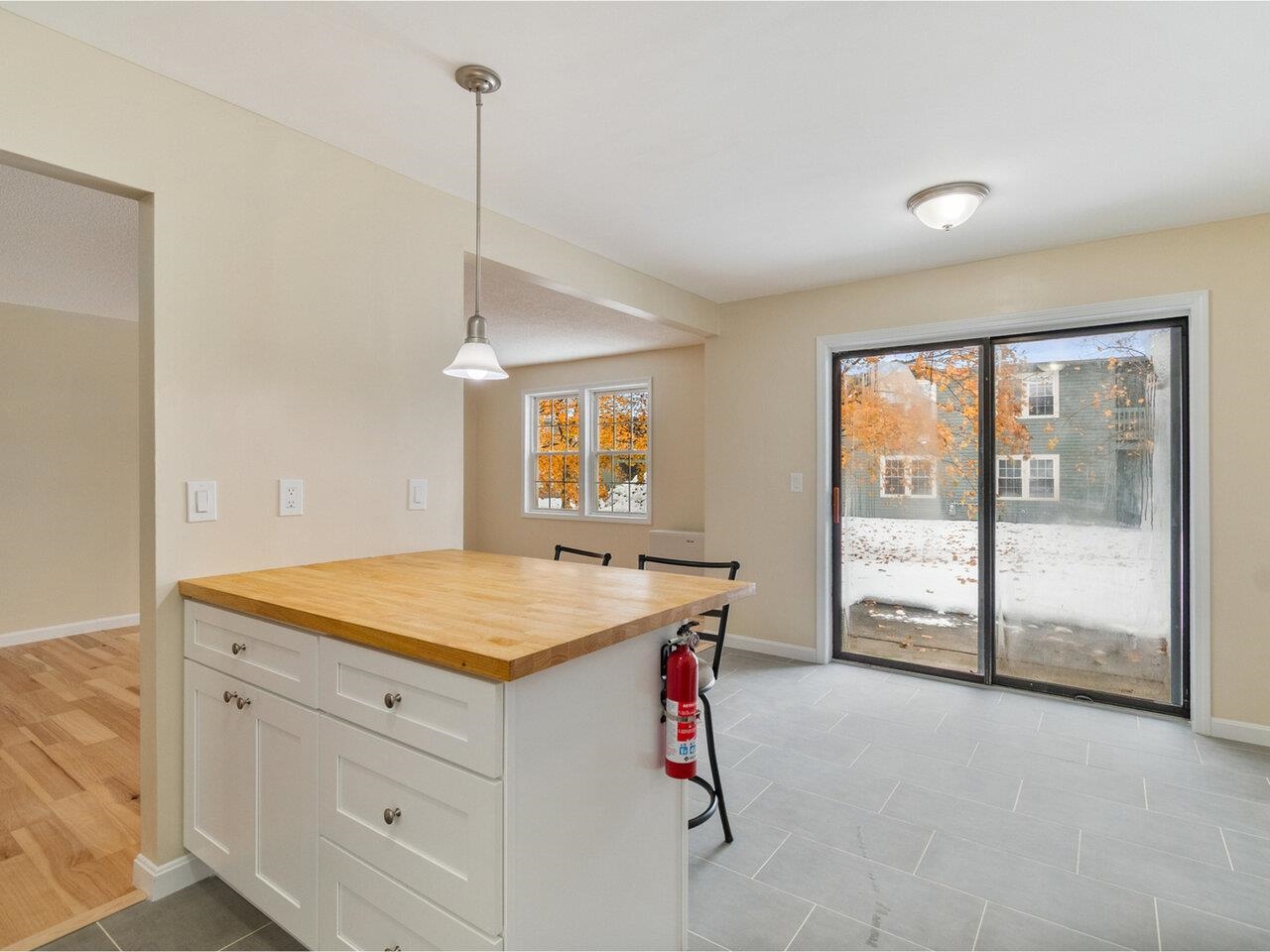 Renovated, two-bedroom Twin Oaks Condo with a fresh and contemporary interior. The upgraded kitchen stands out with new cabinetry including a pantry cabinet, butcher-block countertops, and stainless-steel appliances. New flooring has been installed throughout the unit. A bright and open living/dining area flows to a back patio. The two bedrooms are located down a hallway, each with ample closet space. The renovated full bathroom features modern fixtures, and the convenience of in-unit laundry right outside. Conveniently location with close to shopping, the University of Vermont/Medical Center, the airport, I-189 and Downtown Burlington.