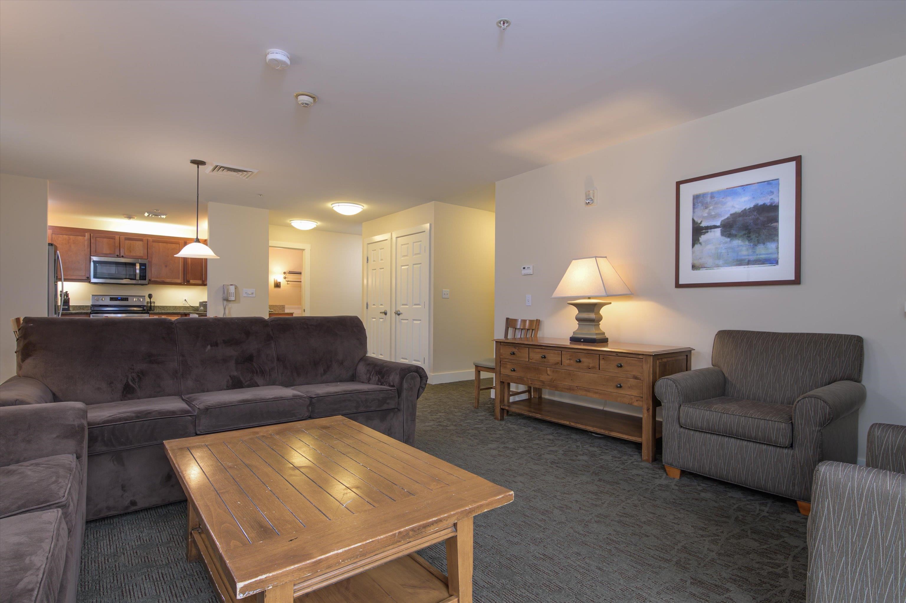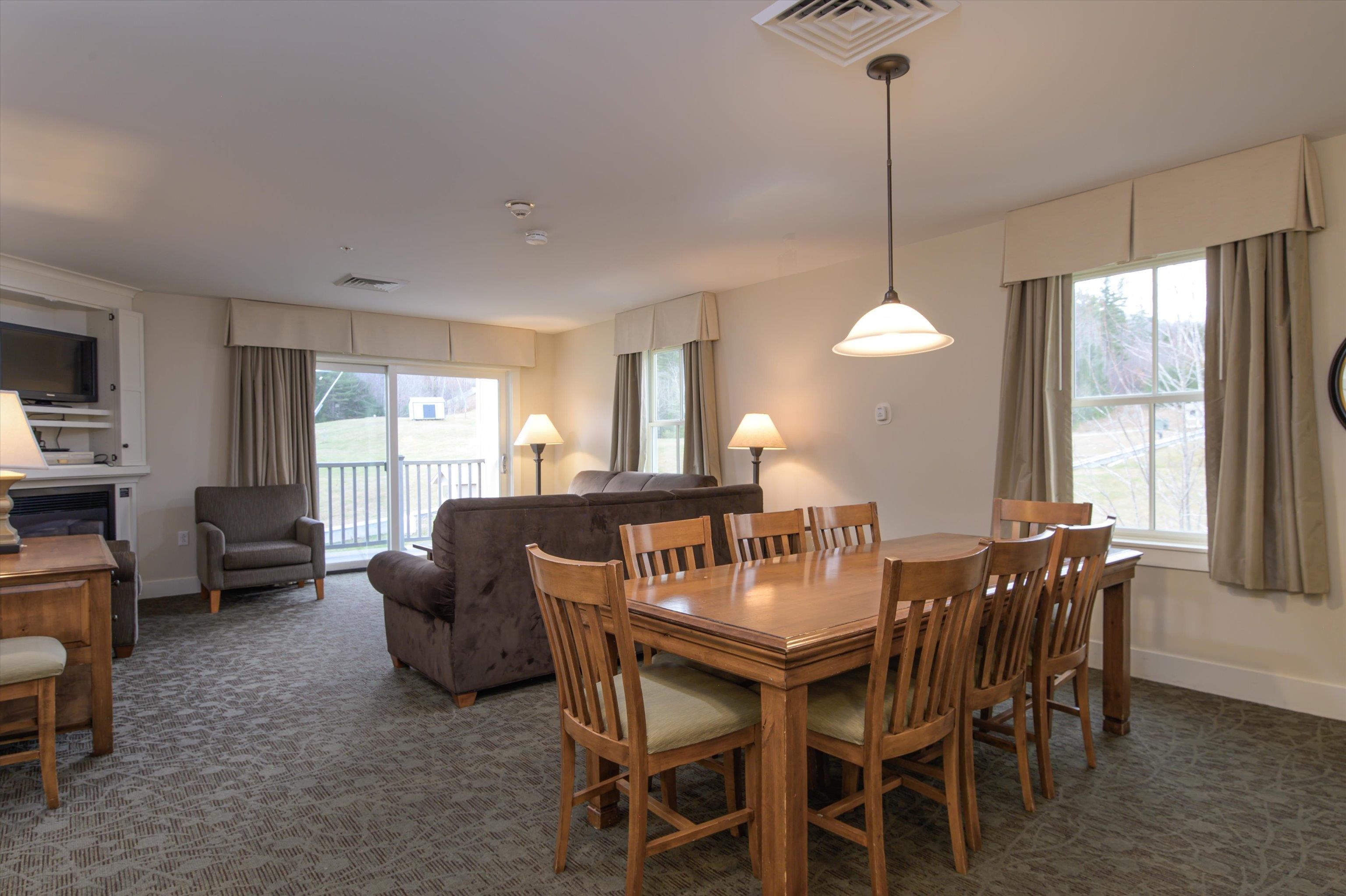 Great location on the top floor of Adams House! This three-bedroom residence sleeps 10 and has a deck and windows on all three sides, giving you not only super slope views but also panoramic views! Features include: Updated kitchen with stainless steel appliances, granite countertops and farm-style sink, spacious living room with queen sleeper sofa and fireplace, primary bedroom suite with king-sized bed, bathroom with jetted tub, fireplace, bedroom with two queen beds, extra large foyer, and the lockout side has a bedroom suite with a king-sized bed and washer/dryer. Soak in the outside hot tubs after skiing or snow tubing. It’s a short walk to the Spring House to enjoy the spa or added exercise of swimming, a yoga class, or the weight room. Amenities include: indoor/outdoor pools, underground heated garage, use of the Spring House, Adventure Zone, and Mountain Coaster. Enjoy the comforts of true ski on/ski off lifestyle! Qtr. III offers 2 weeks ownership over Christmas/New Years in 2025-26 season.