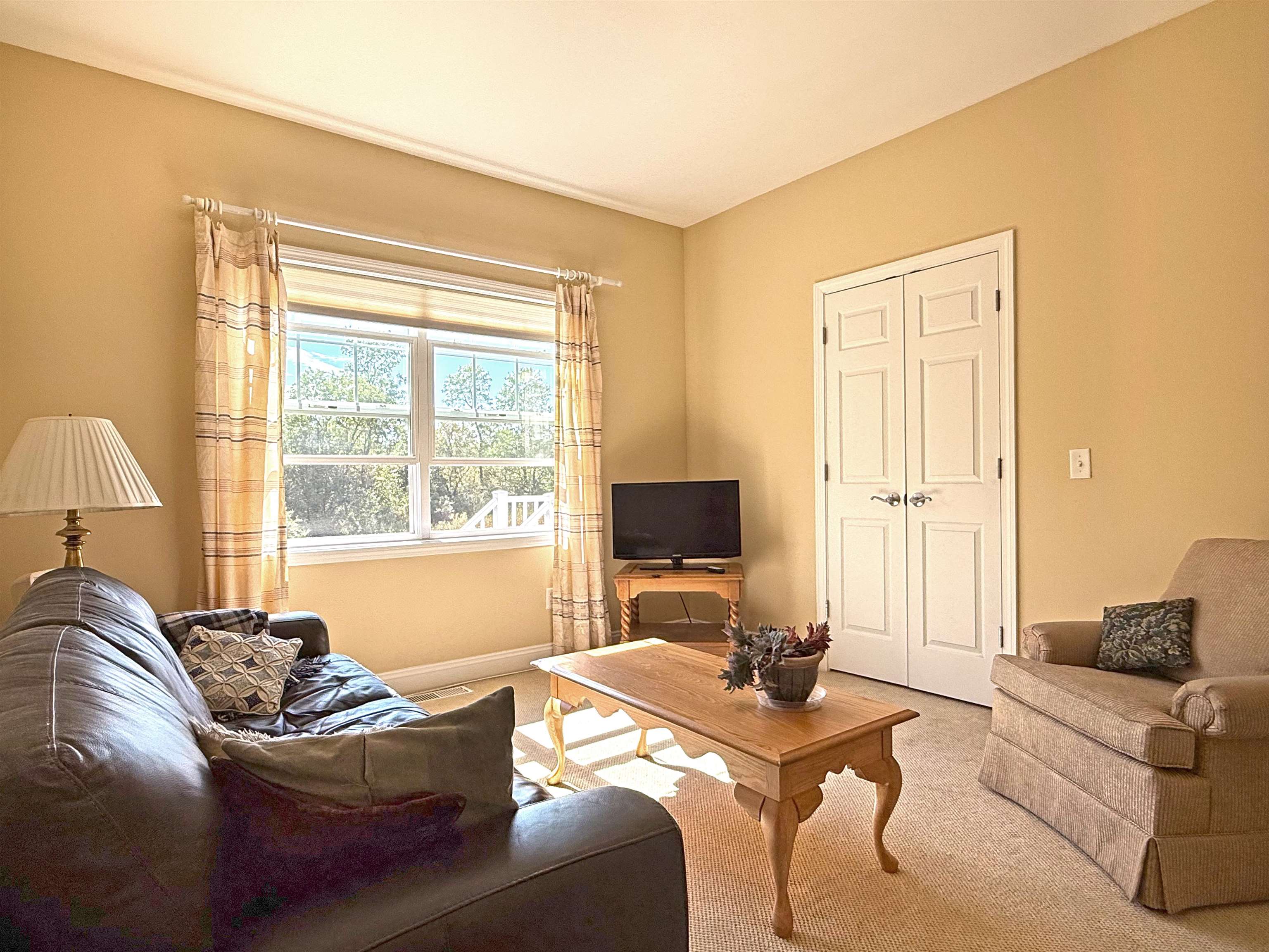This 4-bed, 3 bath ranch style home offers the option of comfortable single level living, with a nicely finished lower level that provides additional space. Located on the outer ring of Fields Road, this home is nicely situated to enjoy western exposure, privacy and wetland views in the back, while still part of a development and close to community. Entering through the formal foyer with access from both the front stoop and the attached two car garage (with ramp) there is ample room to welcome guests and kick off your shoes. The foyer flows seamlessly into both the spacious, eat-in kitchen; featuring maple cabinetry and granite counter tops, as well as into the great room with cathedral ceilings, a gas fireplace and open living/dining areas. Anchored by a gas fireplace hearth, the living room also features French doors which provide access to the light filled sunporch with glass/screened windows, tumbled marble flooring, wetland views and access to the small, easy to maintain back yard. Down a short hall from the great room, you’ll find a ¾ bath, laundry closet and two bedrooms, including the homes large primary bedroom suite with a 4-piece bath and walk-in closet. The mostly finished lower level consists of a large family room, another full bath, two additional bedrooms, and an unfinished portion for storage and mechanicals. Outdoors, many will appreciate access to the MALT trails right around the corner, and the in-town location with easy access to groceries and shopping.