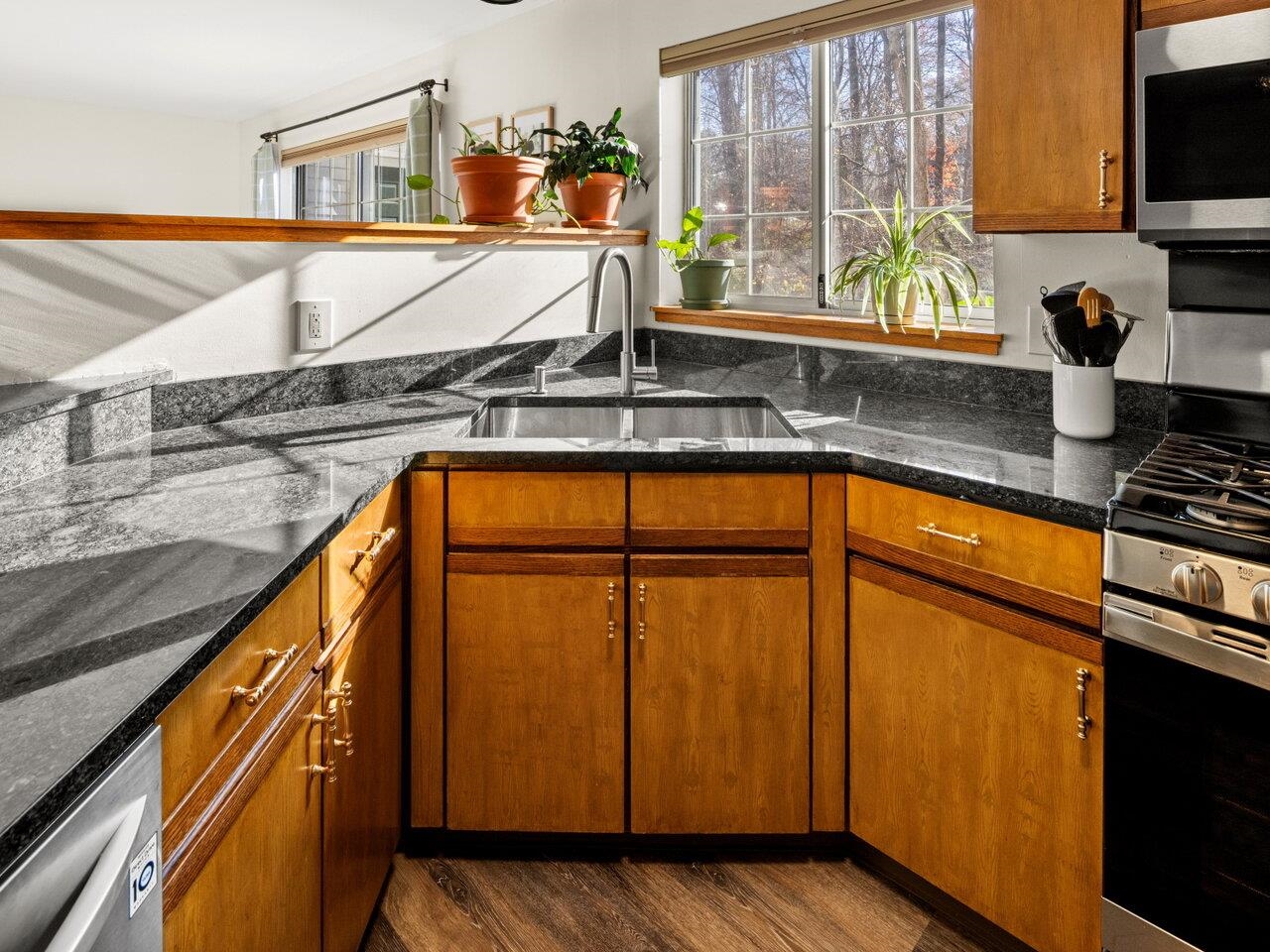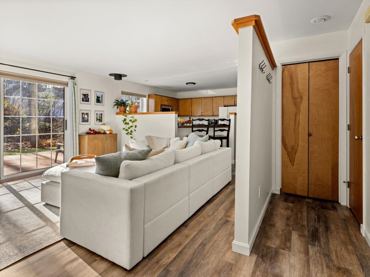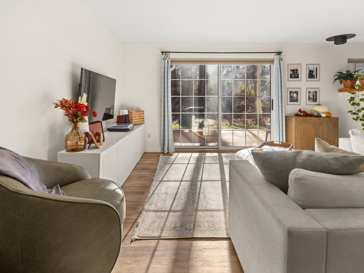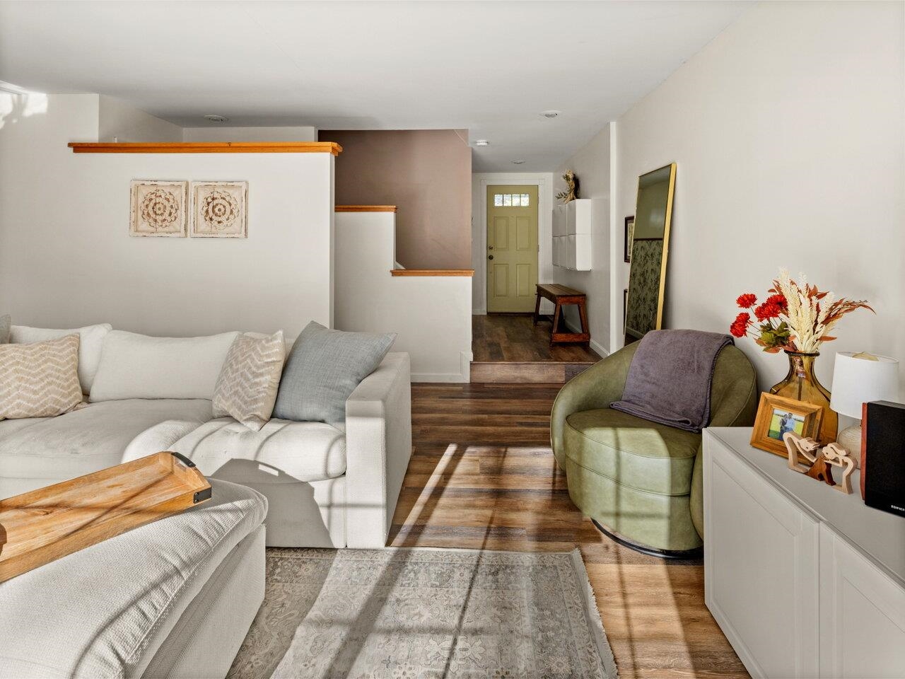 PRICED AT 2024 APPRAISAL VALUE! Spacious, sunny, 2-bedroom, 2-bath townhouse condominium. This fresh, clean, move-in-ready condo offers a large open floor plan & soothing, neutral paint palette throughout. Luxury vinyl plank flooring spans the entire main level creating a cohesive & modern feel. The bright & airy living room is filled with natural light with an expansive sliding door that opens to a recently reconditioned, oversized deck - perfect for relaxing or entertaining. The open kitchen features newer granite countertops, ample prep space, counter seating, natural gas range, updated undermount stainless steel sink, refreshed cabinetry, and charming window ledges ideal for a small herb garden. The open dining area includes a newer overhead light fixture & fresh color scheme. A charming, private powder room completes the main level. The front entry has been tastefully updated with a wallpaper feature wall & an Ikea wall-mounted storage unit. Upstairs, you'll find two generously sized bedrooms, including a spacious primary suite large enough for a king-sized bed & complete with double closets. The sunny full bathroom offers a convenient storage nook & the hallway includes a laundry/utility closet for added convenience. Includes a 1-car detached garage, with additional on-street guest parking. Located in a super convenient location with easy access to a bike/walking path & minutes to the airport, I-89, UVM, hospital, shopping, restaurants, & downtown Burlington.