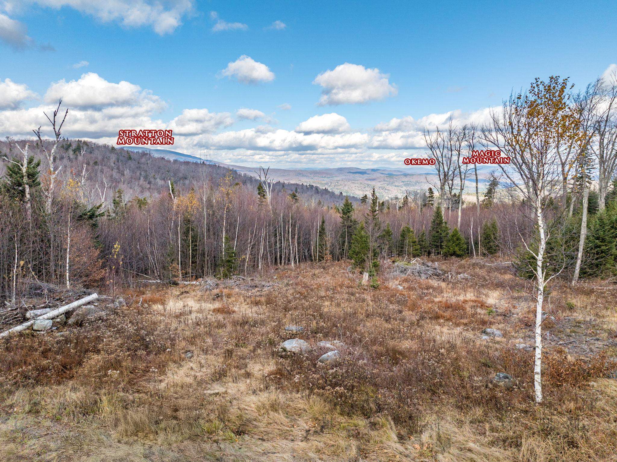 Exceptional New Offering! Rare 41± acres in Stratton with extraordinary 180° +/- long-range mountain views, improvements, base camp, driveway, clearings, trails, wildlife, and a substantial WOW factor. All for approx. $12,000/acre. A short drive in from paved Route 100, before the land rises further in elevation, sits the rustic 1-bed base camp overlooking open field and multiple ski mountains/mountain ranges. Views are impressive from this level and expand dramatically as you explore higher elevations or potential house sites. Large view parcels w/ access, acreage, improvements, convenience to major ski areas, privacy, and year-round usability are increasingly rare — a property to secure and hold for generations. Driveway installed; soil testing supports a 3–5 BR home. No deed restrictions. Power/internet on the road. Well-laid trail network and extensive terrain throughout. Base camp serves as a launch point for hiking, snowmobiling, ATV use, hunting, exploration. Active bear & wildlife corridors, stone walls, spring contribute to a true backcountry Vermont feel, yet minutes to 4-season resorts, lakes, dining, shopping, skiing & golf. Stratton Town Forest across the road offers extensive hiking & biking trails. Ideal for legacy estate, multi-home compound, four-season recreation retreat, or long-term land investment — one of Southern Vermont’s last great opportunities, the kind kept for decades. Approx. 2 miles to Mount Snow, 6 miles to The Hermitage Club,10 to Stratton.