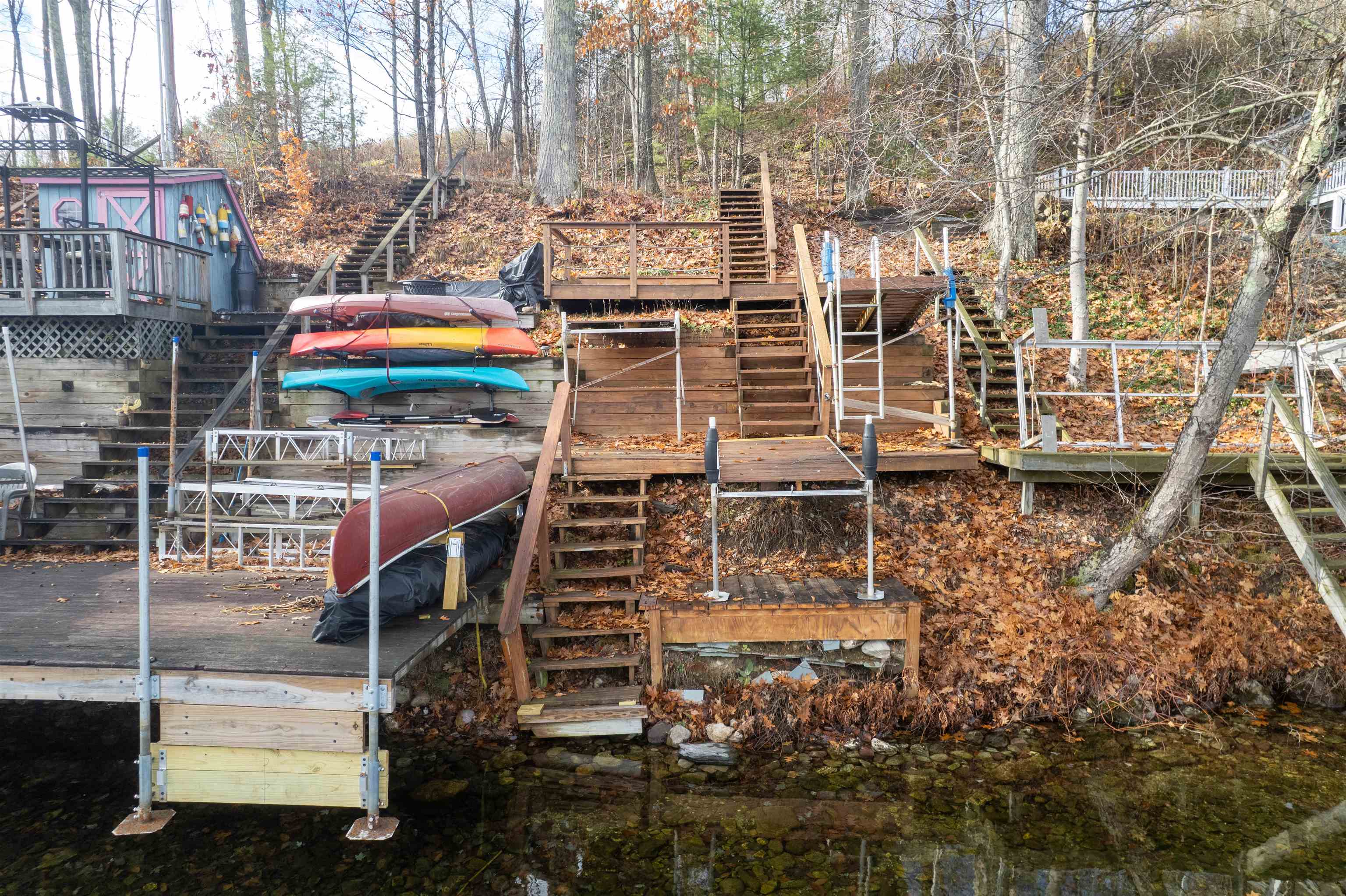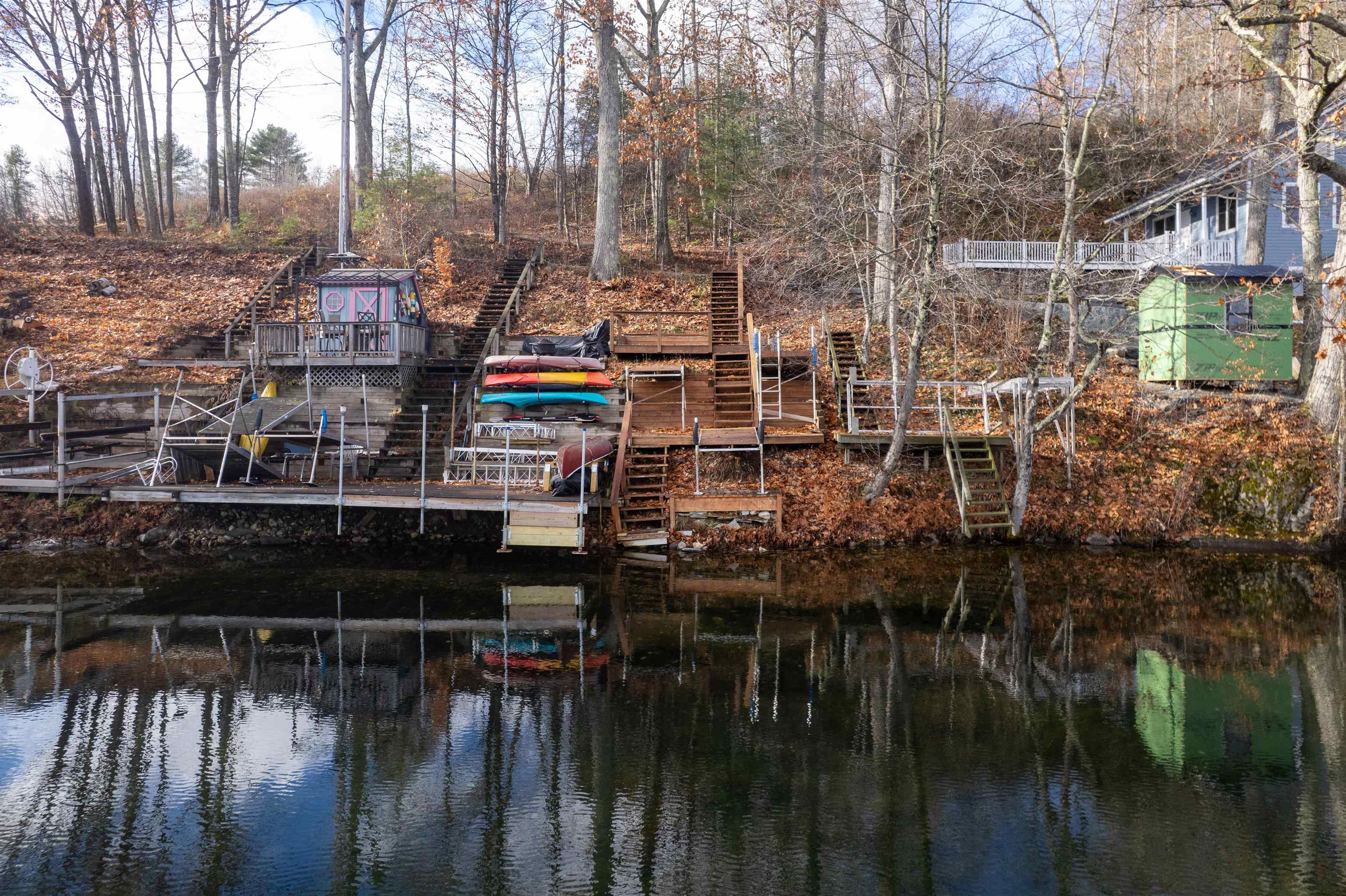Discover this charming 3-bedroom, 3-bathroom home overlooking beautiful Lake Bomoseen, complete with deeded lake access, two docks, and a deck with space for a grill—perfect for waterfront dining and relaxation. Enjoy summer boating and winter recreation, including ice skating, ice fishing, cross-country skiing, and snowshoeing right on the lake. The remodeled kitchen opens to a bright dining area, which flows into a sunken living room featuring a cozy wood-burning stove for chilly evenings. The first floor also includes an office, a ¾ bath, and a convenient laundry area. Upstairs, you’ll find three bedrooms, including a primary suite with stunning lake views and direct access to the full bathroom, which is shared with the additional two bedrooms. A spacious bonus room with its own full bathroom completes the second floor—ideal for a playroom, guest suite, hobby room, or flexible living space. Outside, enjoy a large deck perfect for entertaining, a relaxing hot tub, a generous yard, and a peaceful, private setting. A 3-bay garage provides ample room for parking, storage, and all your recreational toys. Since 2020, the owners have completed numerous updates, including a fully remodeled kitchen, new garage doors, a new roof with skylights, fresh exterior paint, and many additional cosmetic improvements throughout.