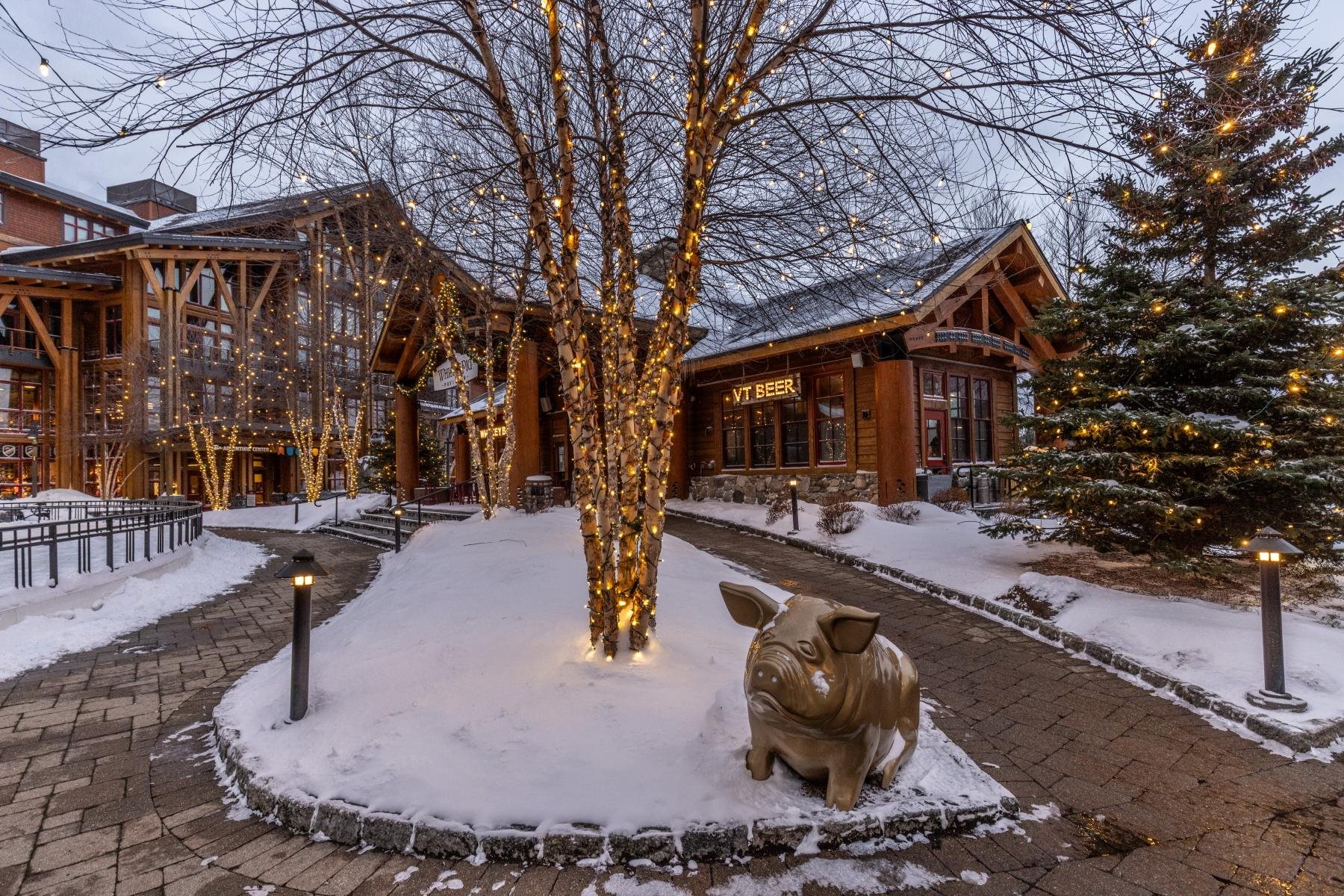 Luxury Slopeside Living at Stowe Mountain Resort. This beautifully renovated 4-bedroom, 5-bath TRUE ski-in/ski-out Mountain Cabin offers the pinnacle of slopeside living at Stowe. Highlights of this stunning cabin include a mountain-view primary ensuite with propane fireplace, private guest ensuite, two additional bedrooms with a shared bath, and a flexible bonus room ideal for an office, gym, or kids hideout space. The open floor plan on the main level features high-end appliances, refined finishes, a fireplace in the great room and one in the living room, and a finished lower walk out level with a spacious recreation room for additional living and entertaining. Step out the back door to your private hot tub and watch skiers glide by, or enjoy the view fireside from indoors. With effortless access to skiing, village dining, the spa, golf, pool, pickle ball, ice skating, concerts, and more, this home is a year-round basecamp for mountain adventure and alpine luxury.
