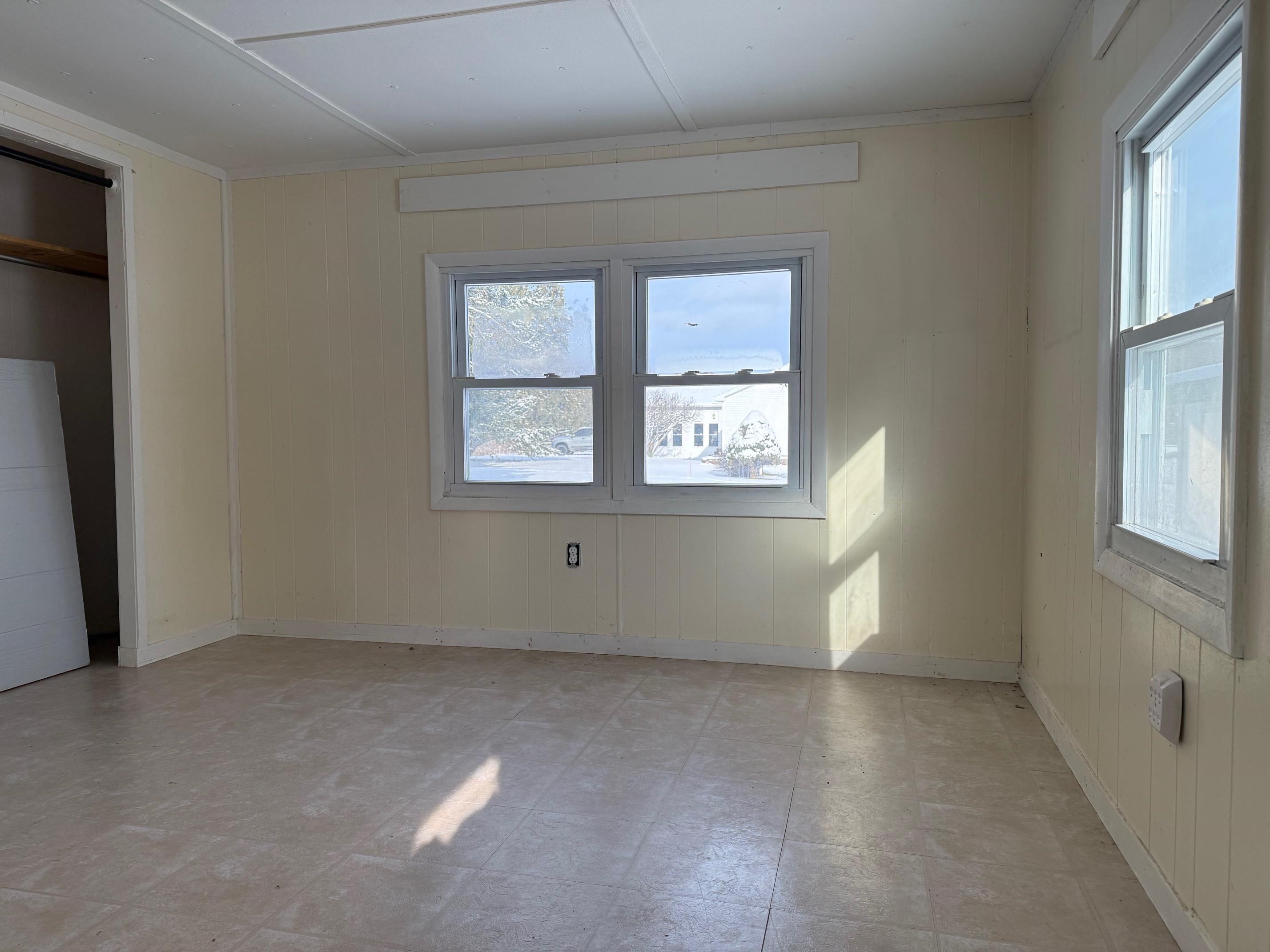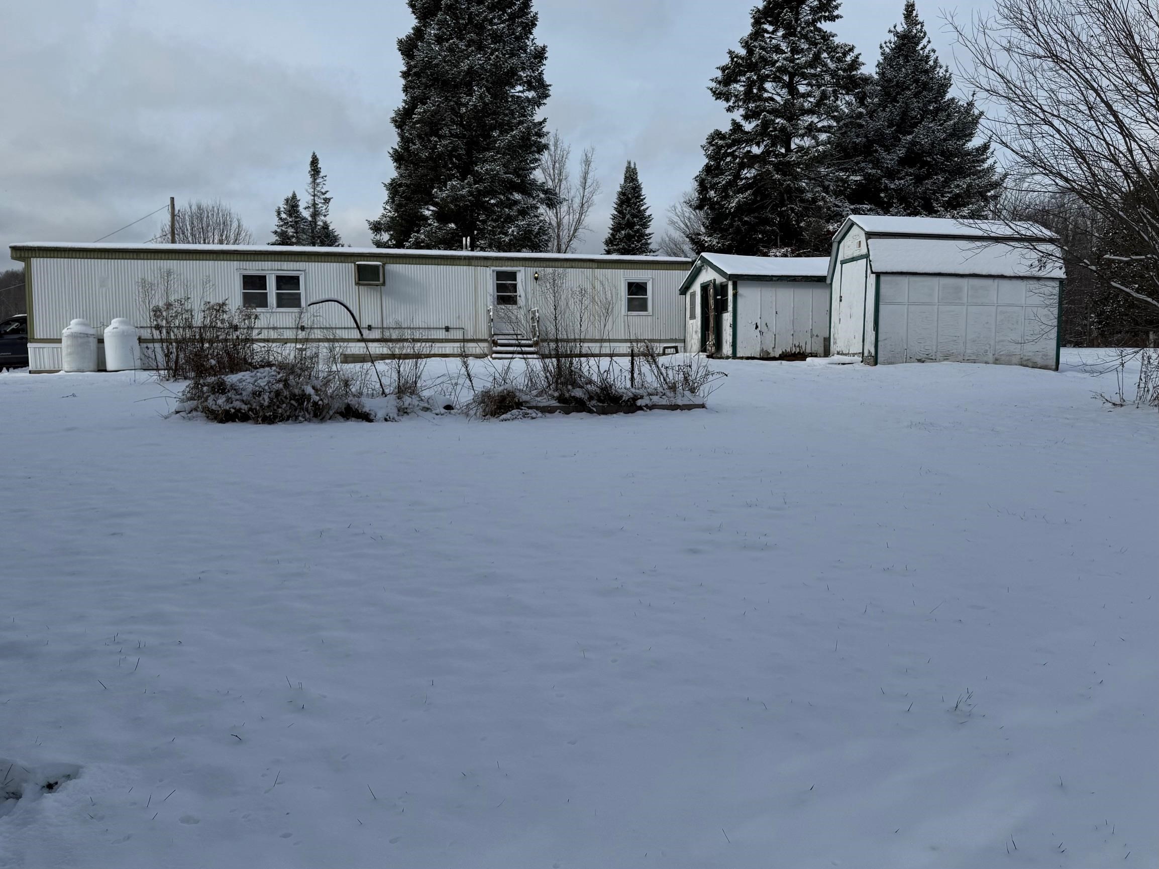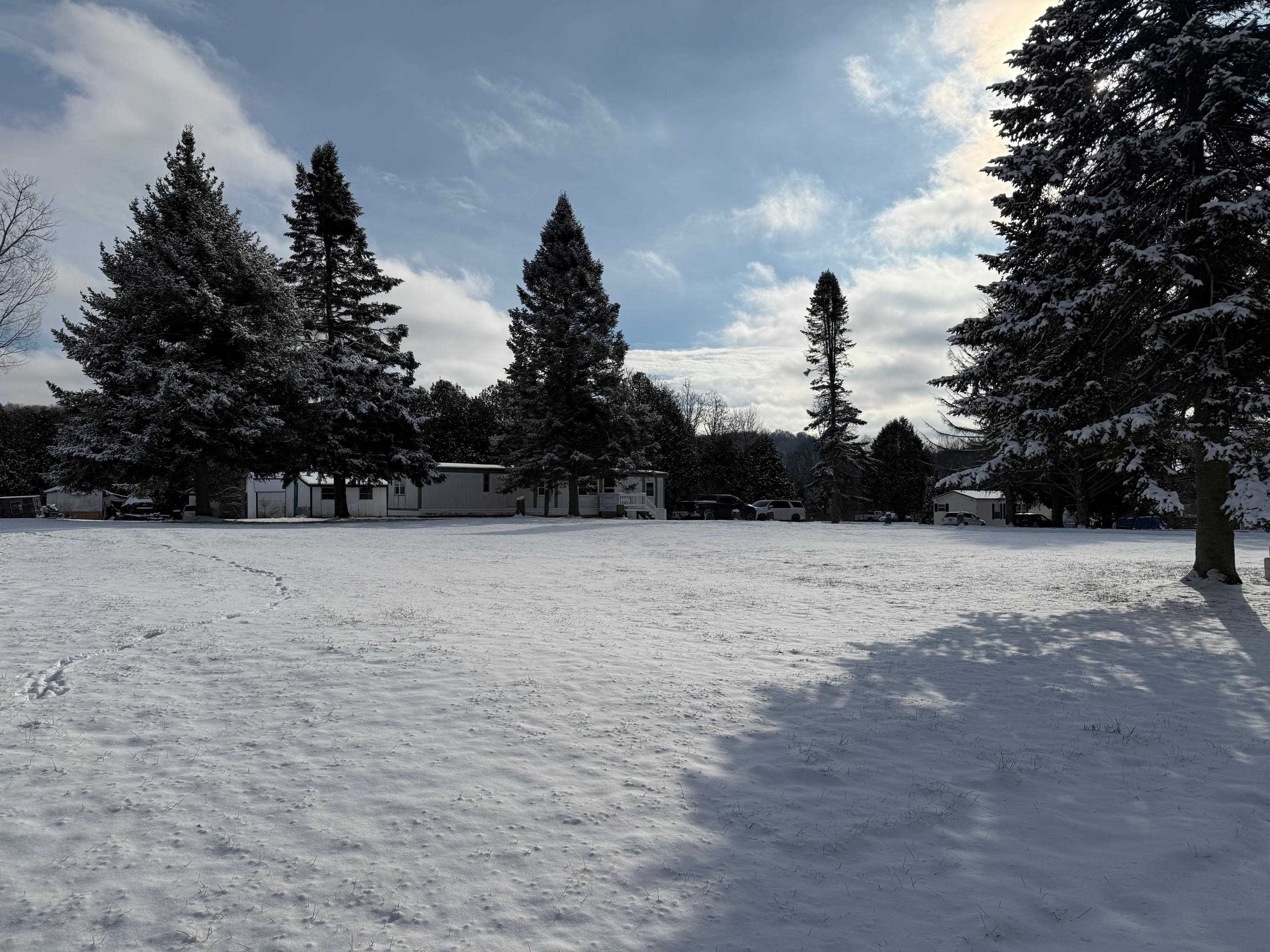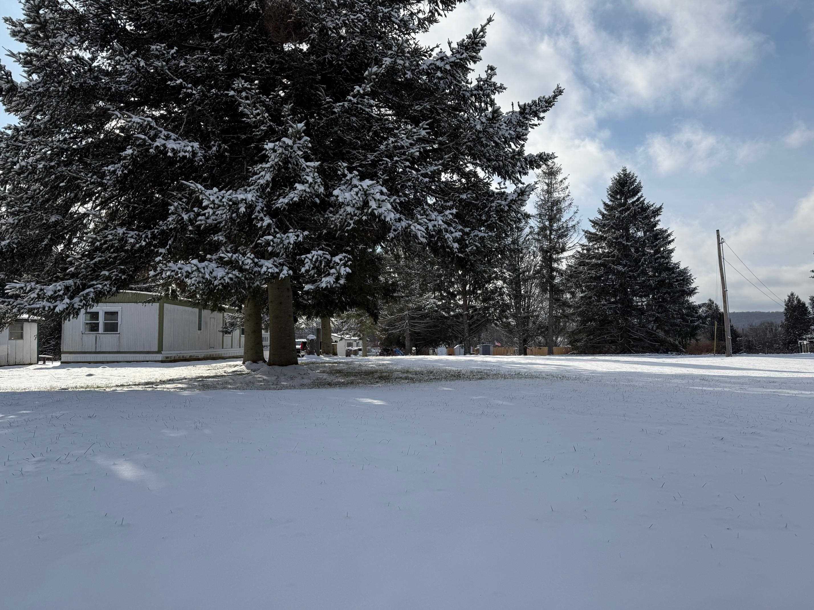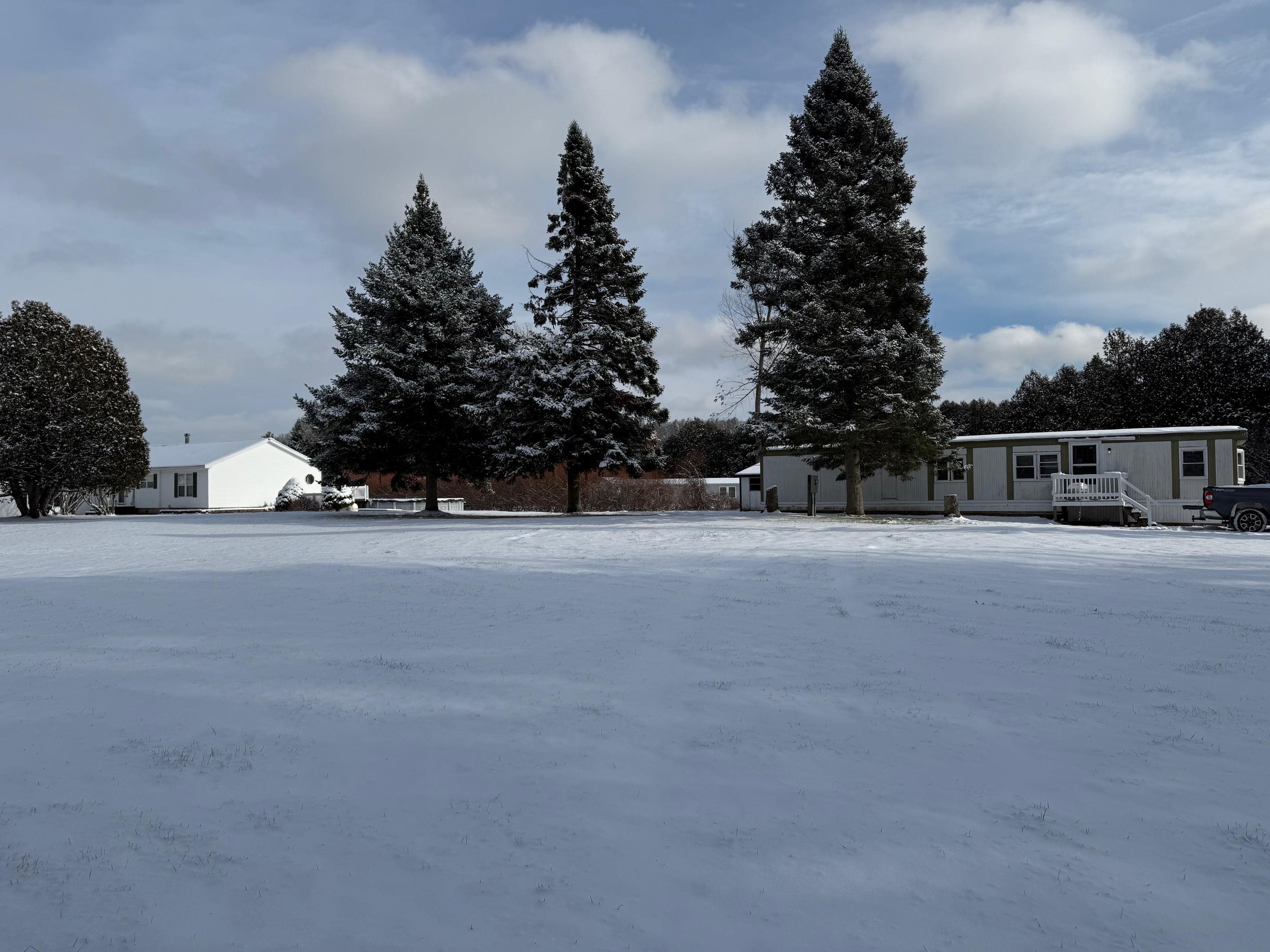 This level and mature corner lot is .88 acres and fully improved with an onsite 1, 000 gallon septic and leach field, community water ($45/month), and a 1976 2-bedroom mobile home. The lot is so spacious and cleared to enjoy. There are two storage sheds onsite and parking for 2+vehicles. The exterior is metal with a metal roof, double plane windows. The home sits on a slab, has tie downs, insulation, new skirting installed 2023, and heat tape. The home has newer carpeting, plywood subfloor in living room and hallway, and vinyl plank in the dining room. Appliances included: washer, refrigerator, gas range. The kitchen does have a spot to hook up a dishwasher. High efficiency furnace is approximately 3.5 years old. Use as is, or plan to build in the future!