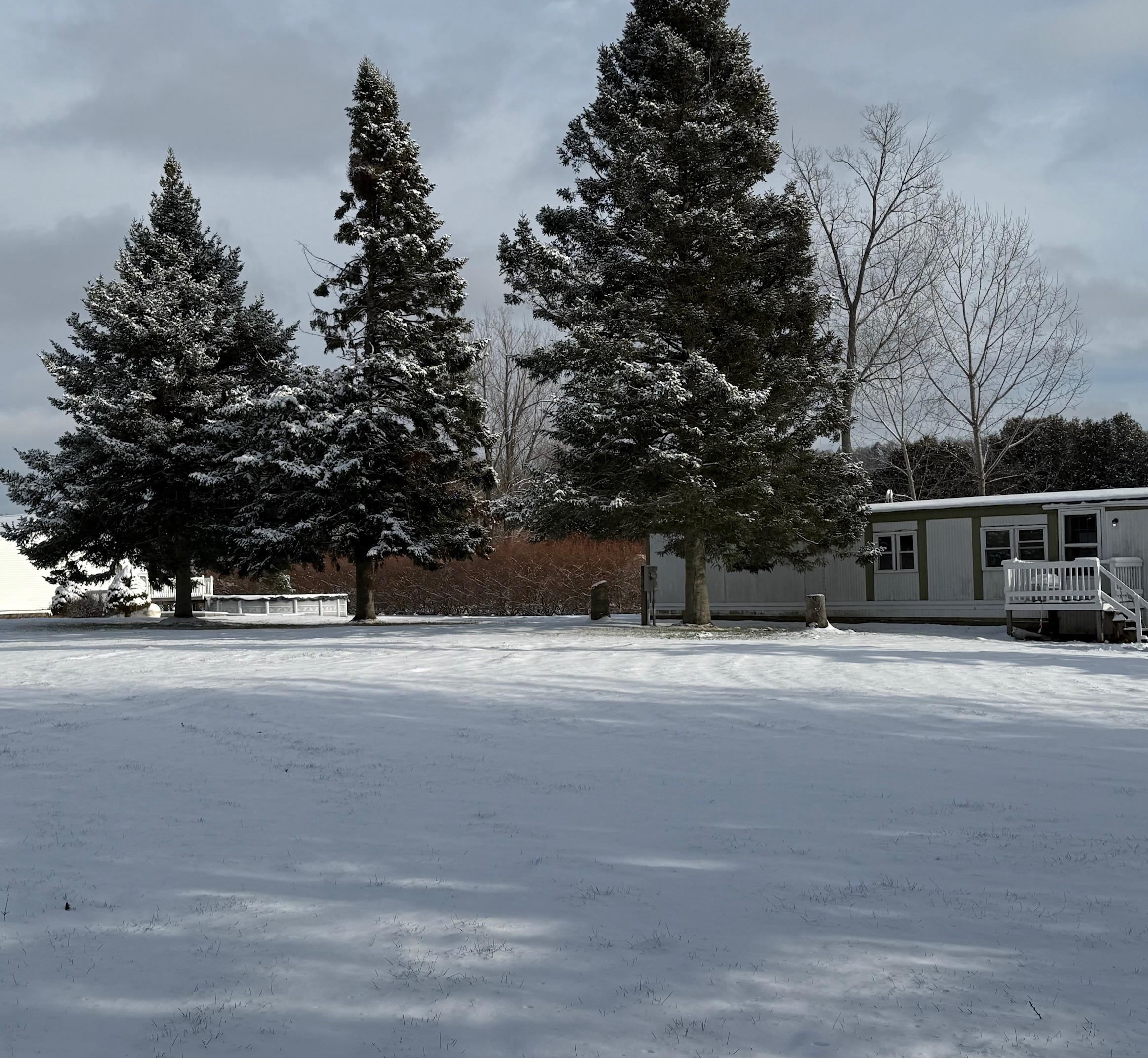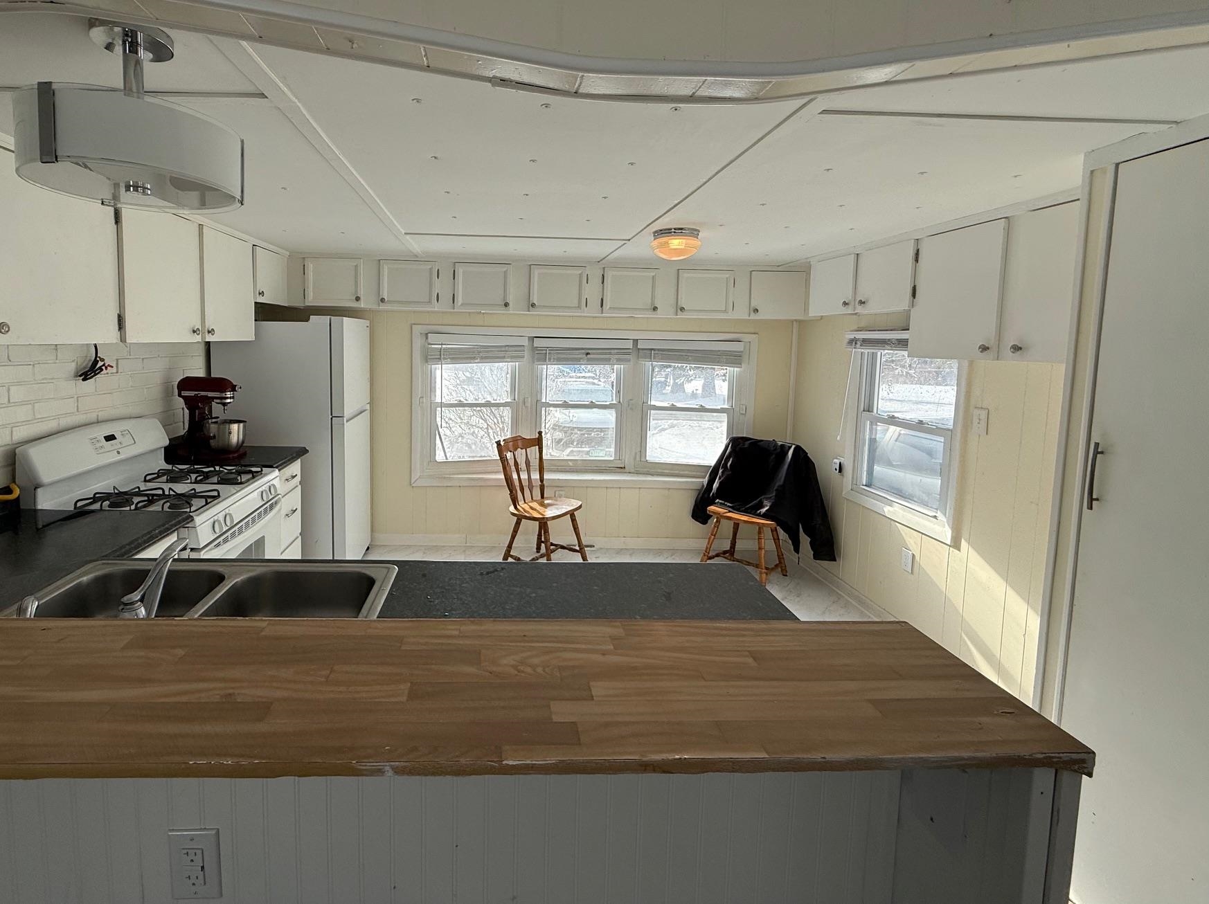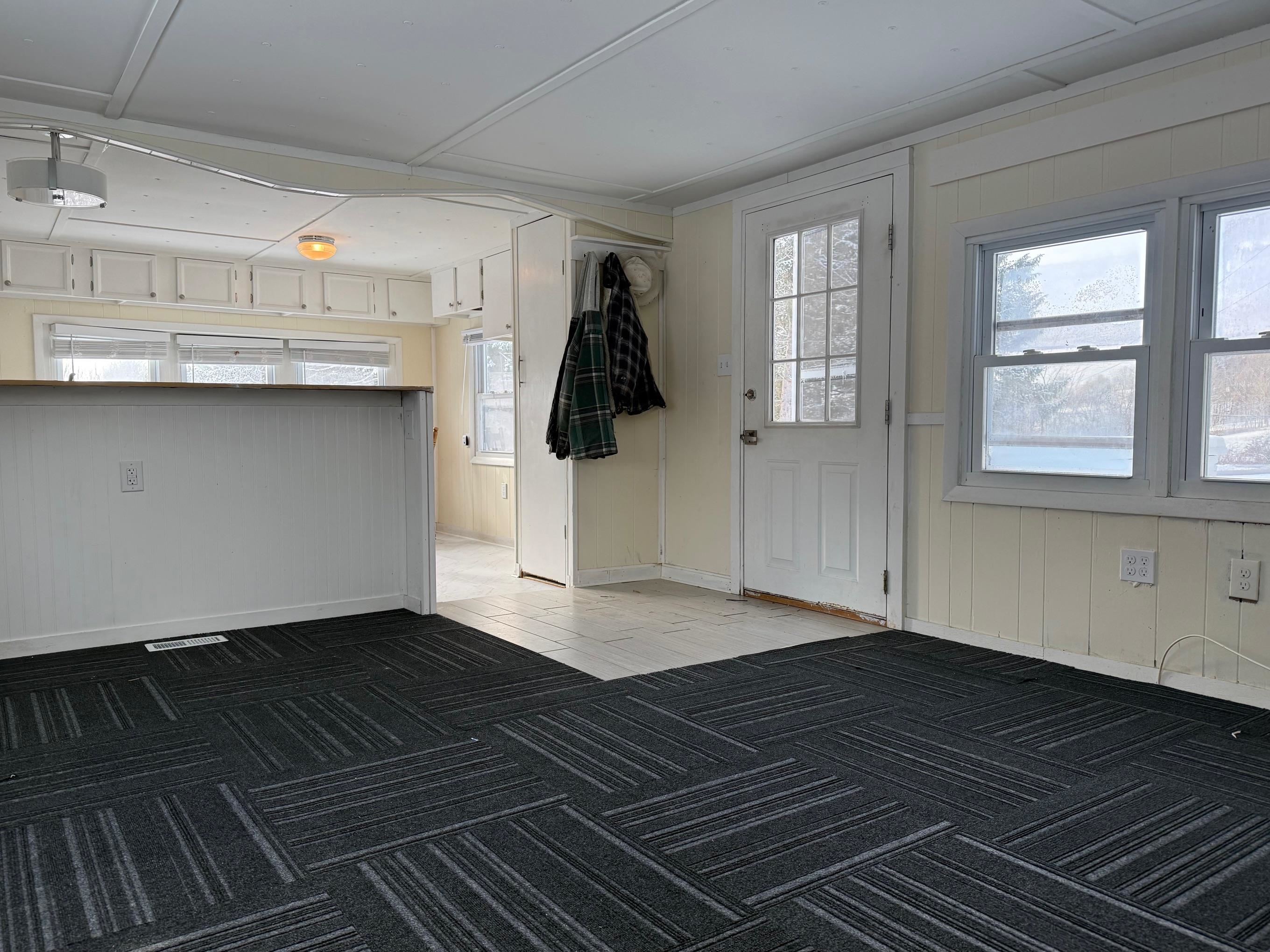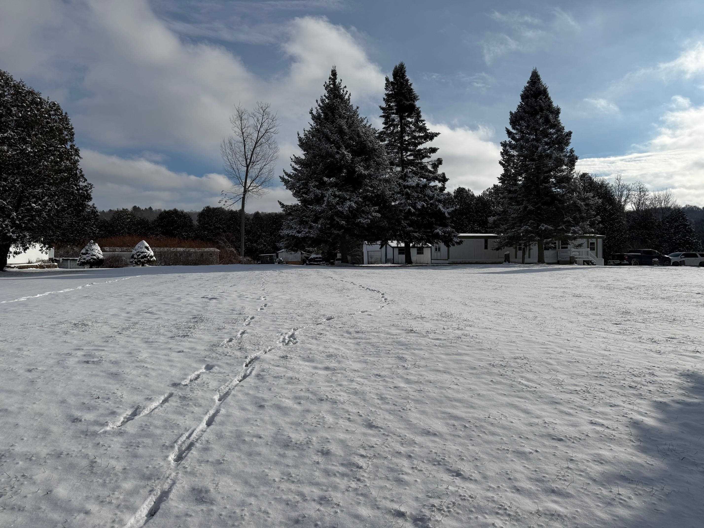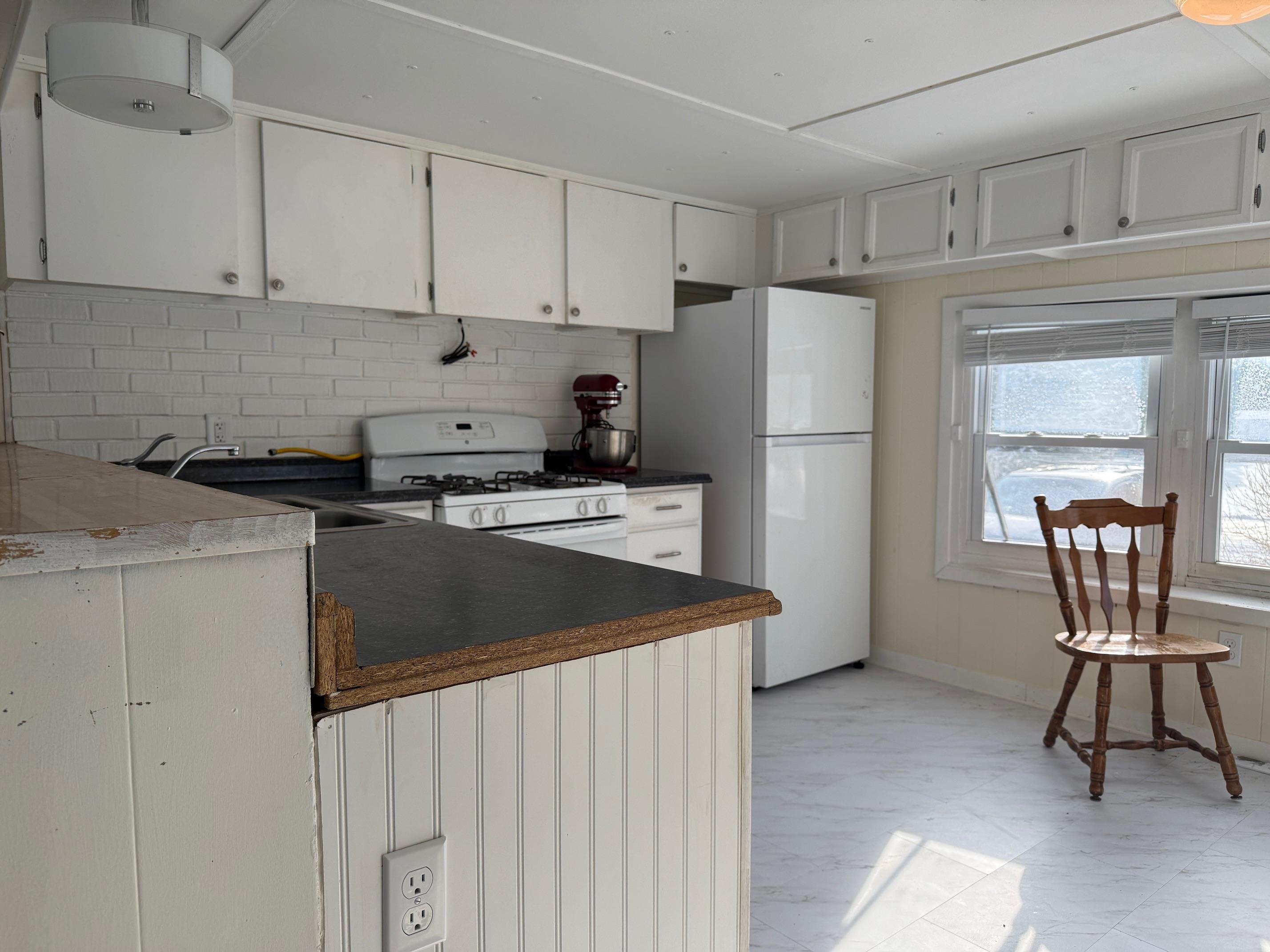 This level and mature corner lot is .88 acres and fully improved with an onsite 1, 000 gallon septic and leach field, community water ($45/month), and a 1976 2-bedroom mobile home. The lot is so spacious and cleared to enjoy. There are two storage sheds onsite and parking for 2+vehicles. The exterior is metal with a metal roof, double plane windows. The home sits on a slab, has tie downs, insulation, new skirting installed 2023, and heat tape. The home has newer carpeting, plywood subfloor in living room and hallway, and vinyl plank in the dining room. Appliances included: washer, refrigerator, gas range. The kitchen does have a spot to hook up a dishwasher. High efficiency furnace is approximately 3.5 years old. Use as is, or plan to build in the future!