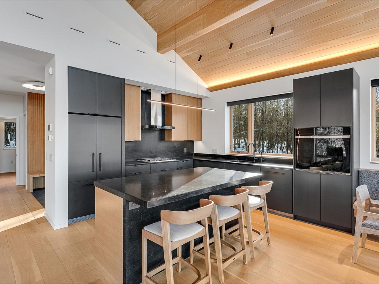 Incredible location, stunning views, designer curated, and brand new! Perched high above the Mad River Valley with glorious western views from Sugarbush to Camel's Hump and beyond. Over 37 very private acres adjoining Camel's Hump State Forest with hiking and biking trails, yet only minutes from downtown Waitsfield. Vaulted ceilings with light oak features, floor-to-ceiling walls of glass showcasing the views, and warm quarter-sawn oak floors grace the main living area. Exquisite attention to detail throughout this home is evident in the cabinetry and the millwork, custom designed and crafted locally by Pomerantz Woodworking, a highly respected and sought-out artisan.