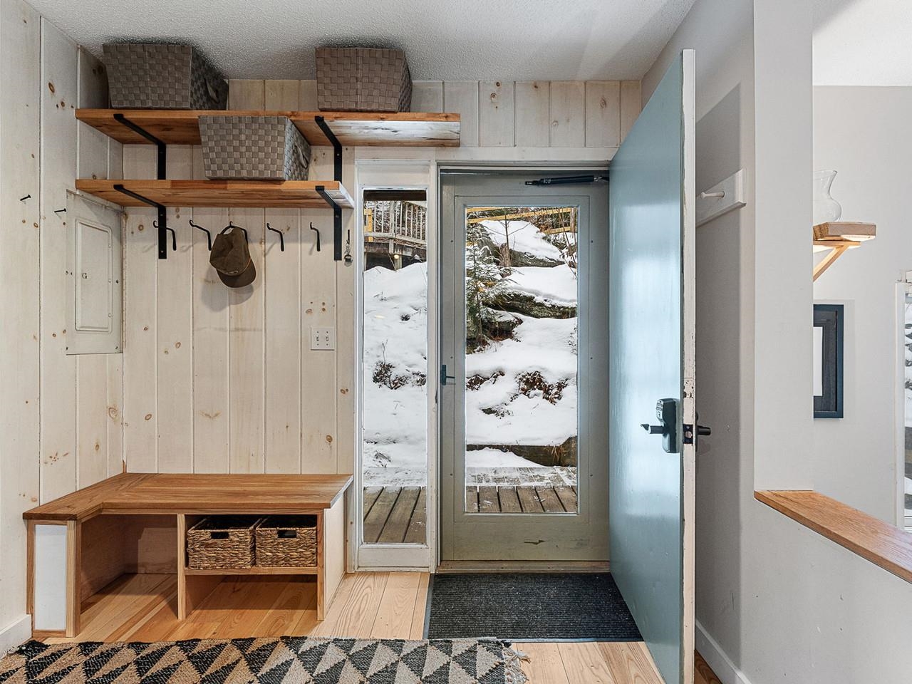Stunning Design - Completely Remodeled Throughout! Just minutes from downtown Waitsfield, Sugarbush Resort, hiking and biking trails, and all the recreational opportunities the Mad River Valley has to offer. This beautifully updated condominium features a stylish kitchen with soapstone countertops, a deep oversized sink, and stainless-steel appliances. Hardwood floors flow throughout the main living areas, including a sunken living room with a cozy gas fireplace and sliding doors onto the deck for relaxing or dining. The open floor plan creates a spacious feeling rarely found in a unit of this size. One of the two bedrooms includes a convenient office nook; both have storage lofts. Being sold partially furnished. A perfect blend of modern design and Vermont charm.