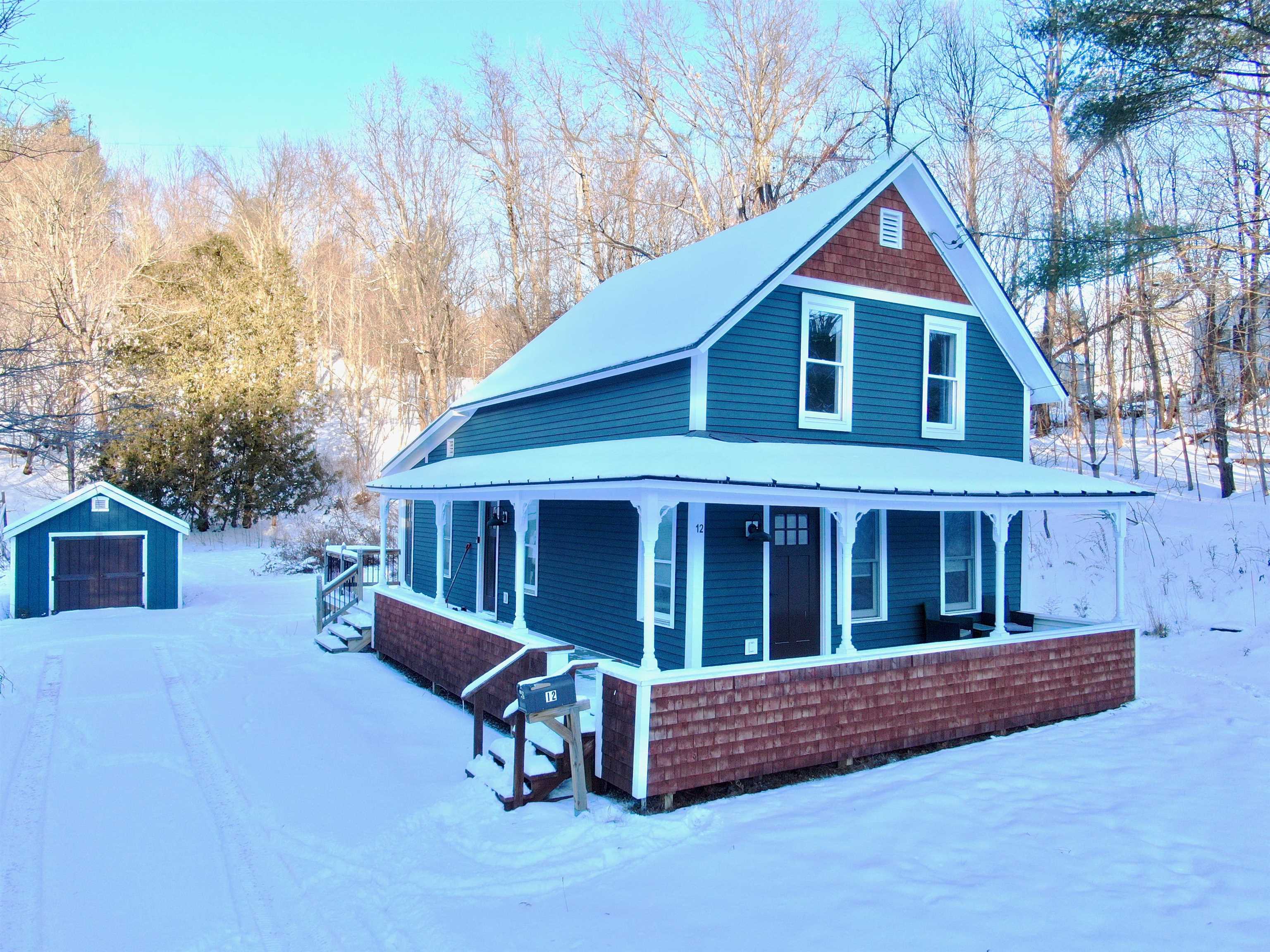 Beautifully renovated and centrally located, this Waterbury home blends classic charm with modern updates throughout. A welcoming wraparound porch sets the tone, offering a comfortable outdoor space in every season. Inside, the open first-floor layout features warm hardwood floors, recessed lighting, and a gas fireplace with custom built-ins—creating a bright and inviting center for daily living. The updated kitchen includes stainless steel appliances, a large island with seating, and clean, contemporary finishes. The flow between kitchen, dining, and living areas makes the main level feel spacious and connected. A first-floor bedroom adds flexibility for guests, office use, or single-level living, complemented by a renovated full bath and dedicated laundry room. Upstairs are two additional light-filled bedrooms, an updated bath, and a walk-in closet. Throughout the home, fresh finishes and thoughtful improvements create a move-in-ready experience. Set against a wooded backdrop with a gently sloping yard, the property offers a sense of privacy while remaining close to Waterbury’s shops, restaurants, and recreation. This is a turnkey opportunity in one of Central Vermont’s most desirable communities.