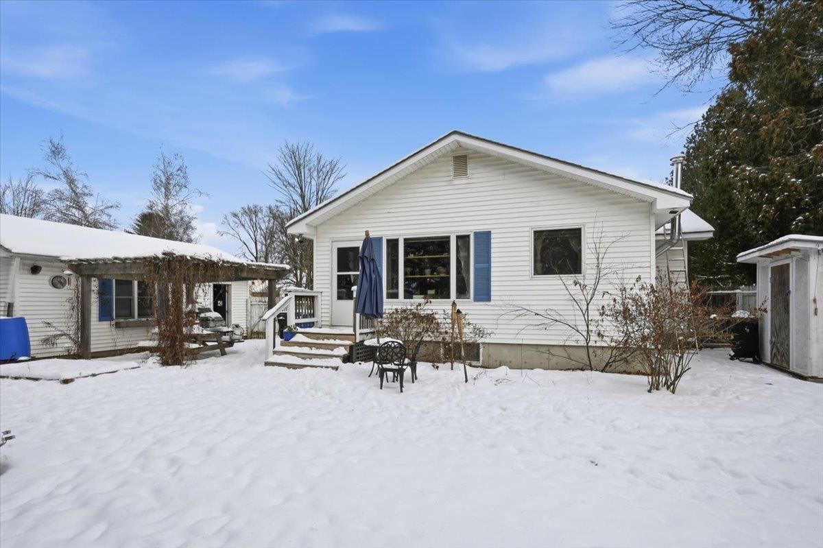 Welcome home to this charming ranch-style property set on a spacious lot in the heart of Essex Junction. This inviting 2-bedroom, 1-bath home offers comfortable one-level living with an easy, open layout and thoughtful features throughout. The bright living room is filled with natural light and highlighted by a built-in entertainment center and warm hardwood flooring that carries through the main living areas. The open eat-in kitchen features sleek appliances and plenty of room for everyday dining, while the adjoining dining area offers flexibility as a cozy den or home office if desired. Two well-sized bedrooms and a full bath complete the main level. The full basement adds valuable additional space with a partially finished area ideal for a family room, playroom, office, or workout zone, along with laundry hookups and great storage options. Outside, the large fenced-in yard is perfect for gardening, pets, and play. The detached garage doubles as an excellent workshop space. Ideally located close to shopping, restaurants, grocery stores, the popular Five Corners, and more, this home offers comfort, convenience, and the chance to enjoy the best of Essex Junction living. Easy commute to Winooski, Colchester & Willston!
