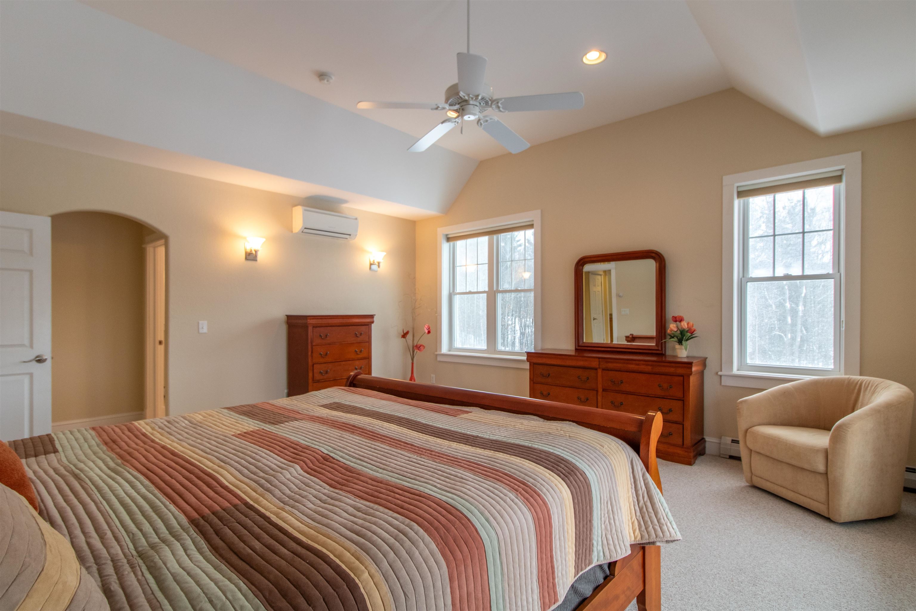Experience luxurious, low-maintenance living with stunning views of Lake Memphremagog and the surrounding mountains. This top-floor, condo offers convenient elevator access and sweeping sunset views. The open concept layout is filled with natural sunlight. It features a spacious living area that opens to a covered porch, also accessible from the primary suite, perfect for relaxing and enjoying the scenery. The kitchen boasts granite countertops and high-end finishes, complemented by beautiful hardwood and tile flooring throughout. The condo offers three bedrooms and four bathrooms, with the primary suite featuring a private bath and a relaxing soaking tub. Both front and rear covered porches enhance outdoor living. Additional highlights include two separate one-car garages, one of which is oversized with extra storage space. Conveniently located near Newport Country Club, the bike path, and VAST trails, this exceptional condo presents a rare opportunity to enjoy upscale living with panoramic views in a prime location.