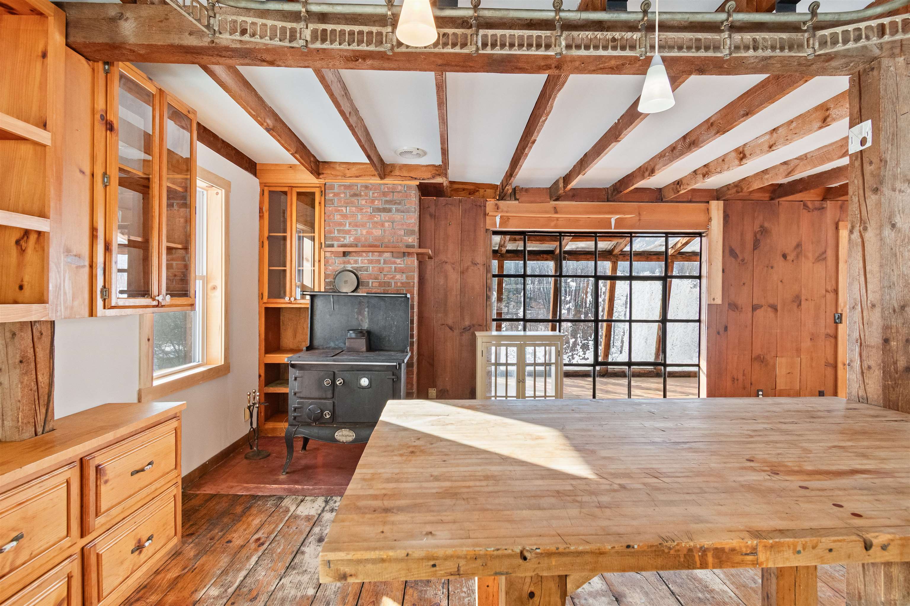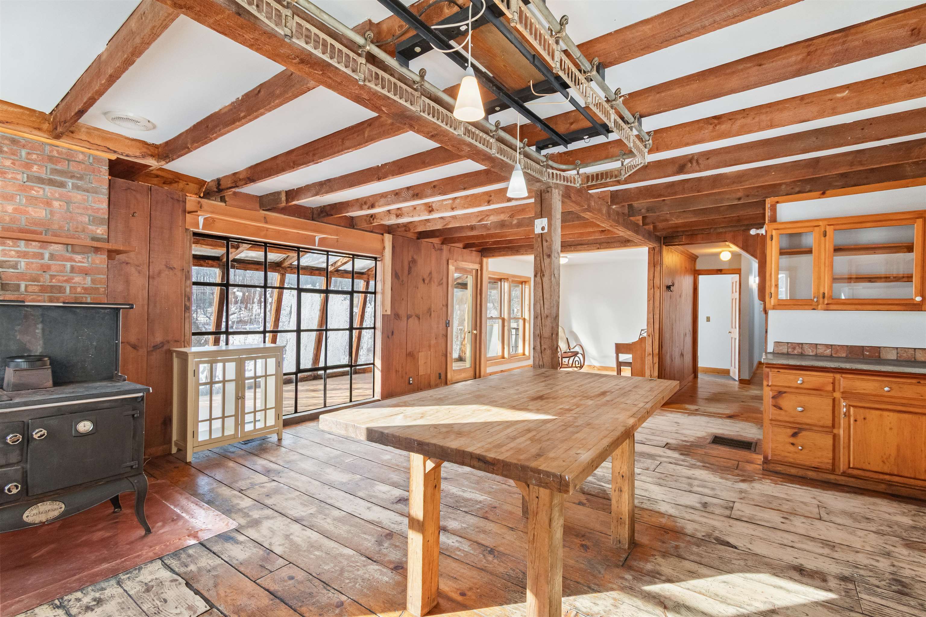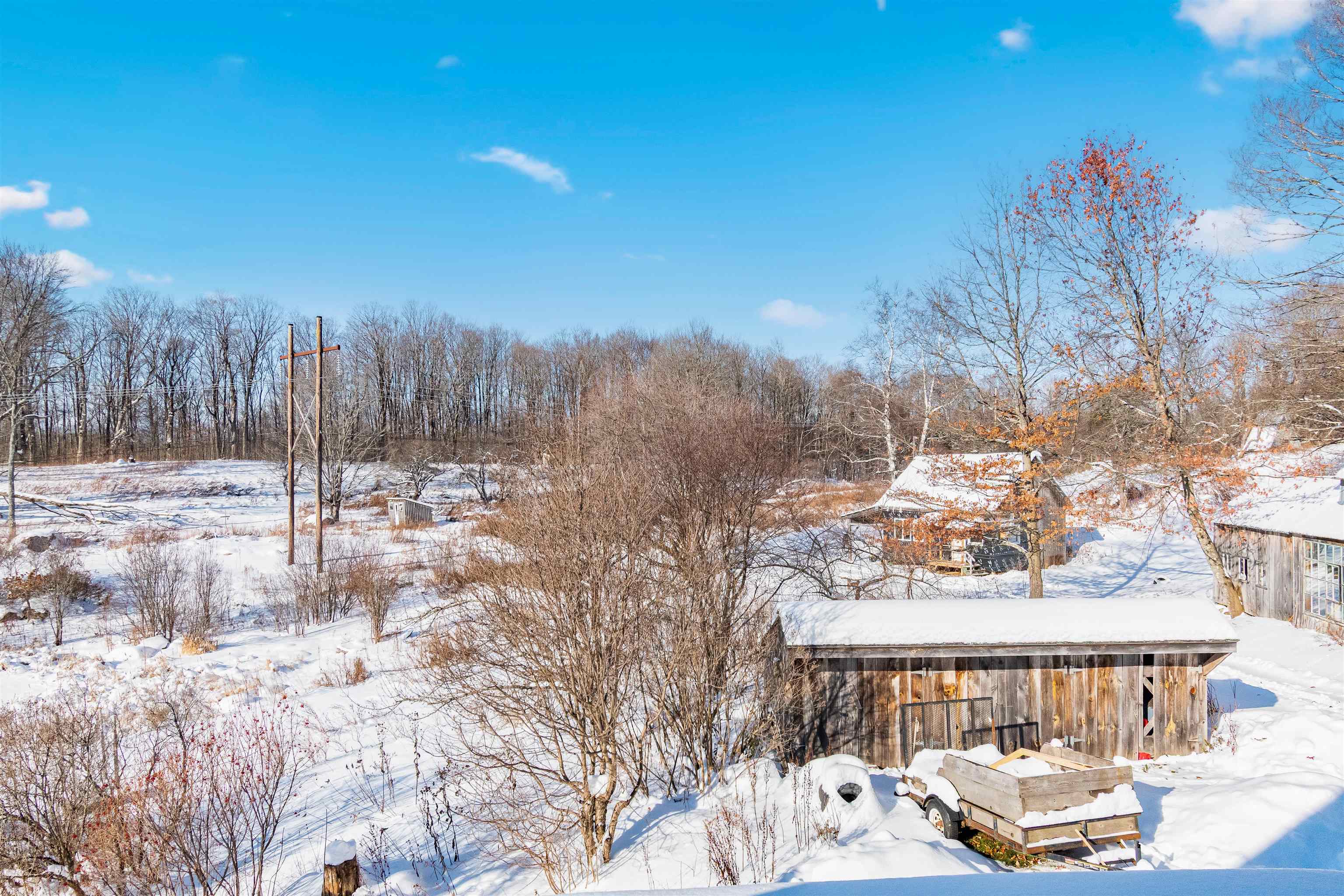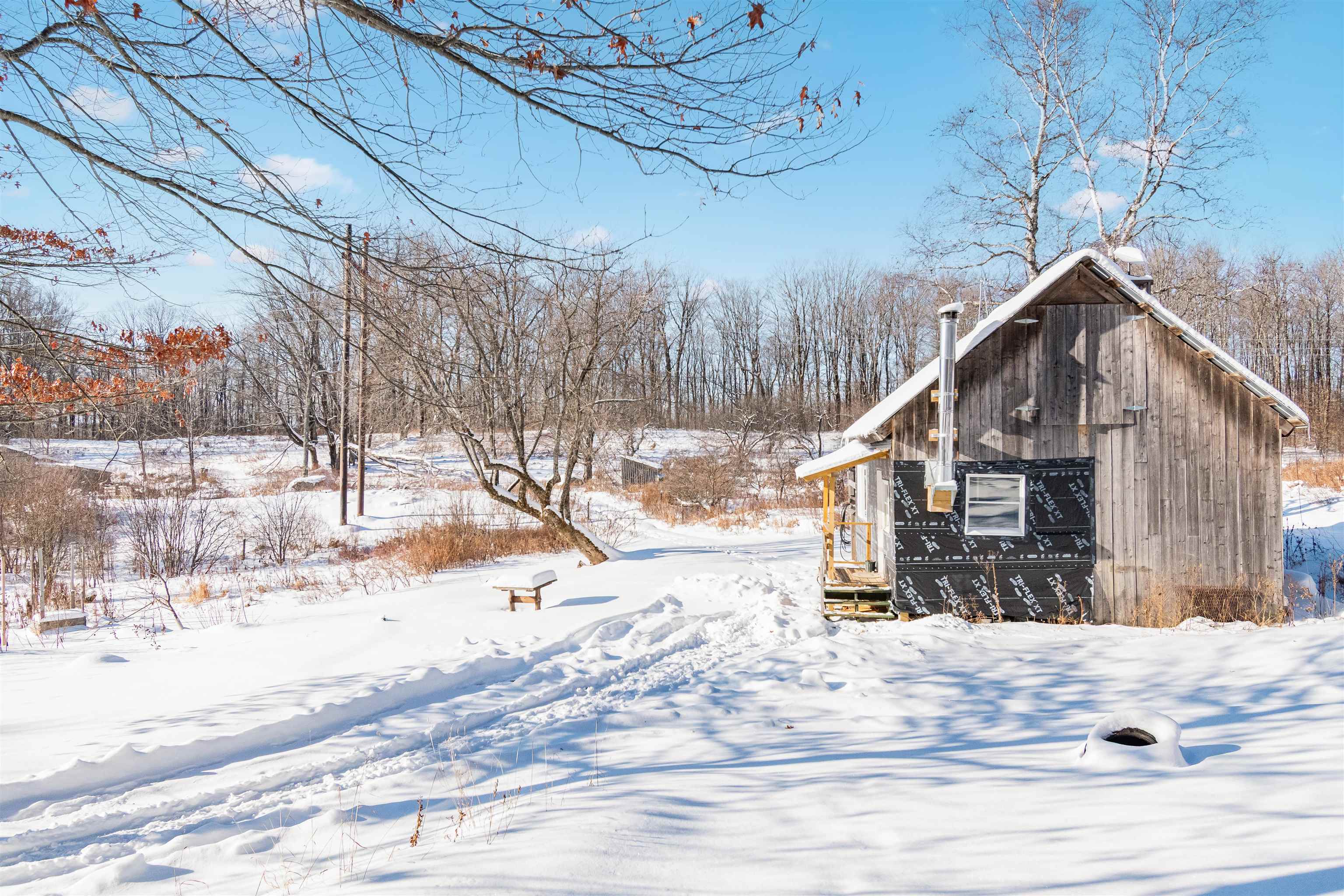 Opportunity awaits at this beautiful nearly 90 acre property tucked at the end of a scenic town-maintained road surrounded by over 300 acres of conserved land. It’s the home of an abundant sugar maple stand with the potential for over 3000 taps, a Sugar House with all of the needed equipment, a 3 bed 2 bathroom contemporary cape-style home, a rustic camp with kitchenette, hot water, and heated by a wood stove. Beyond these are two pole barns, various garden and storage sheds, a little A-frame bunkhouse, and acres of trails. The home itself has a large open concept kitchen, dining, and living room, with a long greenhouse style sunroom welcoming abundant natural light overlooking the pond and cleared pasture space beyond. The home has a bedroom and 3/4 bath with shower on the first floor, and two larger bedrooms and a small bathroom with a claw foot tub on the 2nd floor. Off the first floor is a 25 x 11 workshop and storage room heated by a woodstove. Besides the sugaring potential, this property had an abundant organic garden that can easily be brought back and expanded on. There are over 25 mature blueberry bushes, red and yellow everbearing raspberries, a peach tree, a sour cherry, three pear trees, and many old apple trees. During spring and summer, the home is still surrounded by many perennial and medicinal flowers and shrubs, such as comfrey, peonies, phlox, purple and white lilac, hydrangeas, a cranberry bush, several kinds of daffodil, crocus, and hostas to name a few.