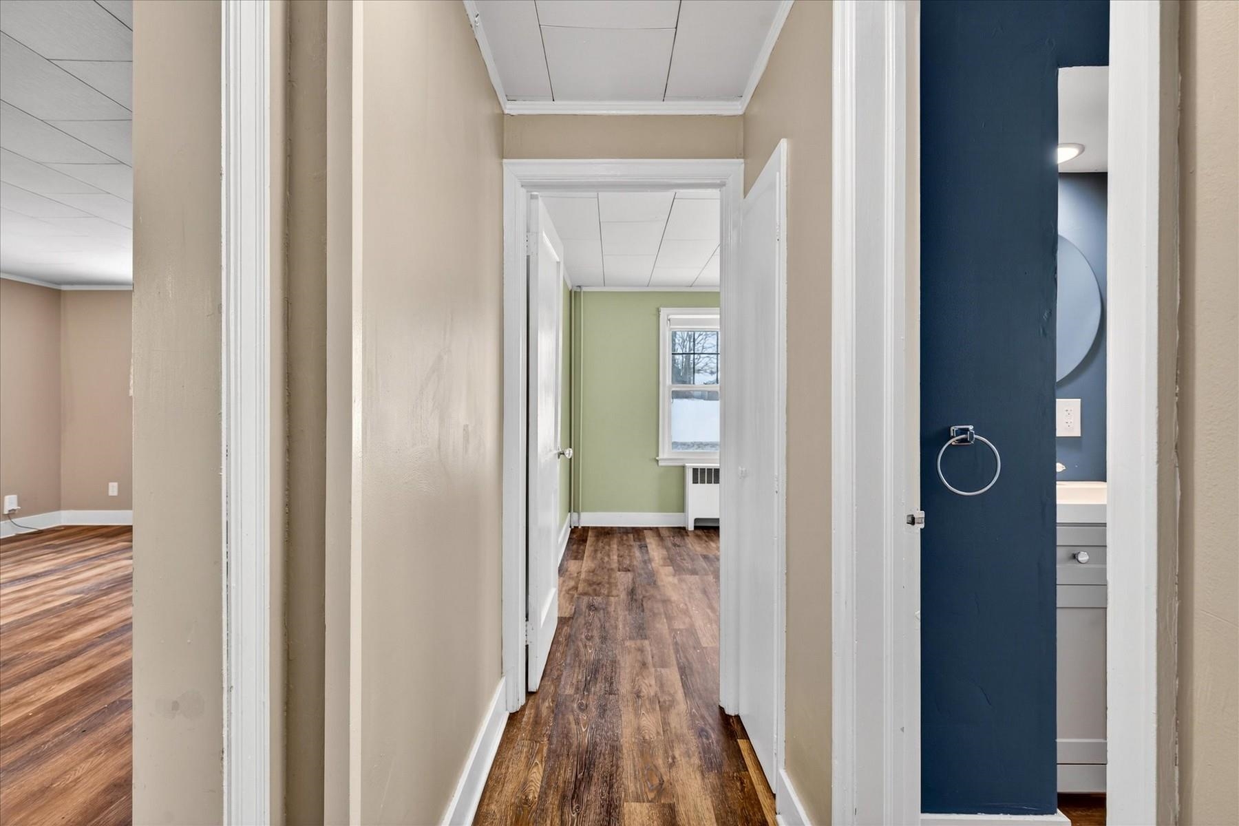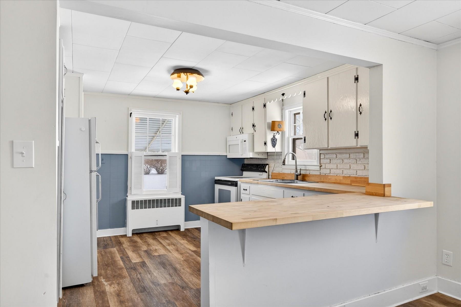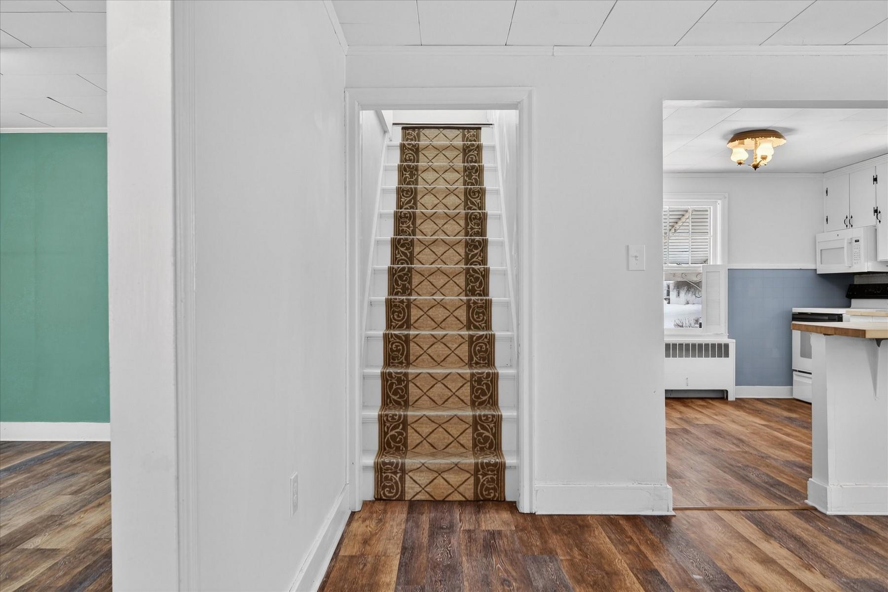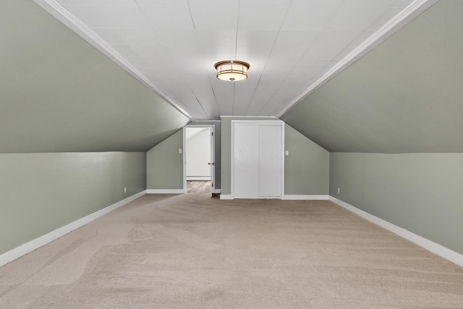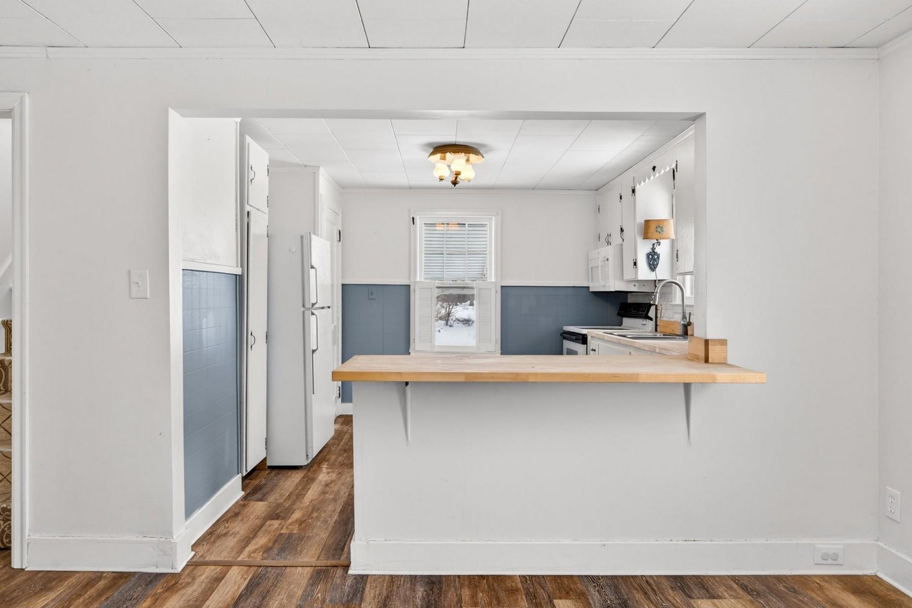 Circa-1940s bungalow offering comfortable living spaces, updated mechanicals, and a level one-third–acre city lot. This home has seen thoughtful cosmetic updates in recent years, including new butcher block kitchen countertops, new flooring, a refurbished full bathroom, and a fully repainted interior. The open kitchen features solid wood cabinetry and a breakfast bar overlooking the dining area, creating an easy, connected layout. A large, comfortable living room provides the perfect place to relax or gather. A bonus room off one bedroom offers flexible use as a home office, nursery, playroom, or an exceptional walk-in closet. The expansive second-floor bedroom includes new carpeting, a landing spacious enough for a desk or reading nook, and excellent attic storage with potential for future expansion. The full basement offers laundry, storage, and multi-purpose space ideal for a home gym or hobby area. A newer Buderus boiler provides reliable, efficient heating for years to come. Enjoy a covered deck that offers protection from winter weather and a shaded retreat in the summer, with easy access to the backyard. A brand-new shed provides convenient storage for tools and equipment. Located near Pine Hill Park, with 16 miles of trails for mountain biking, trail running, and hiking, and close to city parks, playgrounds, downtown, and a wide range of recreational activities.
