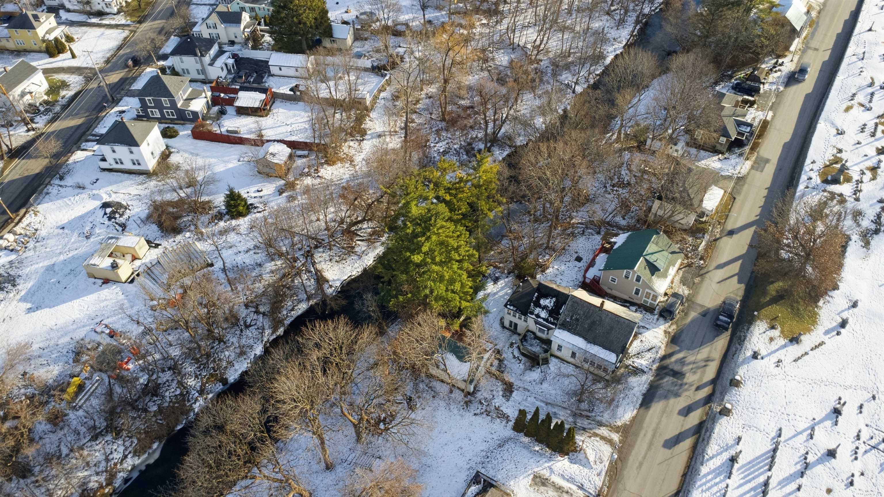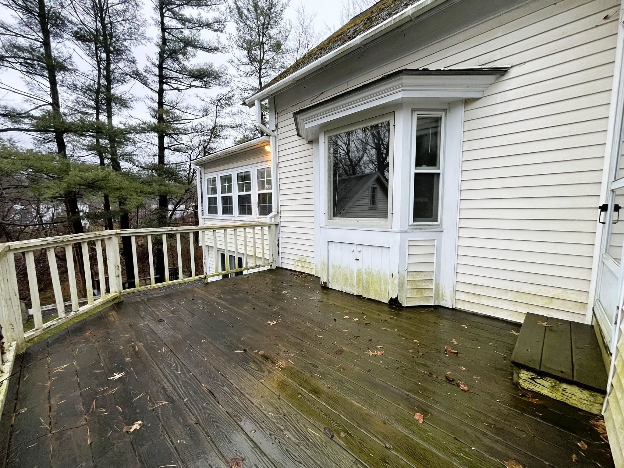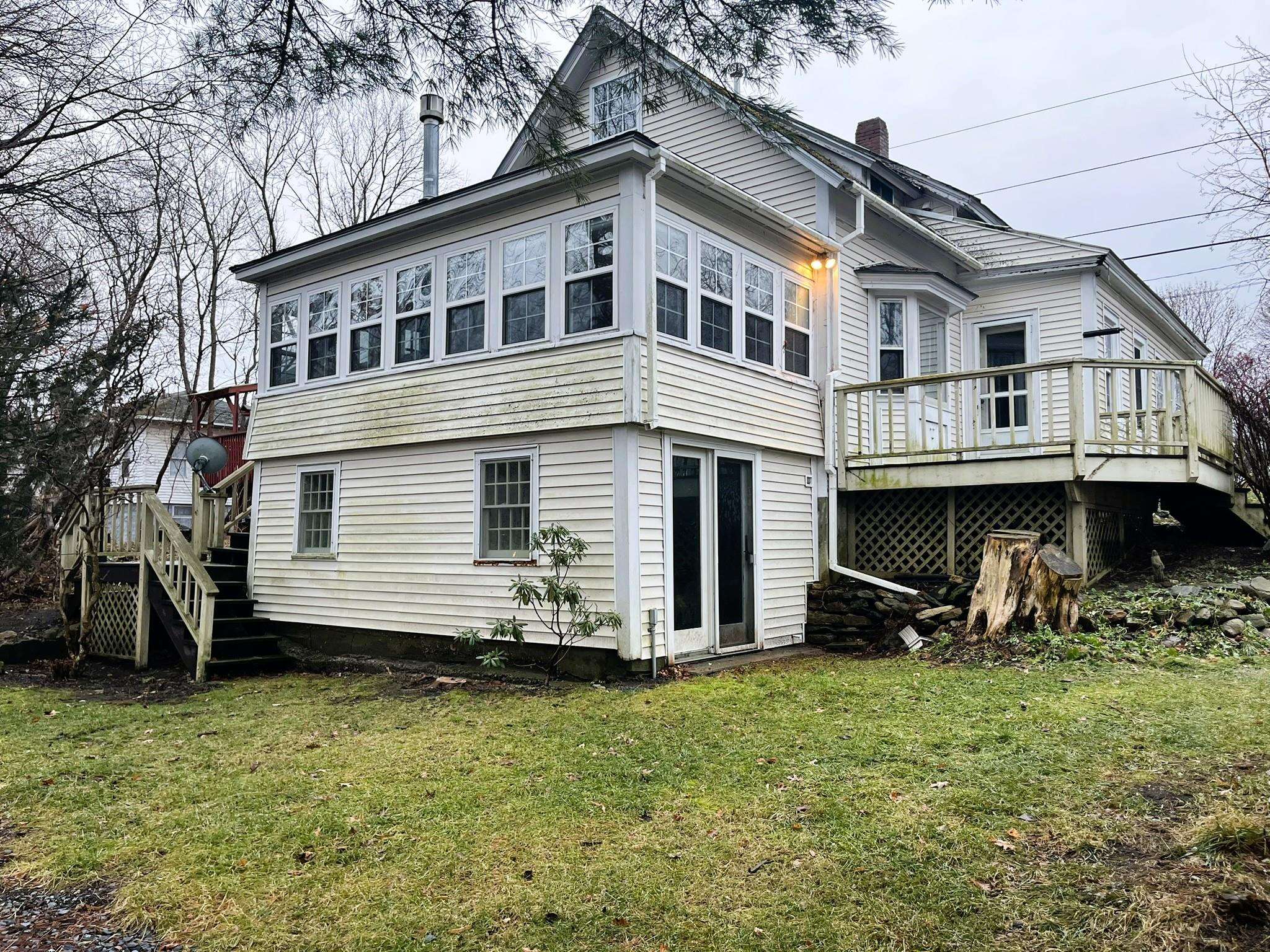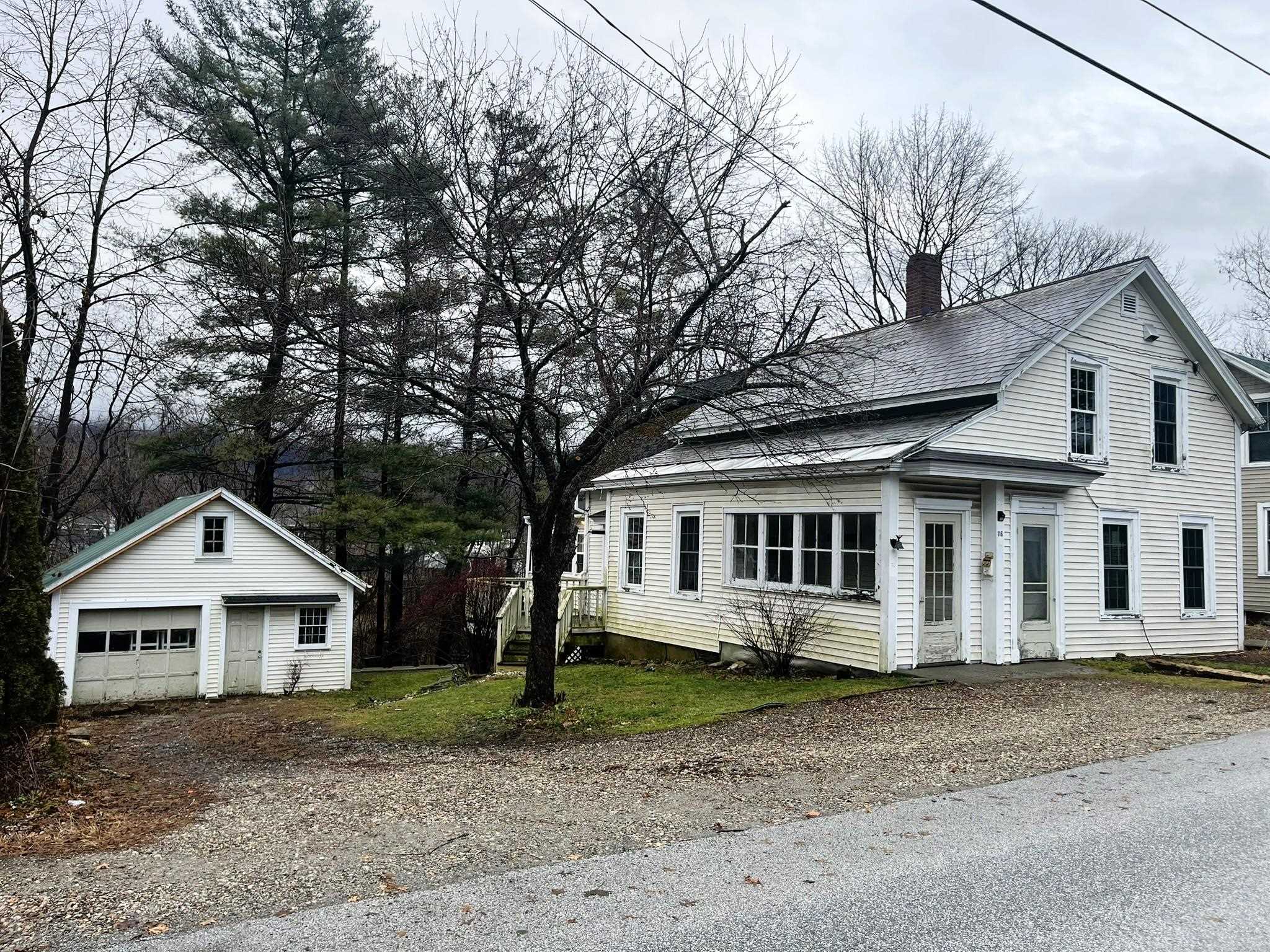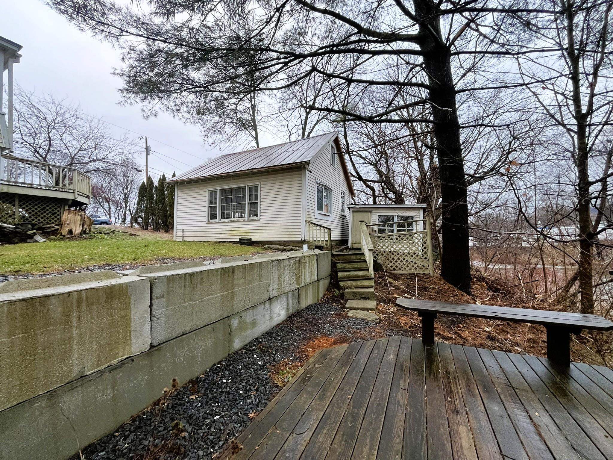 Affordable housing on your holiday wish list? Look no further. This charming home—originally built as a single-family residence—offers generous space, character, and flexibility to meet a variety of needs. The current layout reflects a long-ago duplex conversion, but by reopening a now-closed interior door, it can easily function again as a cohesive single-family home. The main level offers two bedrooms, a full bath with classic wainscoting and pedestal sink, kitchen with breakfast bar, dining room with hardwood floors, and a spacious living room with a gas stove and peaceful views of the South Stream. Upstairs is another large bedroom with generous closet space, full bath with a brand-new toilet, second kitchen with glass-front cabinets, and an office with tree-house vibes. Laundry hookups are available on both levels, with a washer and dryer included upstairs and space for a stacked unit on the main floor. The dry basement with poured concrete floor provides ample storage and includes a walk-out workshop. Additional features include town water and sewer, forced hot air furnace and oil tank, separate electric meters and hot water tanks, and a detached two-car garage with attic storage, plus an additional shed. Enjoy two wood decks, a level backyard, and a newly installed concrete retaining wall. Set high above the riverbed and not in a flood zone, the home offers river views with peace of mind. A versatile property with charm, space, and value—schedule your showing today!