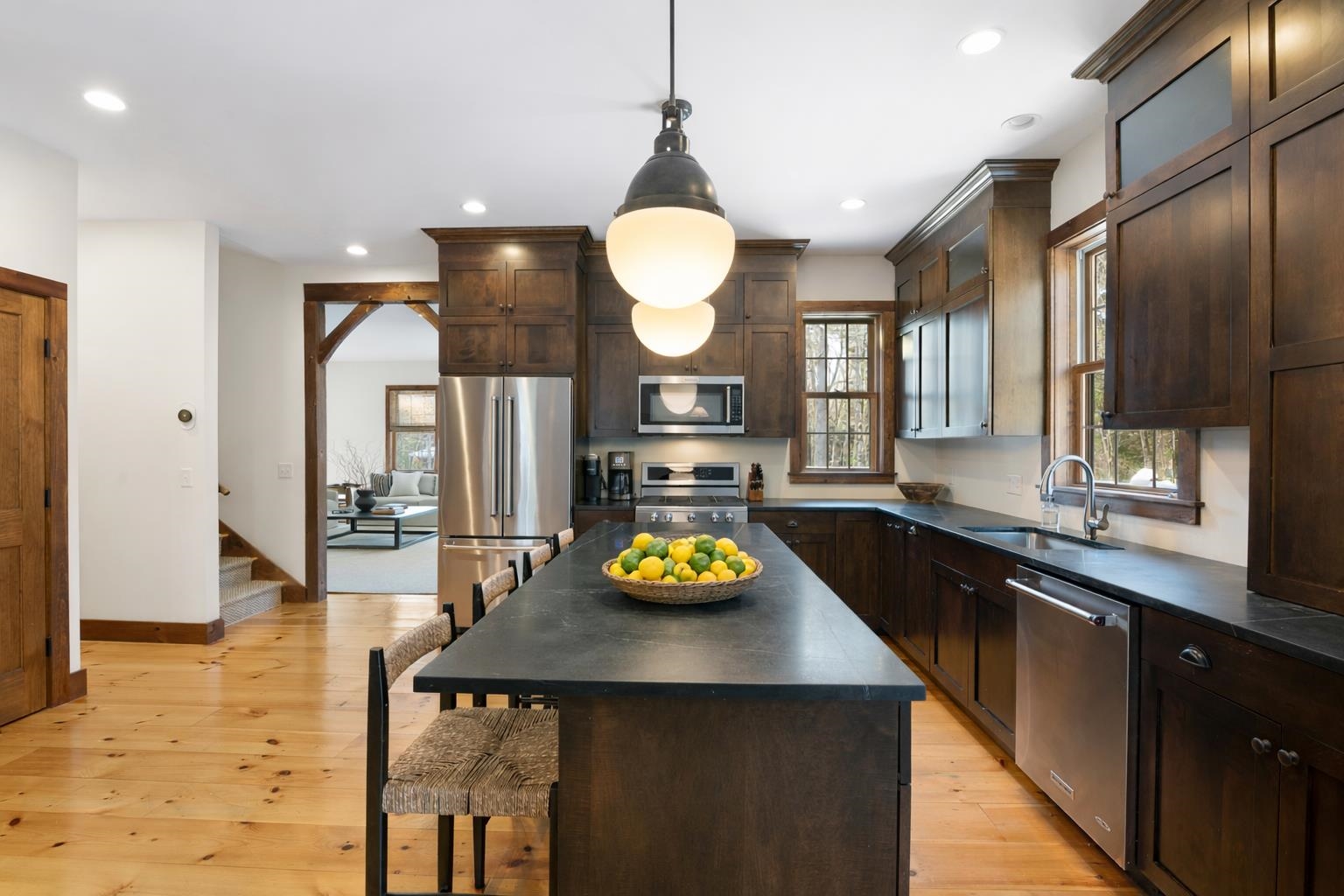 11 East Village Circle, a beautifully maintained mountain home adjacent to The Hermitage Club in Wilmington, Vermont. This 4-bedroom, ( bonus sleeping room) 6-bath retreat offers a perfect blend of Vermont craftsmanship and modern updates, ideal for year-round living or a turnkey mountain getaway. The open-concept living space features wide-plank wood floors, a stone fireplace, and a well-designed kitchen with generous island seating perfect for gathering after a day outdoors. The home has been recently refreshed with interior and exterior paint, a newly installed septic system, and is being offered with new, well-appointed furnishings, and custom rugs allowing for an easy, move in ready experience. A dedicated bunk room and multiple living areas provide flexible space for family and guests, while the direct-entry two-car garage offers convenient storage for all your mountain gear. Enjoy direct access to snowmobile and hiking trails, with The Hermitage Club, Mount Snow, and historic downtown Wilmington just minutes away. An exceptional opportunity to own a thoughtfully updated, turnkey home in one of Southern Vermont’s most desirable mountain locations.