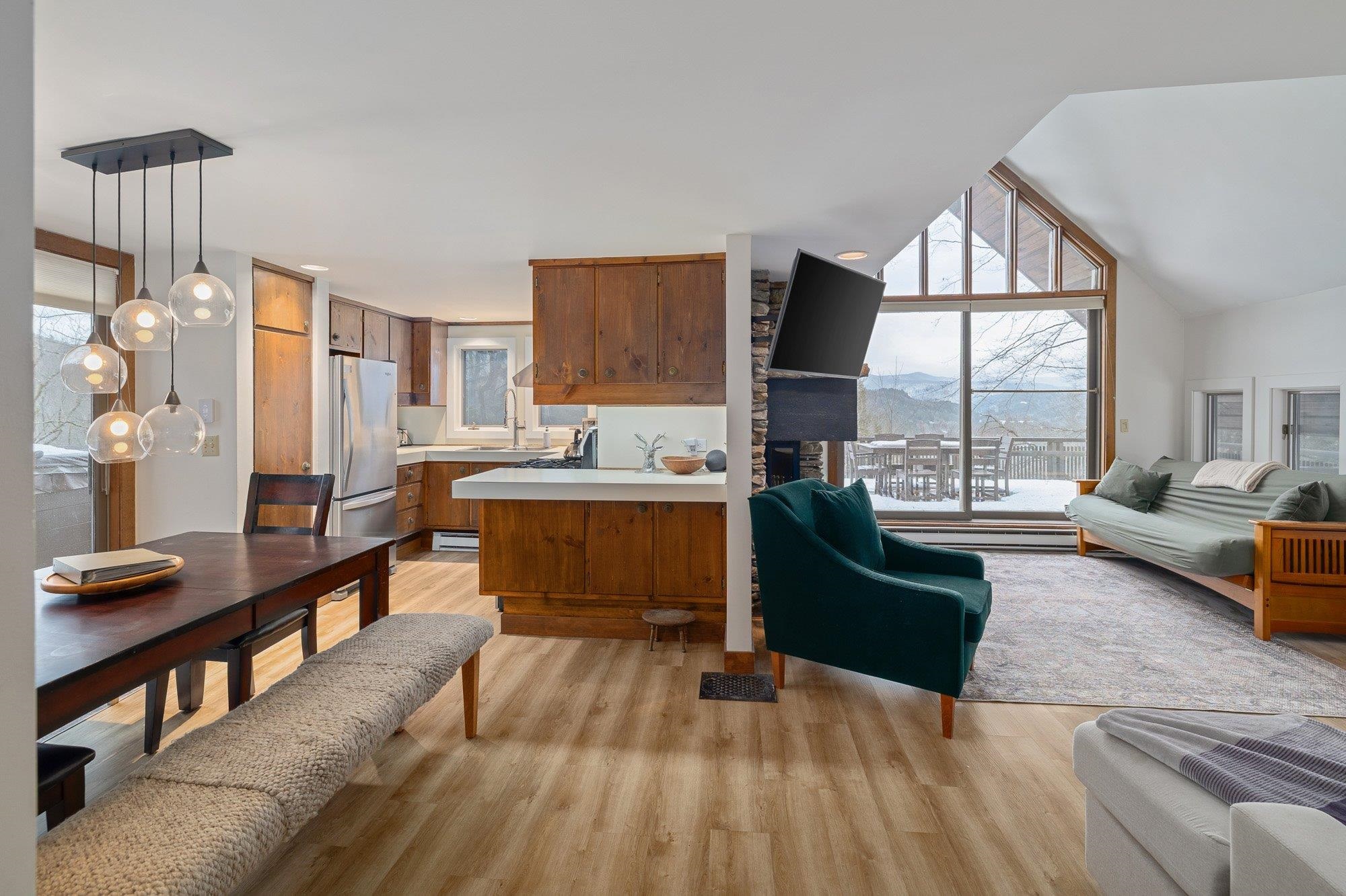 This architectural gem is perfectly positioned among dramatic rock ledges and a lush forest canopy, offering phenomenal southern valley views that define the iconic Hawk lifestyle. Inside, a light-filled retreat showcases vaulted ceilings, rich natural woodwork, and a striking floor-to-ceiling fieldstone fireplace—ideal for après-ski gatherings and cozy mountain evenings. A massive wrap-around deck captures sweeping mountain vistas and unforgettable sunsets. Truly move-in ready, the home features a new roof, fresh paint, updated flooring, designer lighting, and a whole-house generator for year-round peace of mind. High-speed fiber internet supports work-from-anywhere living, while the $15K Bullfrog hot tub invites stargazing after full days outdoors. Experience Vermont living at its best—Spend winter mornings carving fresh powder at Killington Resort, afternoons snowmobiling the nearby VAST trails, and evenings fireside with friends, and summers filled with golf, hiking, and river swims on the White River. The Timber Hawk community offers tennis courts plus a private beach and picnic area. Sold fully furnished, this turn-key mountain retreat blends adventure, comfort, and effortless access to I-89 in one of Vermont’s most celebrated four-season destinations.