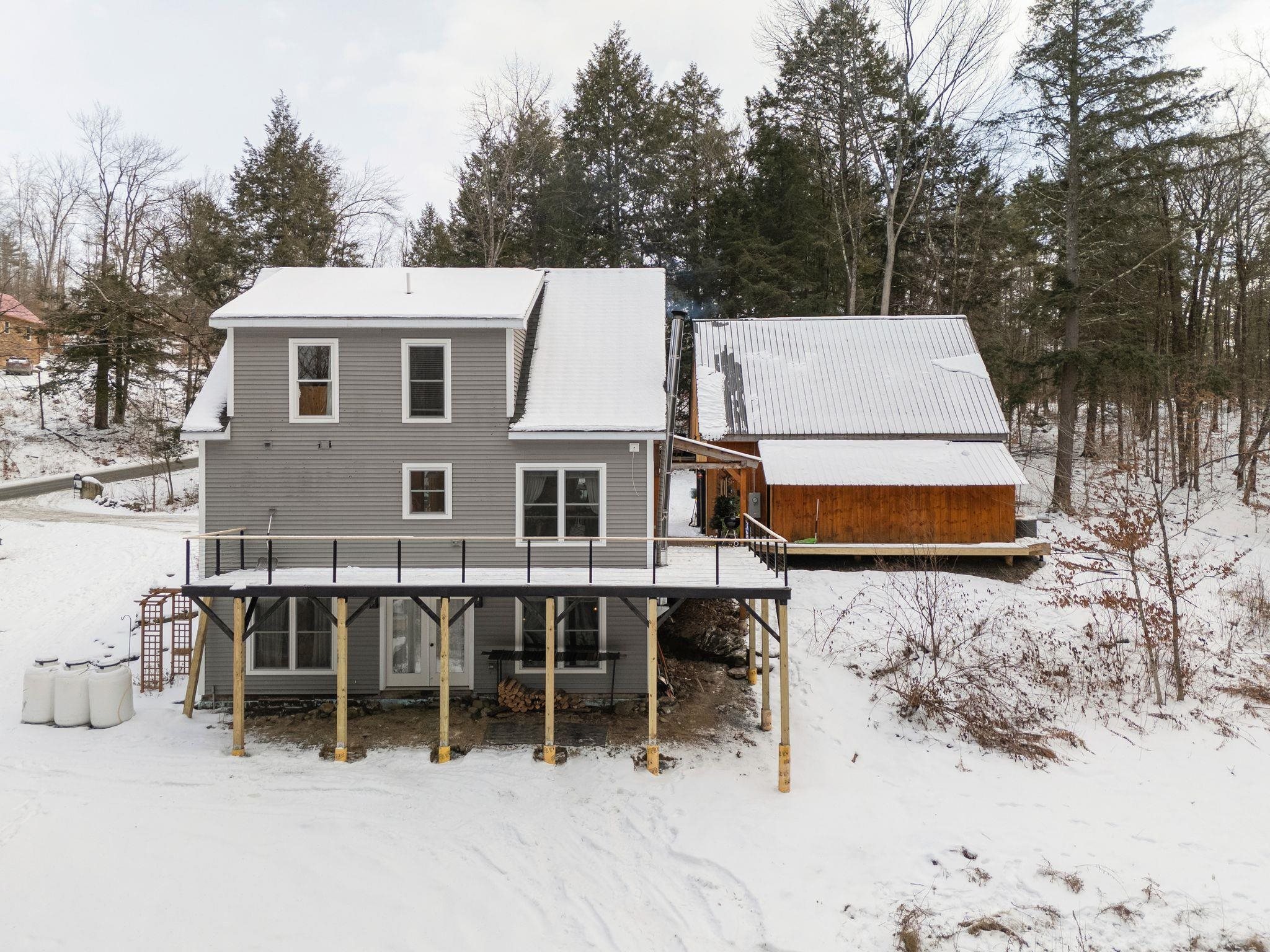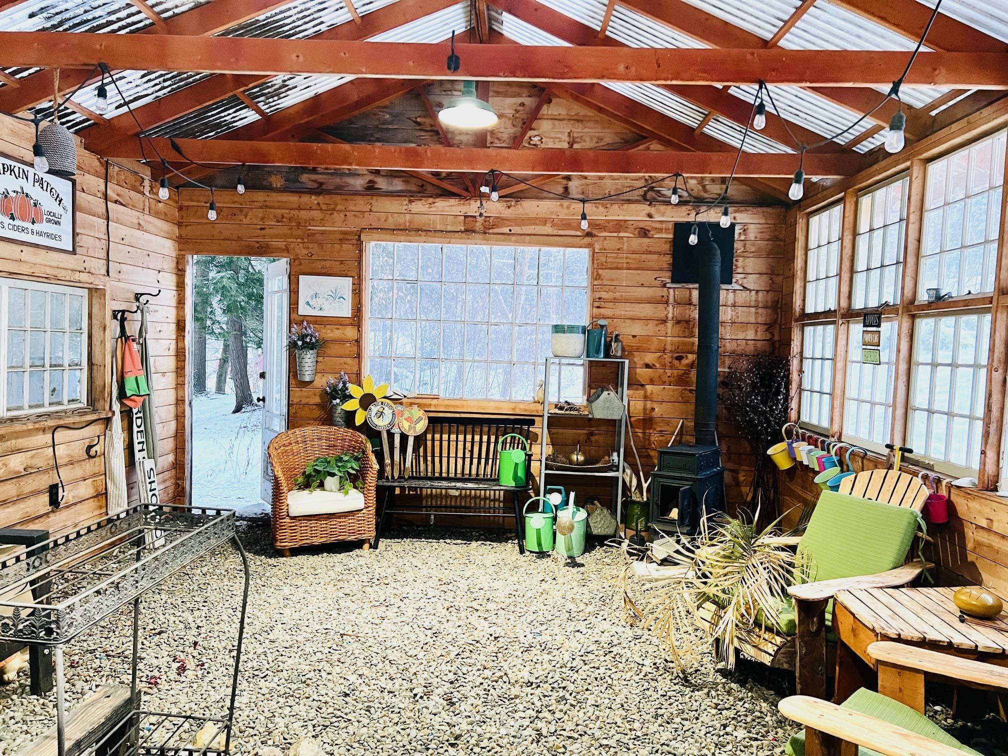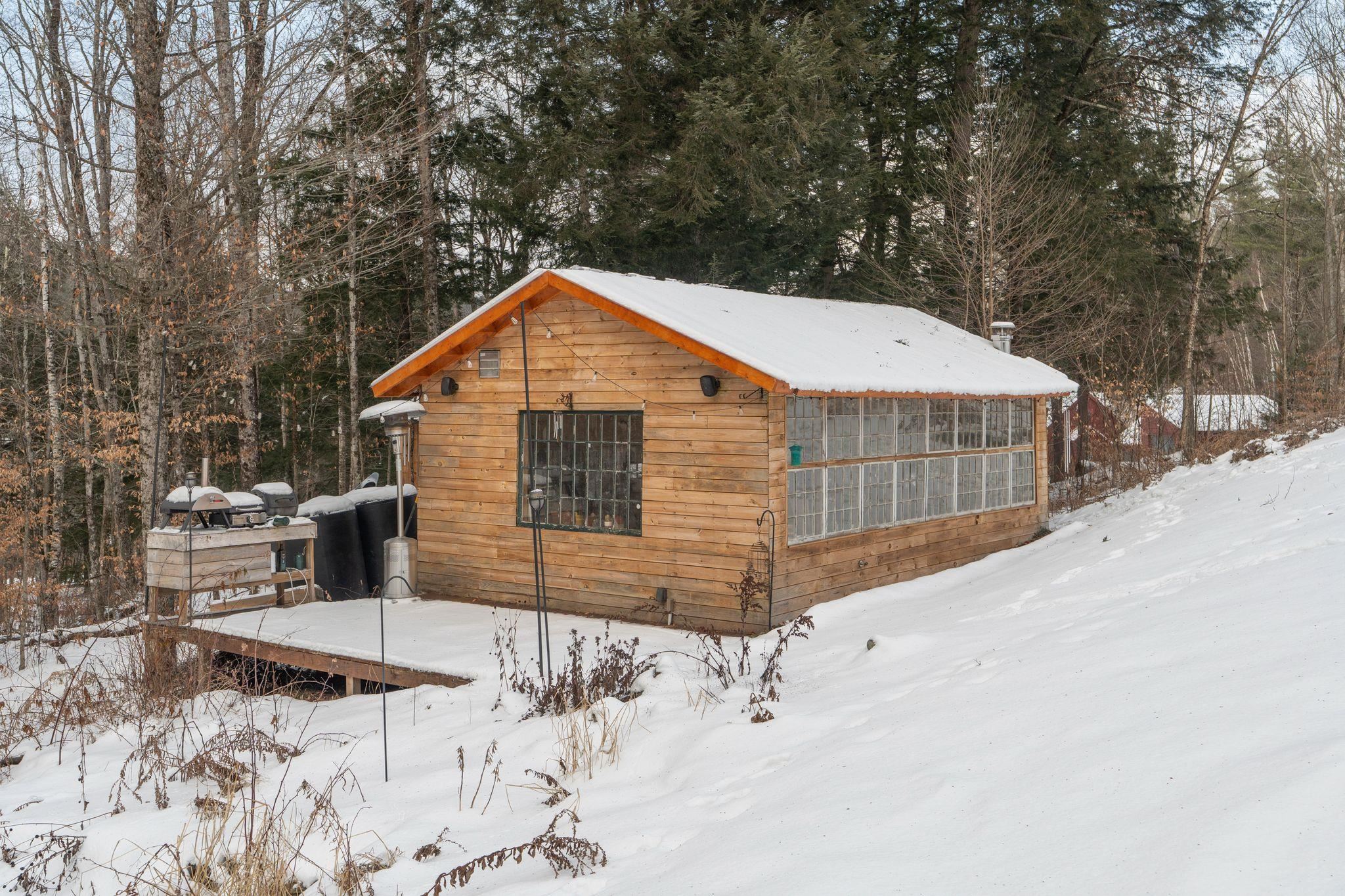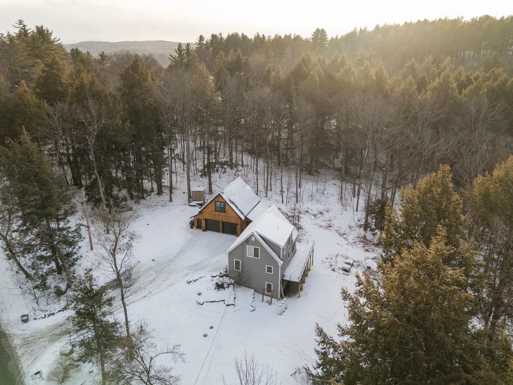 Additional photos forthcoming. Are you looking for your perfect Vermont family home, or a getaway with huge AirBnB potential? Located just outside the bustle of the Upper Valley and close to outdoor activities like ski mountains, hiking, and mountain biking, this house boasts an incredible turn-key value for buyers looking to move in right away or use it as an income-producing property. The kitchen is finished with premium appliances that compliment the open living space accentuated by a vaulted ceiling. Three floors of finished living space overlook picturesque landscaping and mature gardens, along with an oversized heated greenhouse. This is a gardener's dream! The finished two bay garage with high ceilings is topped with a custom furnished theater, with premium sound and drop-down screen. Fourth potential bedroom currently being used a cozy family room, complete with a functional wood stove overlooking backyard. New wrap-around deck installed in Fall 2025. New driveway bluestone with improved drainage laid down, and a quaint Nordic-style detached sauna sits in the tree line. Property comes with most furnishings negotiable.