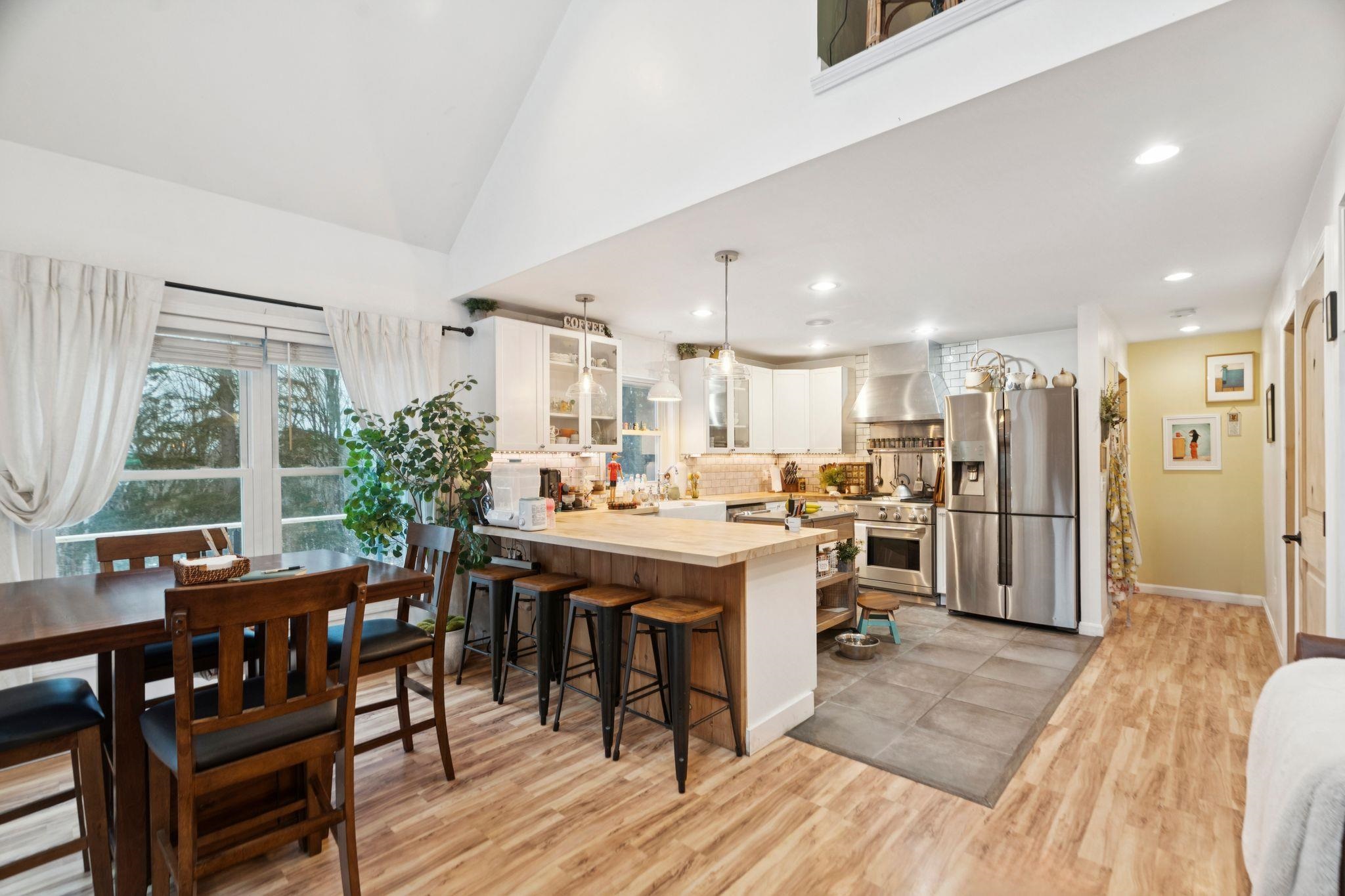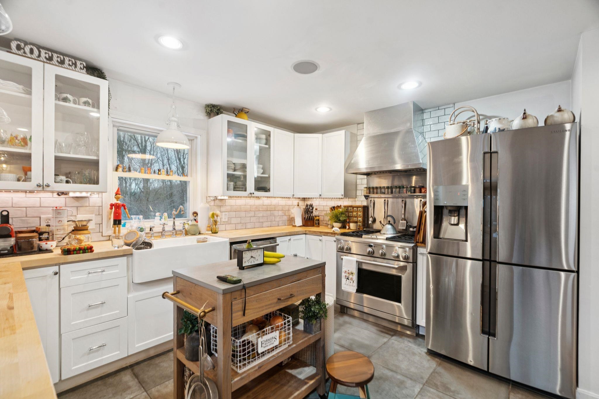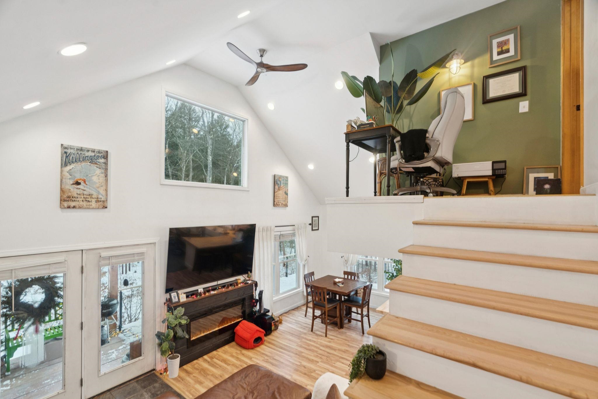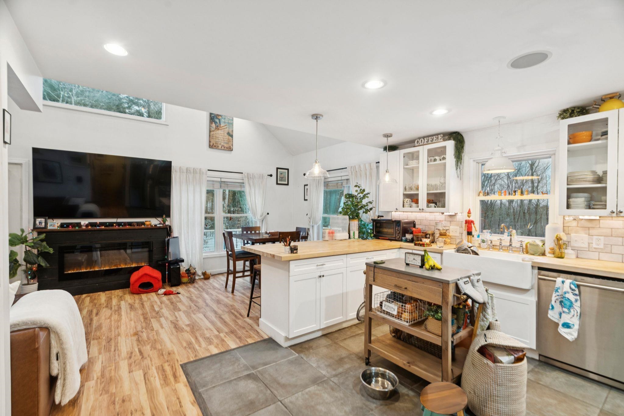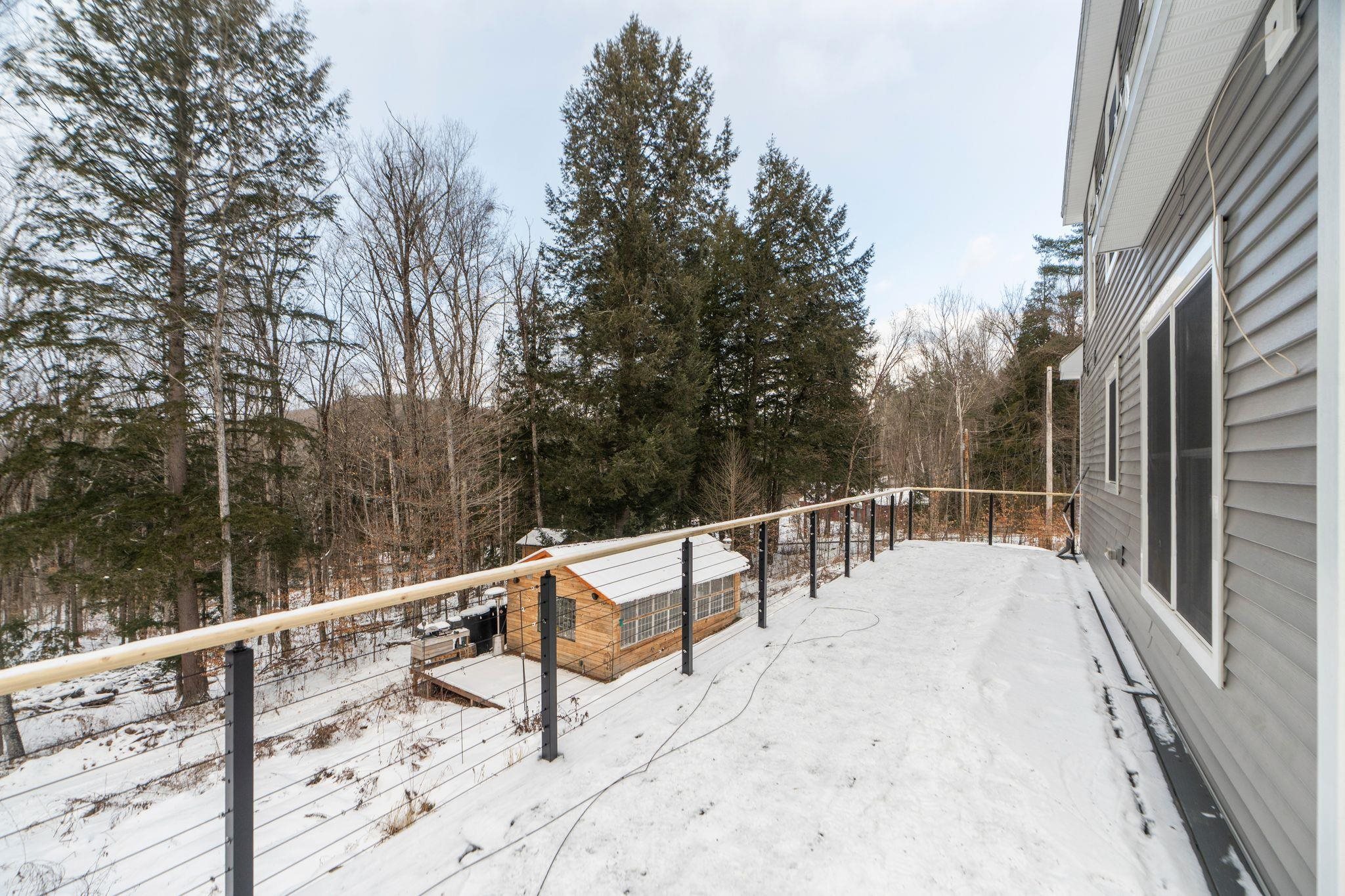 Additional photos forthcoming. Are you looking for your perfect Vermont family home, or a getaway with huge AirBnB potential? Located just outside the bustle of the Upper Valley and close to outdoor activities like ski mountains, hiking, and mountain biking, this house boasts an incredible turn-key value for buyers looking to move in right away or use it as an income-producing property. The kitchen is finished with premium appliances that compliment the open living space accentuated by a vaulted ceiling. Three floors of finished living space overlook picturesque landscaping and mature gardens, along with an oversized heated greenhouse. This is a gardener's dream! The finished two bay garage with high ceilings is topped with a custom furnished theater, with premium sound and drop-down screen. Fourth potential bedroom currently being used a cozy family room, complete with a functional wood stove overlooking backyard. New wrap-around deck installed in Fall 2025. New driveway bluestone with improved drainage laid down, and a quaint Nordic-style detached sauna sits in the tree line. Property comes with most furnishings negotiable.