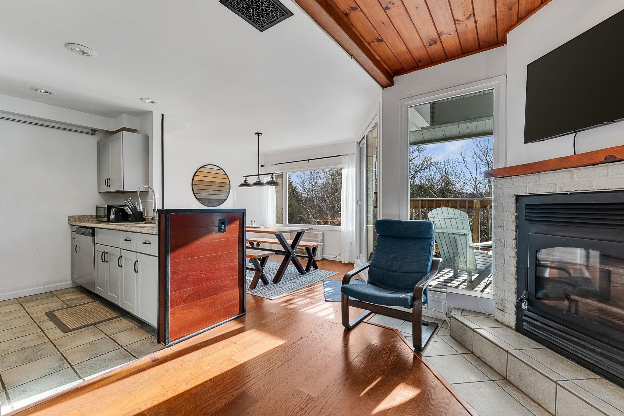 A beautiful light filled, turnkey one bedroom condo at The Bridges, ideally located just a short shuttle ride from the Sugarbush lifts, bringing Vermont’s premier skiing and outdoor adventure right to your doorstep. Thoughtfully renovated with modern comfort and design in mind, this unit features an updated kitchen with stainless steel appliances, stylish new flooring, and fresh paint throughout, creating a bright and welcoming space. The convenient mudroom offers ample, well organized storage for skis, bikes, boots, and seasonal gear, making every transition from mountain to home effortless. Upstairs, the peaceful bedroom invites cozy retreats, while multiple reading nooks and versatile living areas add charm and flexible use, perfect for relaxation, work from home days, or hosting guests. Relax by the fireplace with serene wooded views or step out onto your private deck to enjoy morning sunlight or evening starlight. Designed to capture abundant natural light and the tranquility of its wooded setting, this condo has also been used as a successful short term rental, offering excellent income potential. Whether you are seeking a full time residence, weekend getaway, or investment opportunity, this property offers exceptional flexibility for both long term and short term use. The Bridges offers an outstanding array of year round amenities including indoor/outdoor pools, hot tubs, tennis courts, fitness facilities, and more, delivering a true four season lifestyle.