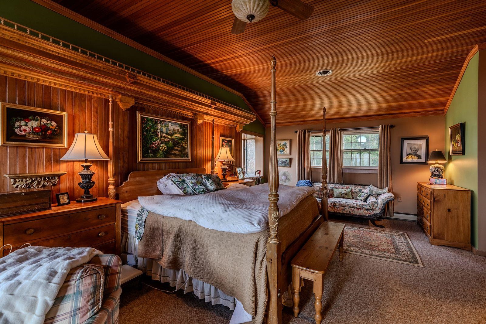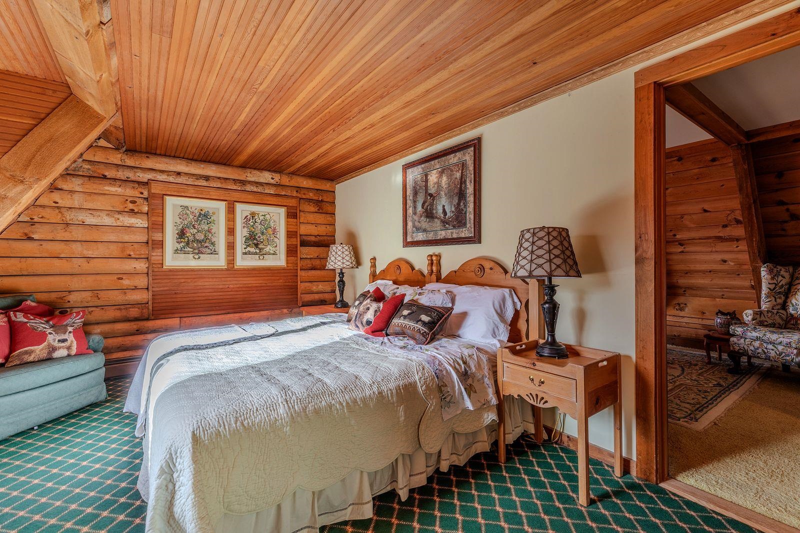 One-of-a-kind, craftsman-built Vermont log home set on over 26 private acres with breathtaking, long-range mountain views. Tucked away at the dead end of the road, this exceptional property offers rare privacy while remaining close to premier ski mountains and all the dining, shopping, and cultural attractions of Manchester, VT. The land features two picturesque waterfalls and a serene natural setting that feels worlds away. The home showcases expansive windows that flood the interior with natural light, highlighting warm wood tones and timeless craftsmanship throughout. Enjoy outdoor living from the inviting covered front porch or the back deck with pergola—perfect for entertaining or relaxing in nature. Inside, you’ll find three wood-burning fireplaces, a spacious game room with bar, sauna and thoughtfully designed living spaces ideal for gatherings or quiet retreats. A three-car garage provides ample space for vehicles and storage, and the home is equipped with an automatic generator for peace of mind and uninterrupted comfort. A truly special Vermont escape. Furnishings may be purchased separately.