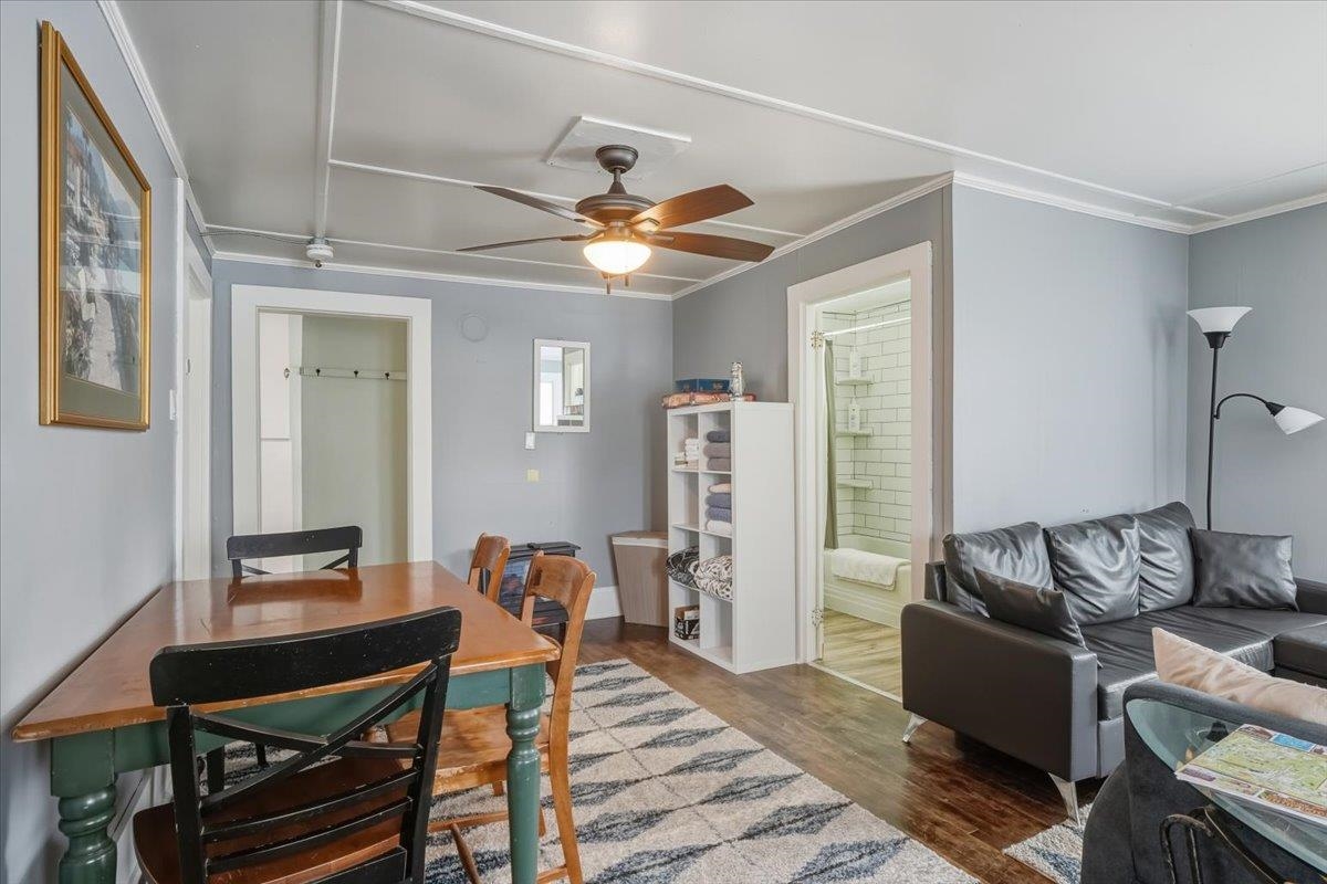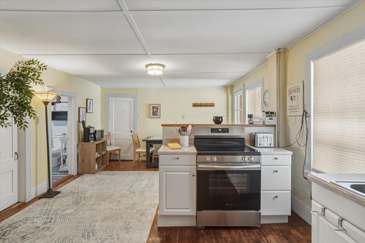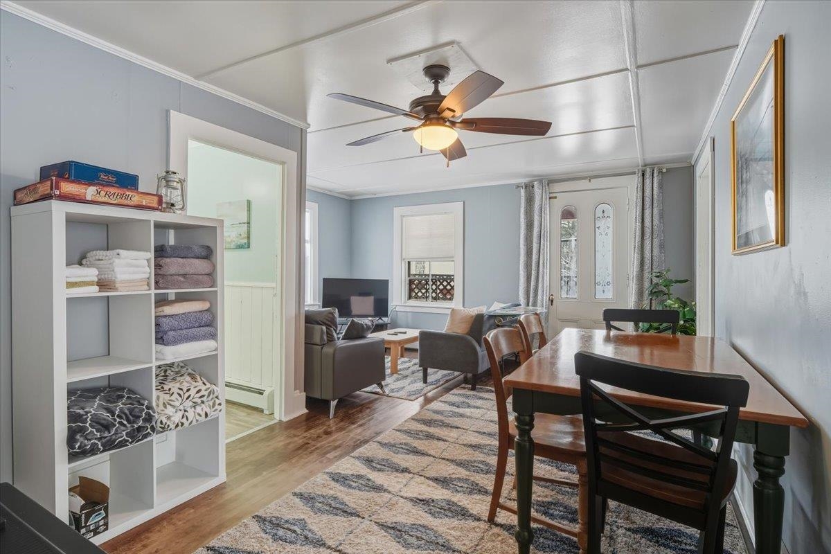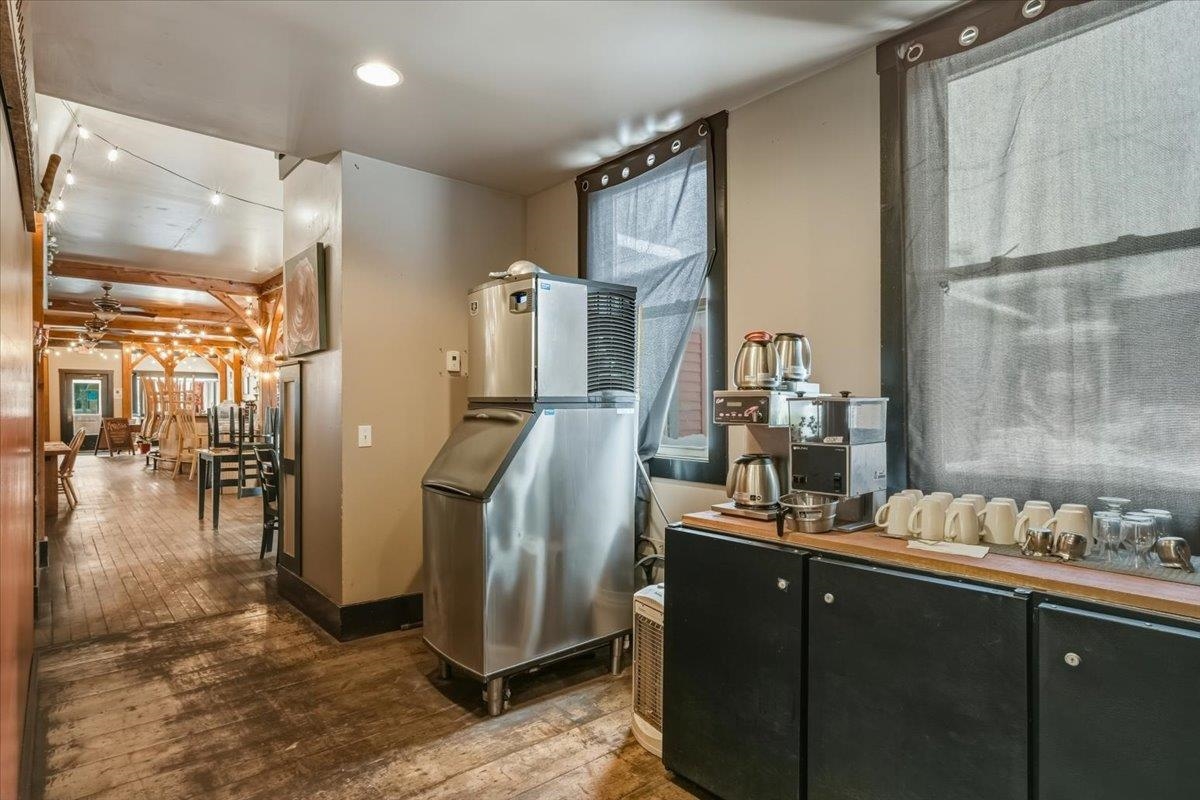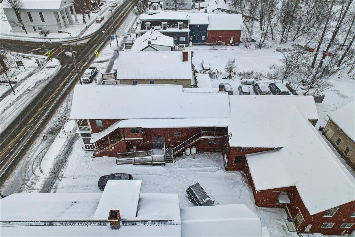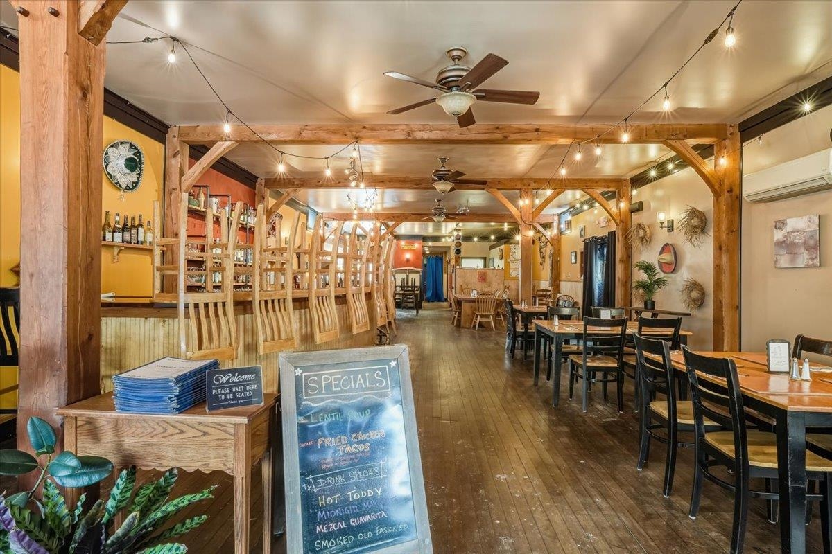 Rare mixed-use investment opportunity in the heart of downtown Johnson. This well-located property offers multiple income streams, strong tenant appeal, and long-term value in a growing commercial corridor. Sale includes the real estate only—the existing restaurant business, name, and equipment are not part of the offering. The main level features a flexible commercial space currently leased and operated as a restaurant, with dining area and existing kitchen infrastructure in place. This provides immediate rental income for the new owner while preserving options to maintain a food service tenant or adapt the space for another commercial use. With street-level visibility, steady pedestrian traffic, and close proximity to the Vermont Studio Center and Northern Vermont University, the location benefits from a built-in customer base. The upper level includes two 2-bedroom apartments, ideal for annual leases, student rentals, or short-term stays, with consistent demand from the local art community and student population. An additional workshop/storage area creates another income opportunity, whether leased to a local maker or used for tenant storage. Johnson is an Opportunity Zone community actively working to expand its commercial core and attract new investment. With income diversity across commercial space, residential rentals, and auxiliary storage, this centrally located property offers a solid foundation and strong upside potential.