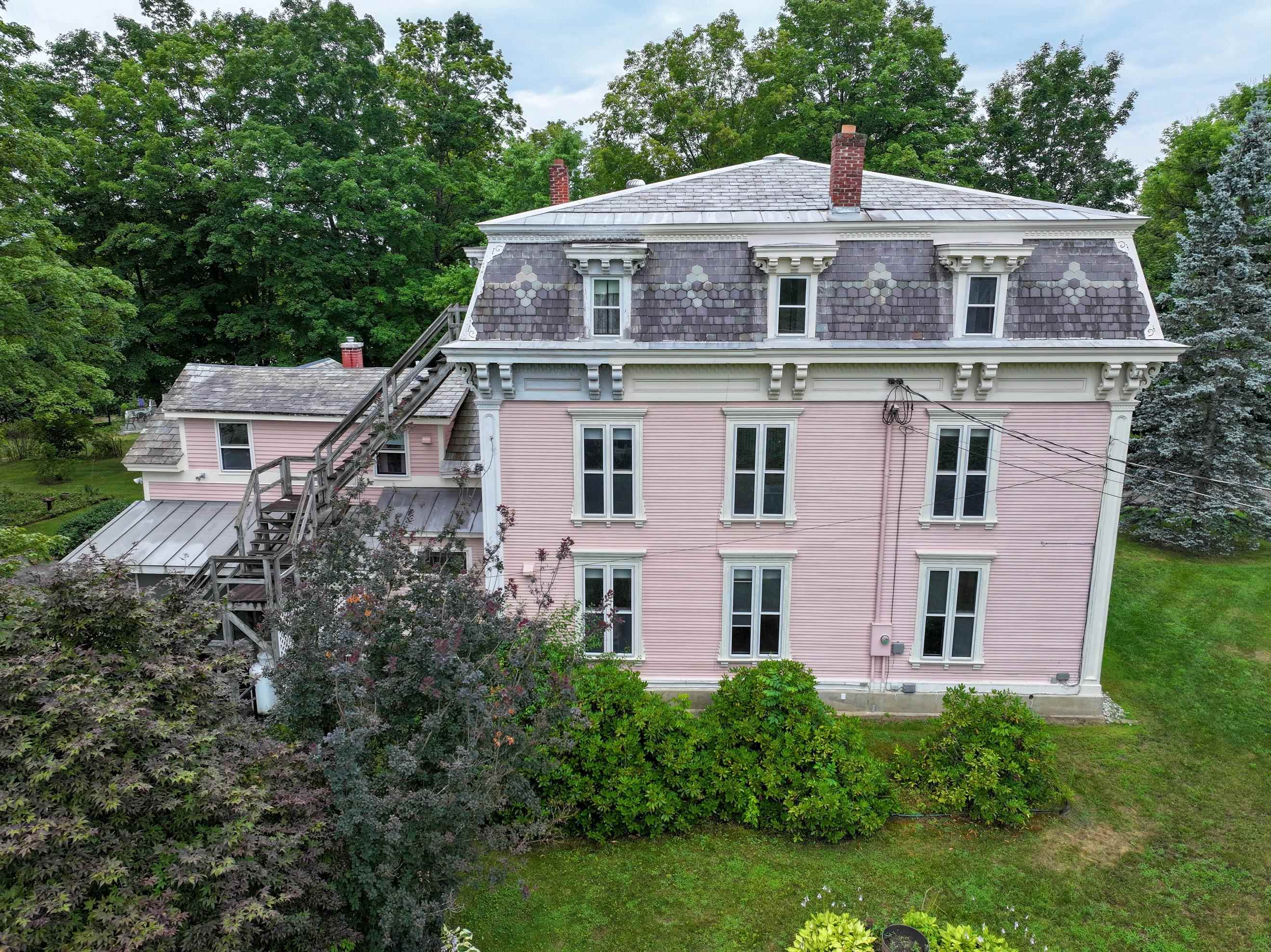 This impressive and generously sized Victorian residence, located in the heart of Brandon, Vermont’s celebrated artist community, offers a rare opportunity for those seeking space, charm, and versatility. Thoughtfully updated to blend classic architecture with modern comforts, this home features an expansive layout with 9 spacious bedrooms, 6 bathrooms, and over 5,000 square feet distributed across three levels. The property’s history as a successful bed and breakfast, with all the associated infrastructure including an integrated fire alarm system, highlights its commercial potential. Large guest rooms and private baths are ideal for hosting guests, multi-generational living, or even business retreats. Zoned within the Village District, the home offers flexibility for both residential and commercial prospects. Among its many features are two efficient heat pumps for year-round climate control, a well appointed kitchen, separate living quarters for privacy or rental opportunities, and a beautifully landscaped 0.85 Acre lot filled with mature trees and plantings. Ample paved parking supports gatherings or events. A prominent two-story carriage barn enhances the property, providing covered vehicle storage, a sizable workshop, and an expansive storage loft - perfect for storage or potential conversion. Well-maintained and move-in ready, this exceptional property presents a unique blend of historical elegance, practical amenities, and endless potential for its new owners.
