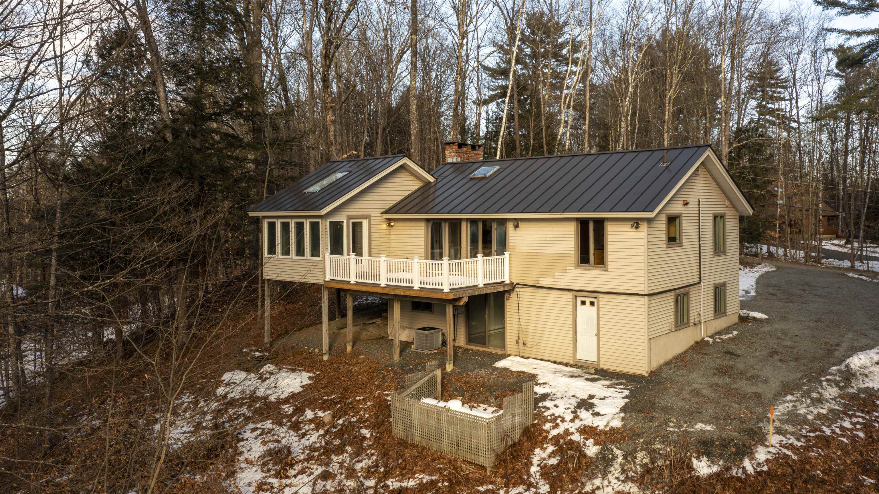 This inviting bi-level home blends comfort, character, and thoughtful updates in a bright, light-filled setting. Cathedral ceilings with decorative beams create an immediate sense of openness, complemented by hardwood floors throughout the main living space. The open-concept layout is anchored by a dramatic floor-to-ceiling brick fireplace with a handsome wood mantle, ideal for everyday living and entertaining. This four-bedroom, two-bath home truly maximizes space. The lower level features a large family room, three bedrooms, a full bath, and a dedicated laundry room. All lower-level rooms enjoy natural daylight and benefit from multiple exterior entrances, creating exceptional flexibility for guests, home offices, or extended living arrangements. With a southwesterly exposure, the home is filled with natural light throughout the day. A sunroom offers versatile additional living space and doubles as a game room with its own propane heating unit. A newly built deck with low-maintenance Trex decking is ideal for outdoor dining, relaxing, or hosting guests. A new front portico enhances curb appeal and provides a welcoming, covered entry. The updated kitchen features black granite countertops, stainless steel appliances, and black hardware. Forced-air cooling services the top floor. Set on a one-acre lot with elevation and potential views, the property offers privacy, with a protected greenbelt bordering the rear. A home that lives larger than it appears.