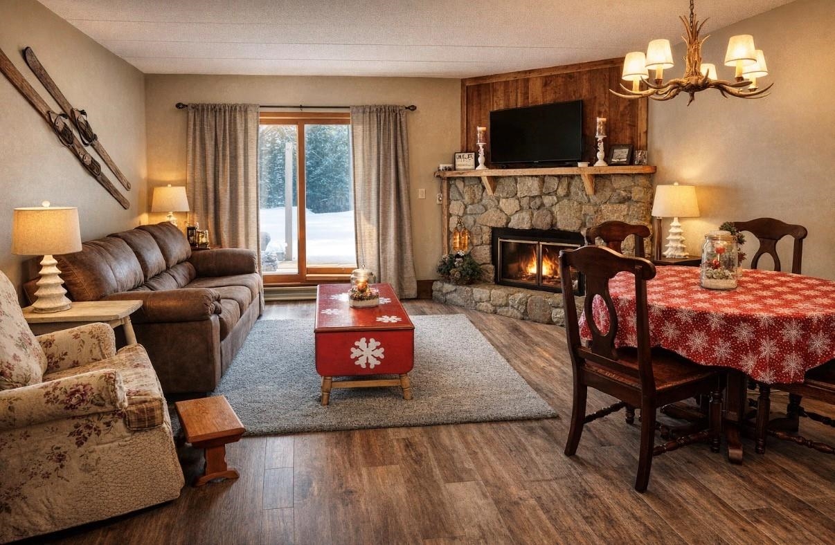 Showings to start 1/12/26. The special assessment on this unit has been paid in full! Don’t miss out on this incredible opportunity to own a cozy mountain getaway at Snow Mountain Village! This beautifully updated 1 bed, 1 bath condo offers the perfect balance of comfort and convenience. With breathtaking mountain views right from your first-floor patio, you can relax and enjoy the natural beauty of the area year-round. Inside, you’ll find a spacious, open-concept layout with a modern kitchen, inviting living/dining area with a wood-burning fireplace—ideal for après-ski relaxation—and a large primary bedroom. The condo comes fully furnished, so it’s move-in ready and perfect for your ski retreat or as a rental property. Located at Mount Snow Ski Resort, this condo offers easy access to some of the best skiing in the region. Plus, the association provides fantastic amenities to enhance your mountain experience, including a winter shuttle to and from Mount Snow. With easy maintenance and a prime location, this is a fantastic investment opportunity.